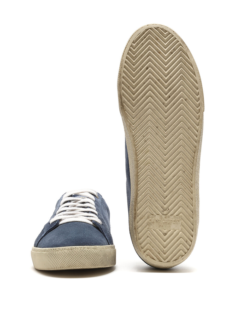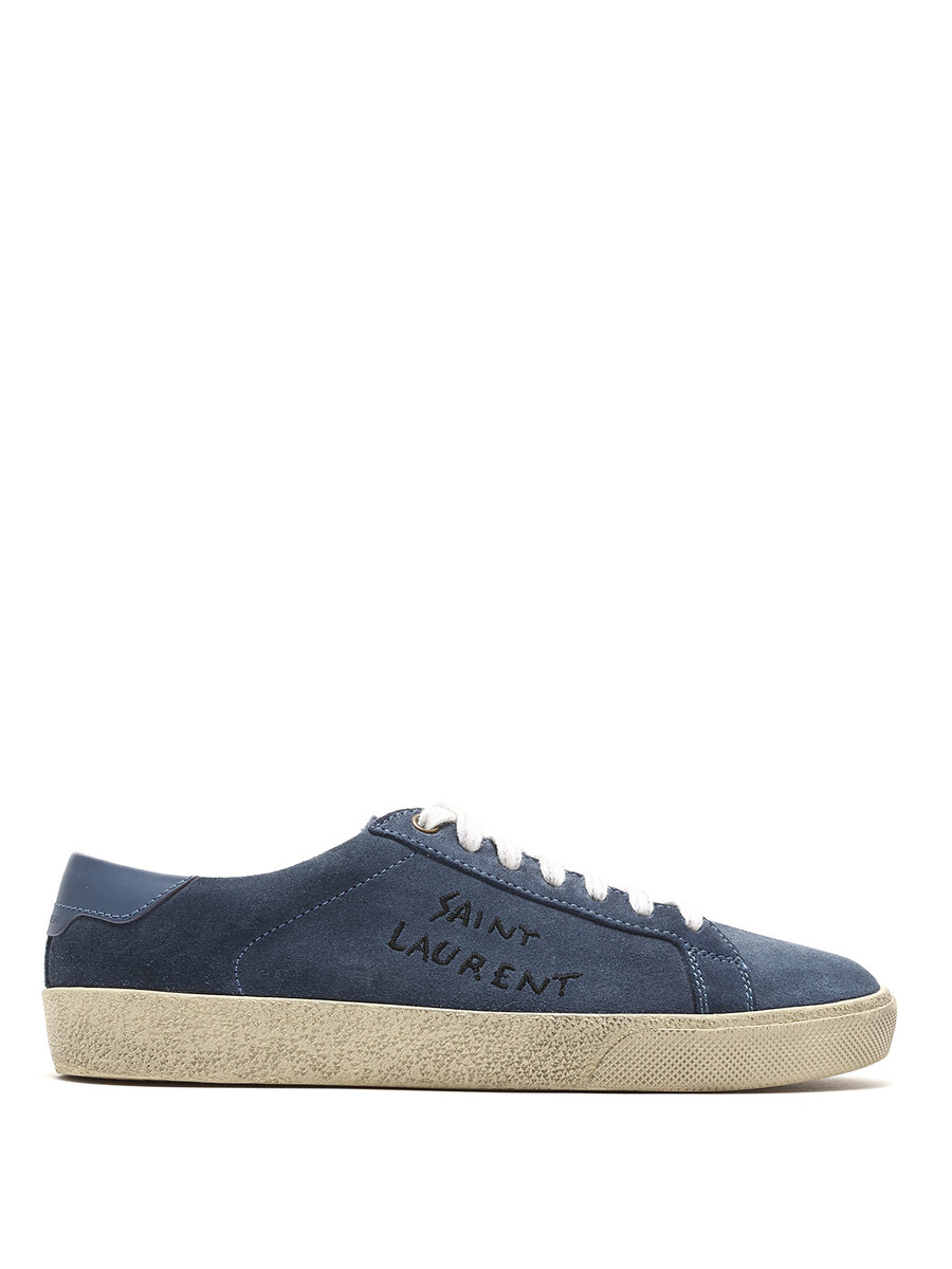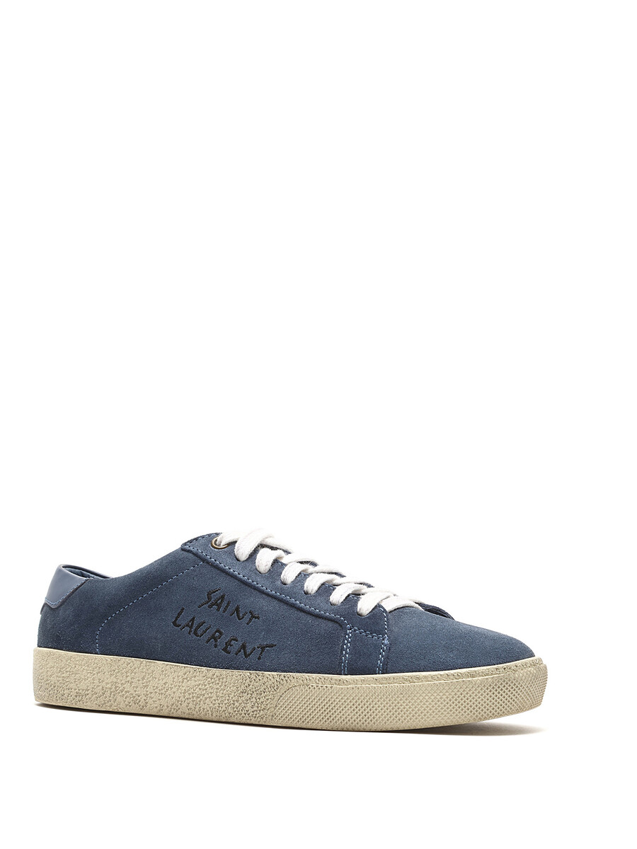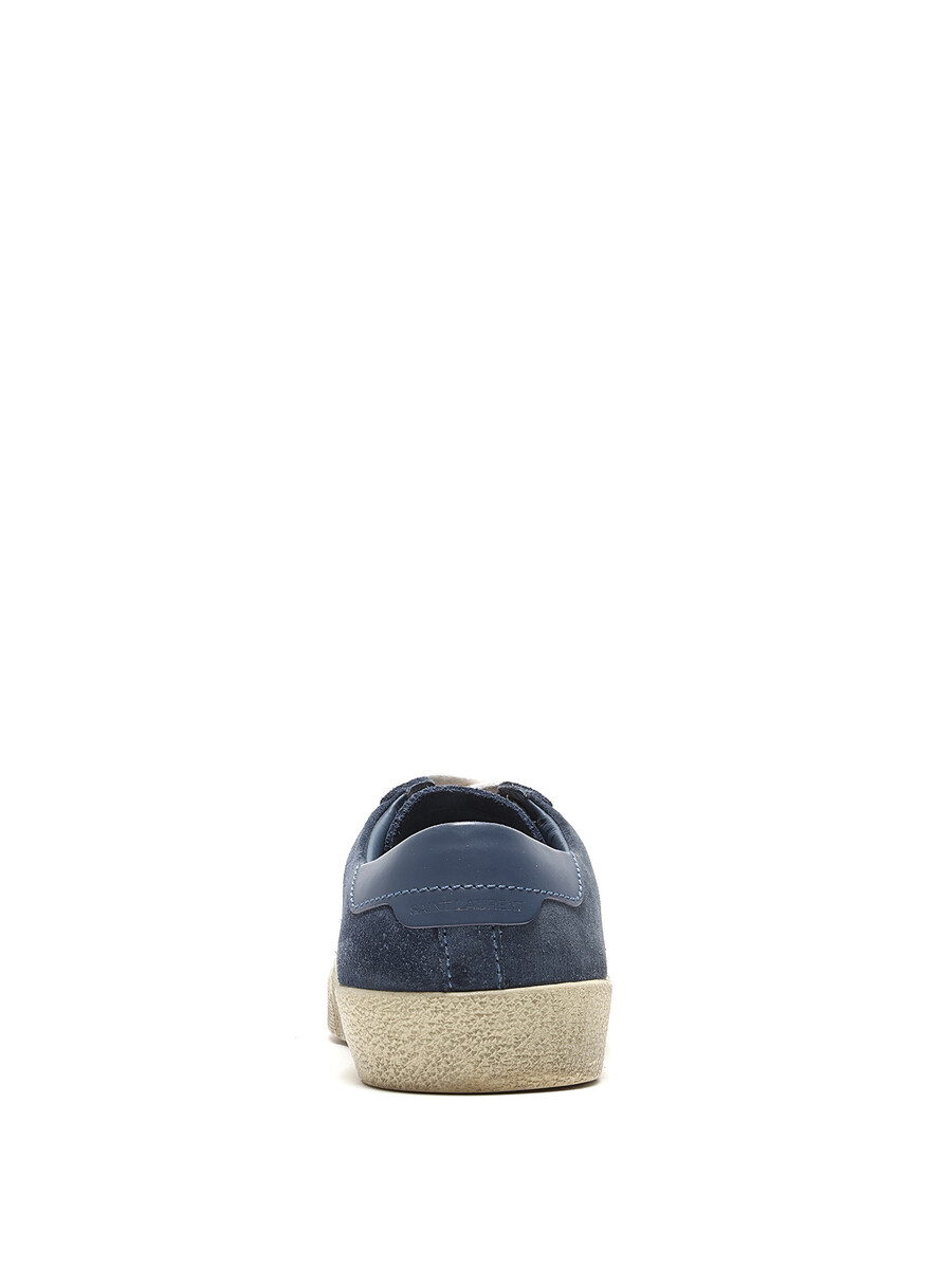Baskets basses classiques en daim bleu. Fermeture à lacets avec bout rond. Semelle en caoutchouc. Logo brodé sur le côté. Livrées avec dustbag.