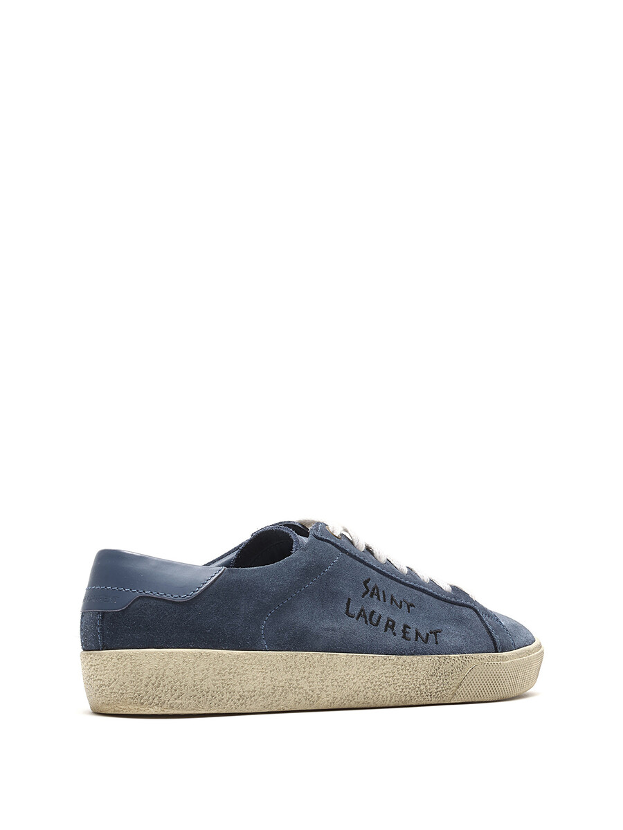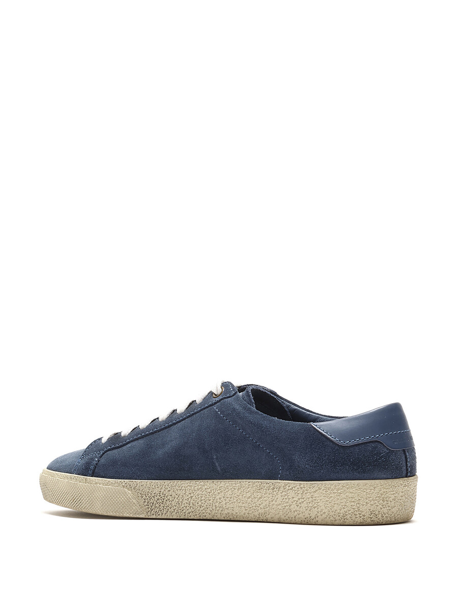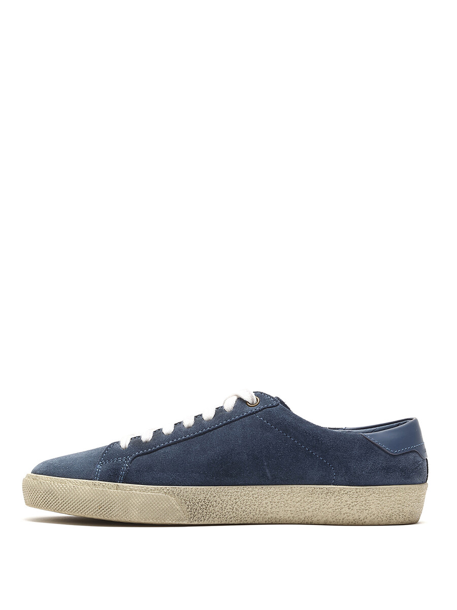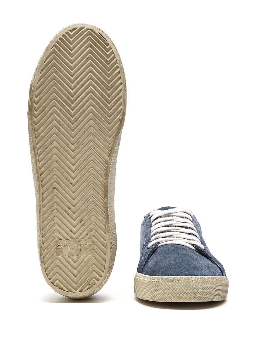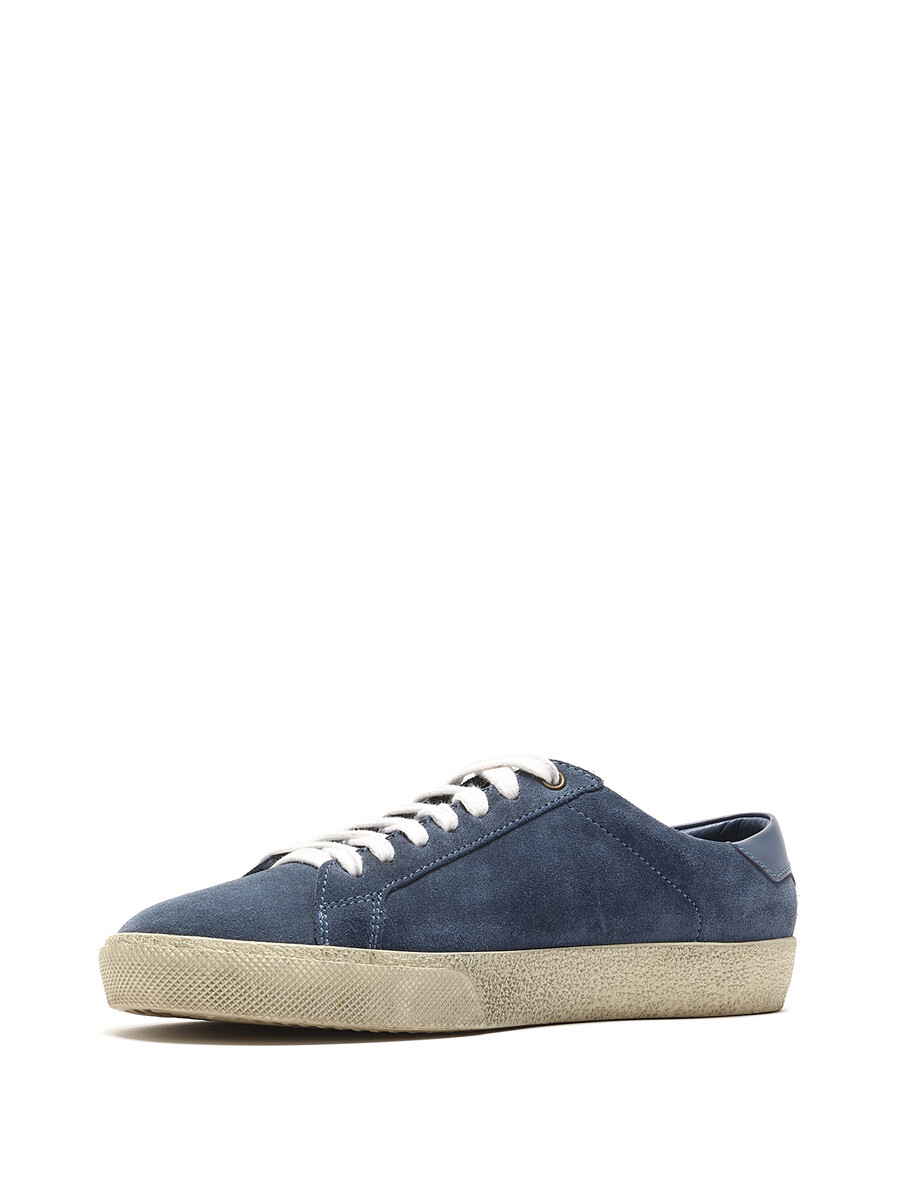 Baskets basses classiques en daim bleu. Fermeture à lacets avec bout rond. Semelle en caoutchouc. Logo brodé sur le côté. Livrées avec dustbag.