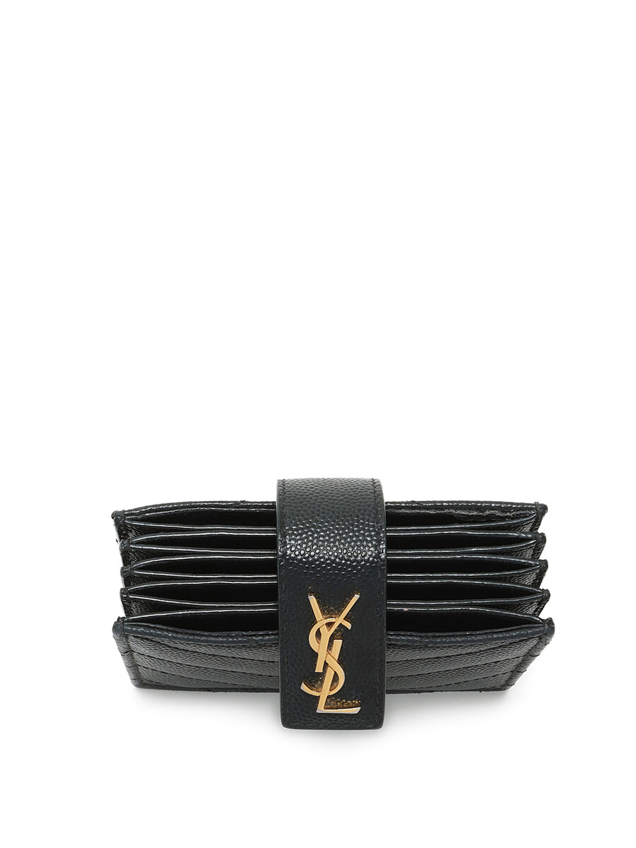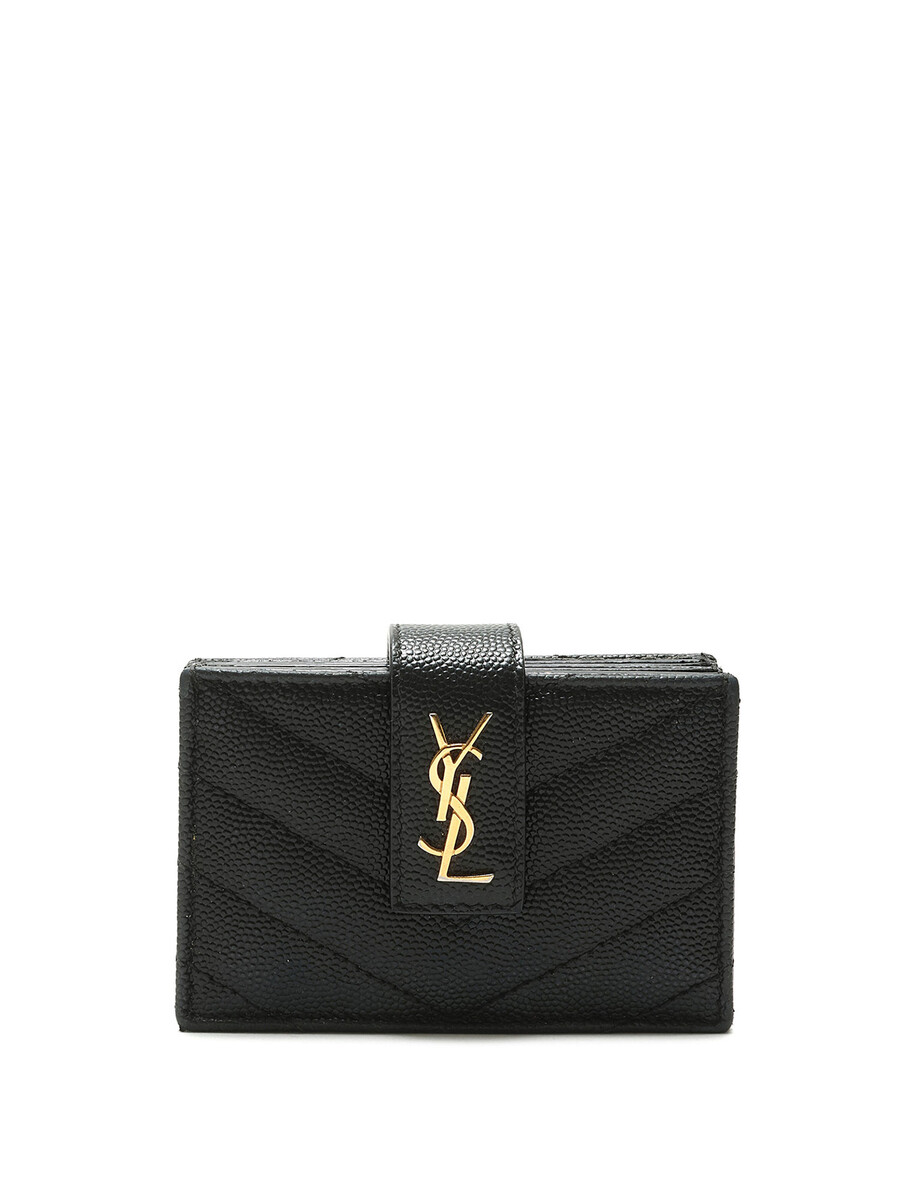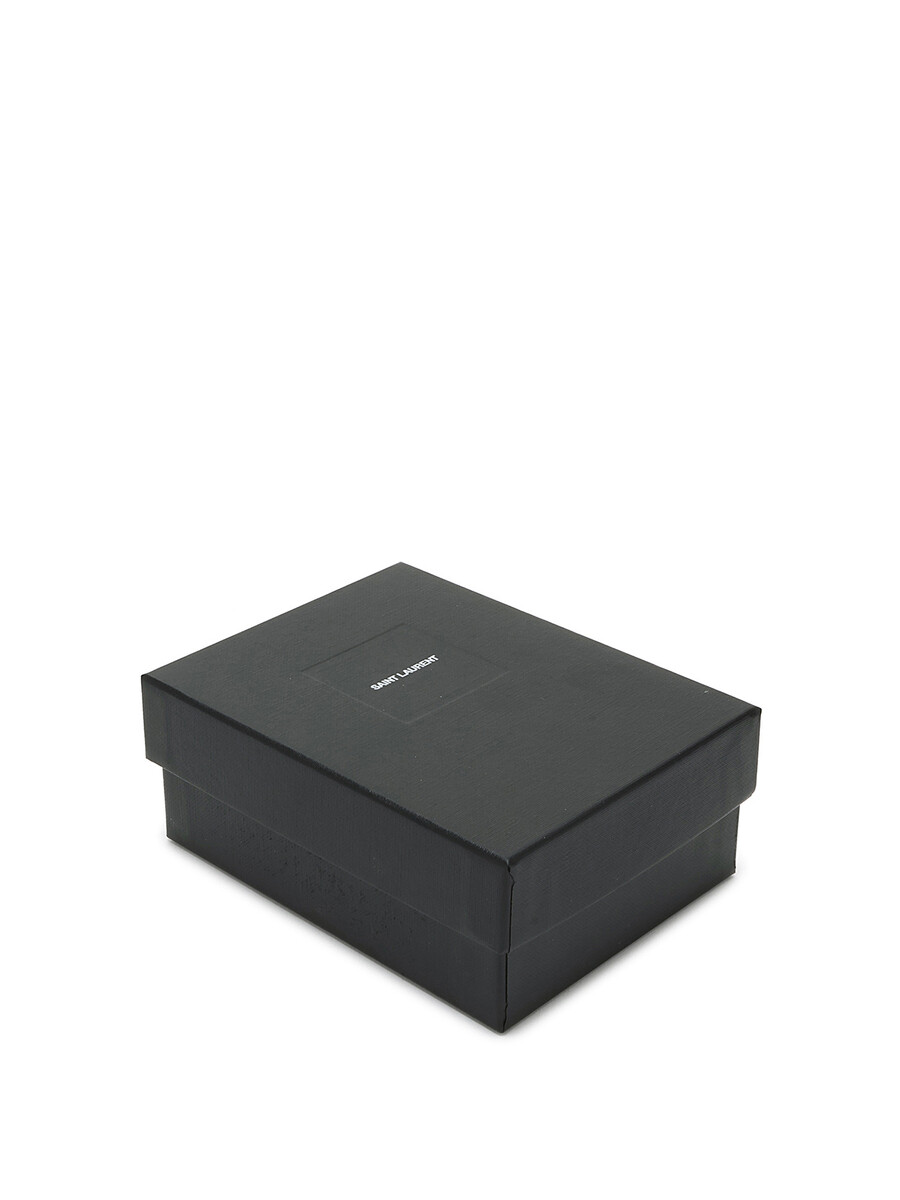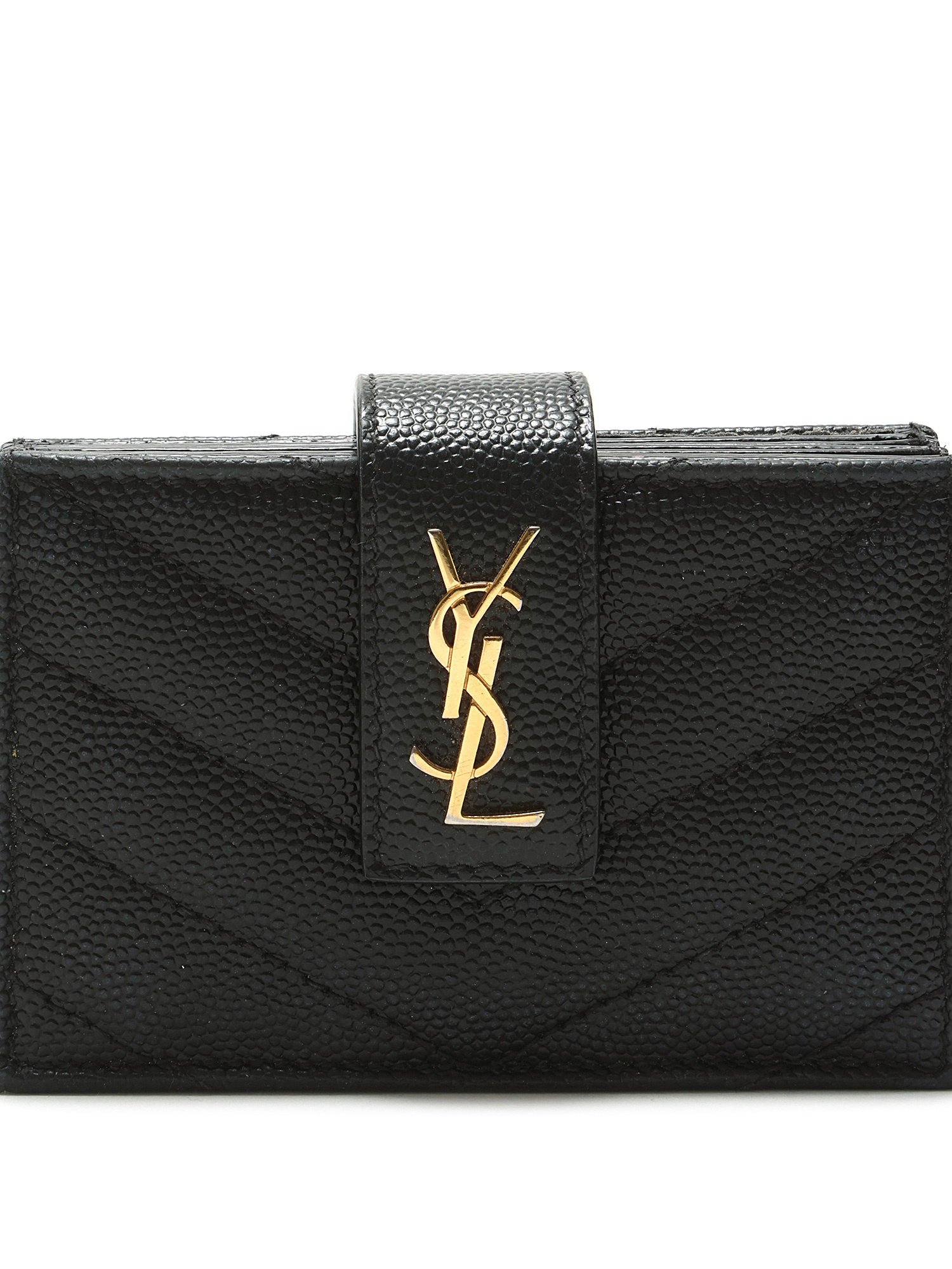 Portefeuille en cuir grainé noir avec fermeture à bouton-pression. Plaque à logo. Avec boîte.