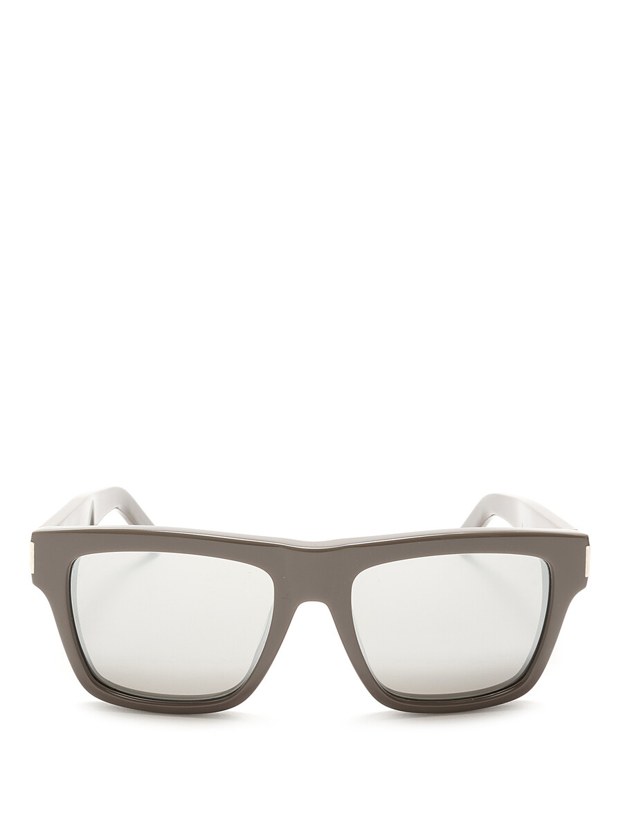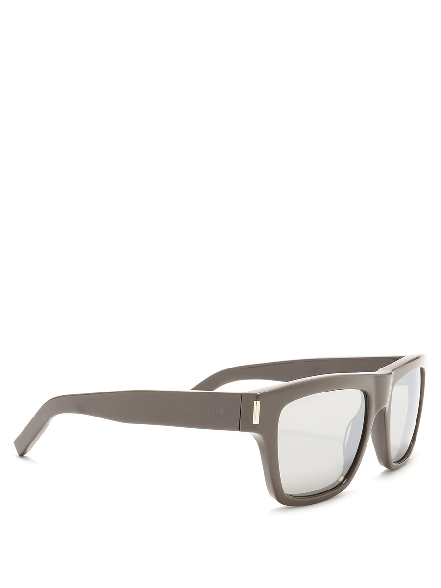 Lunettes de soleil à monture carrée en gris. Verres noirs. Avec étui.
