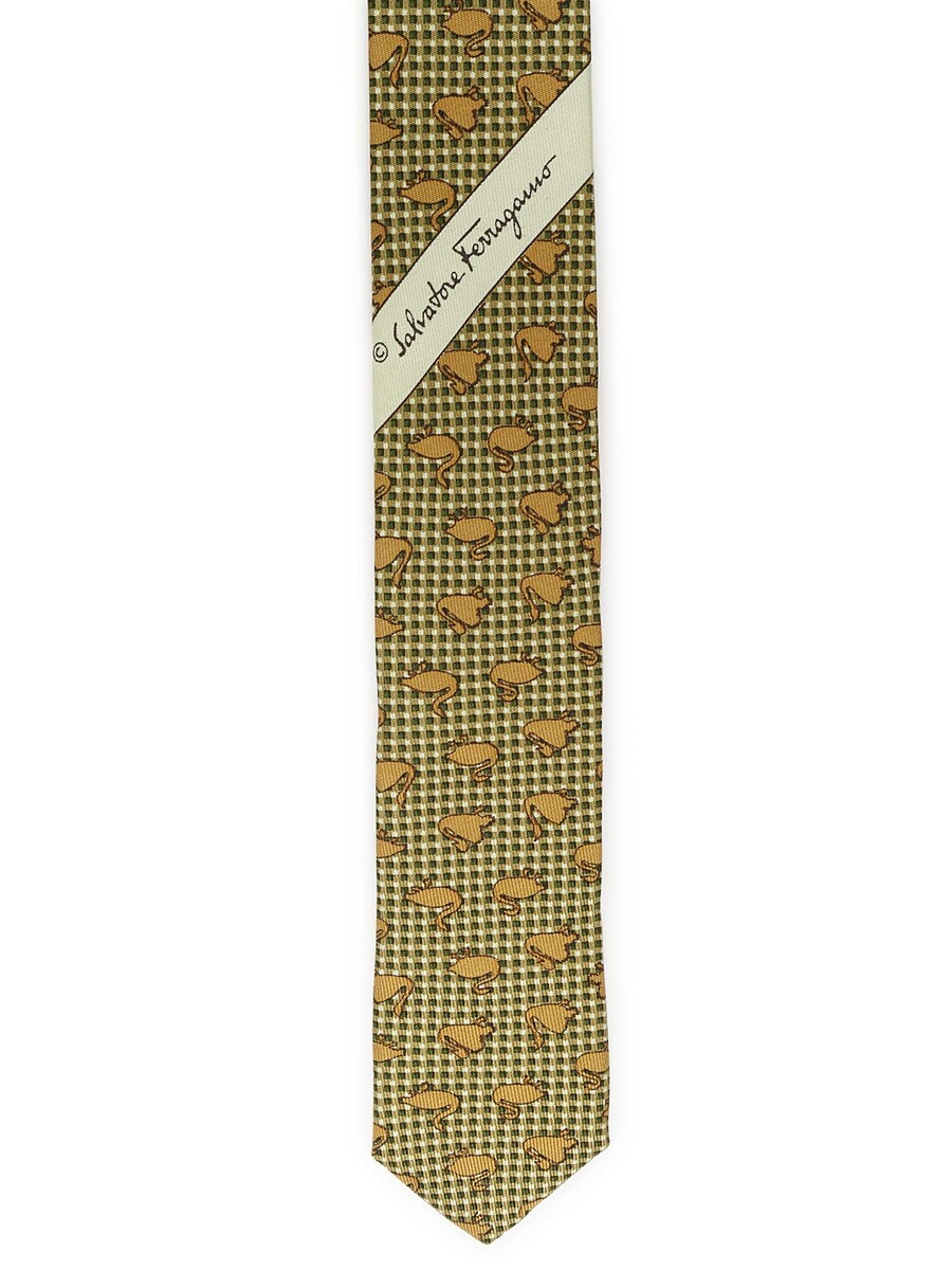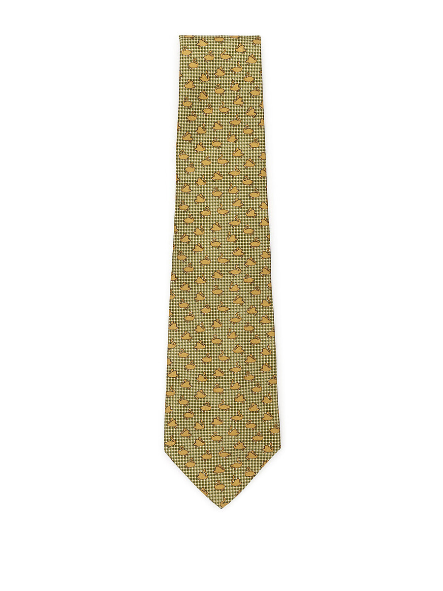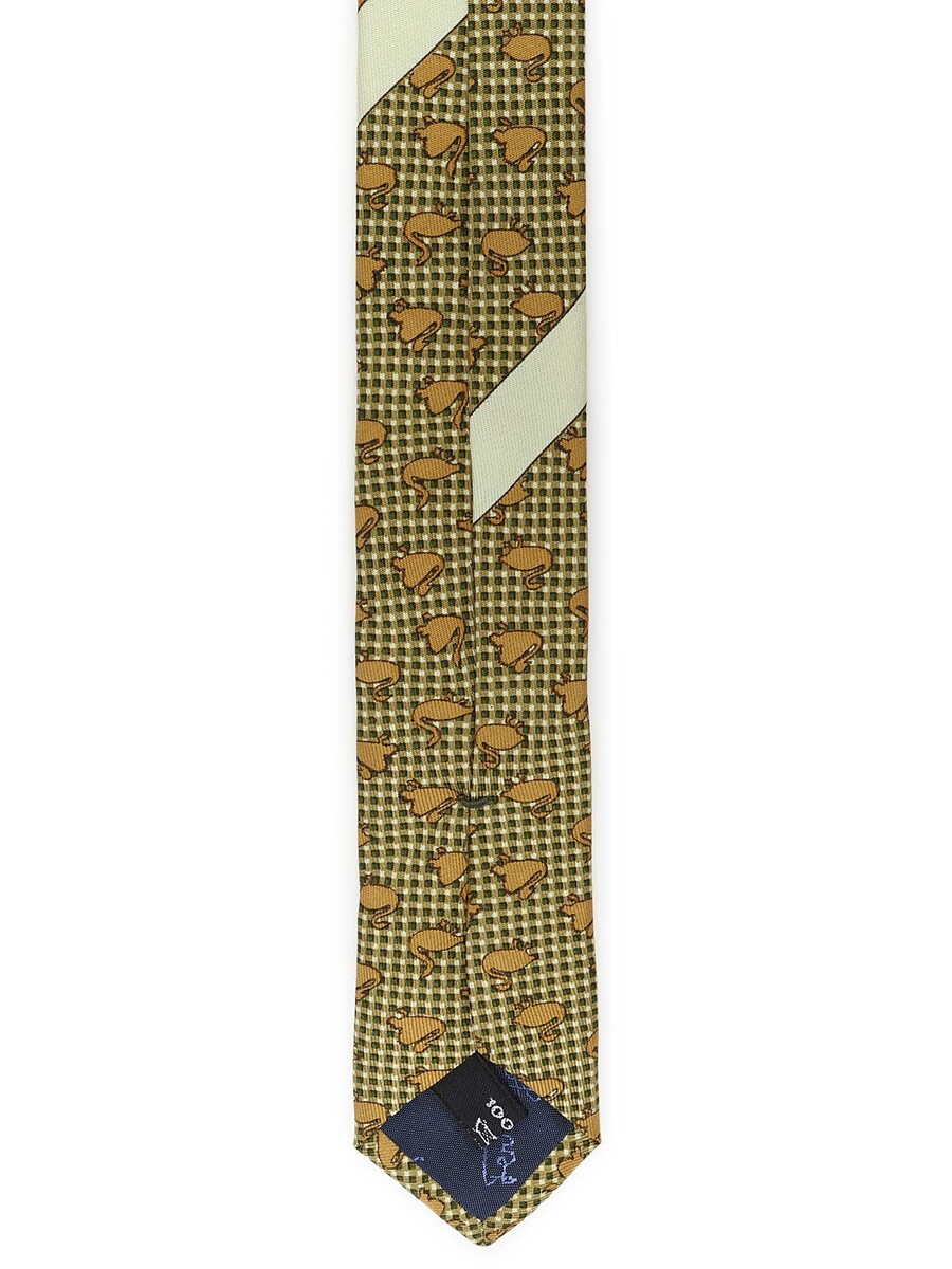 Cravate en soie à carreaux verts et jaunes vibrants avec imprimé oiseau.