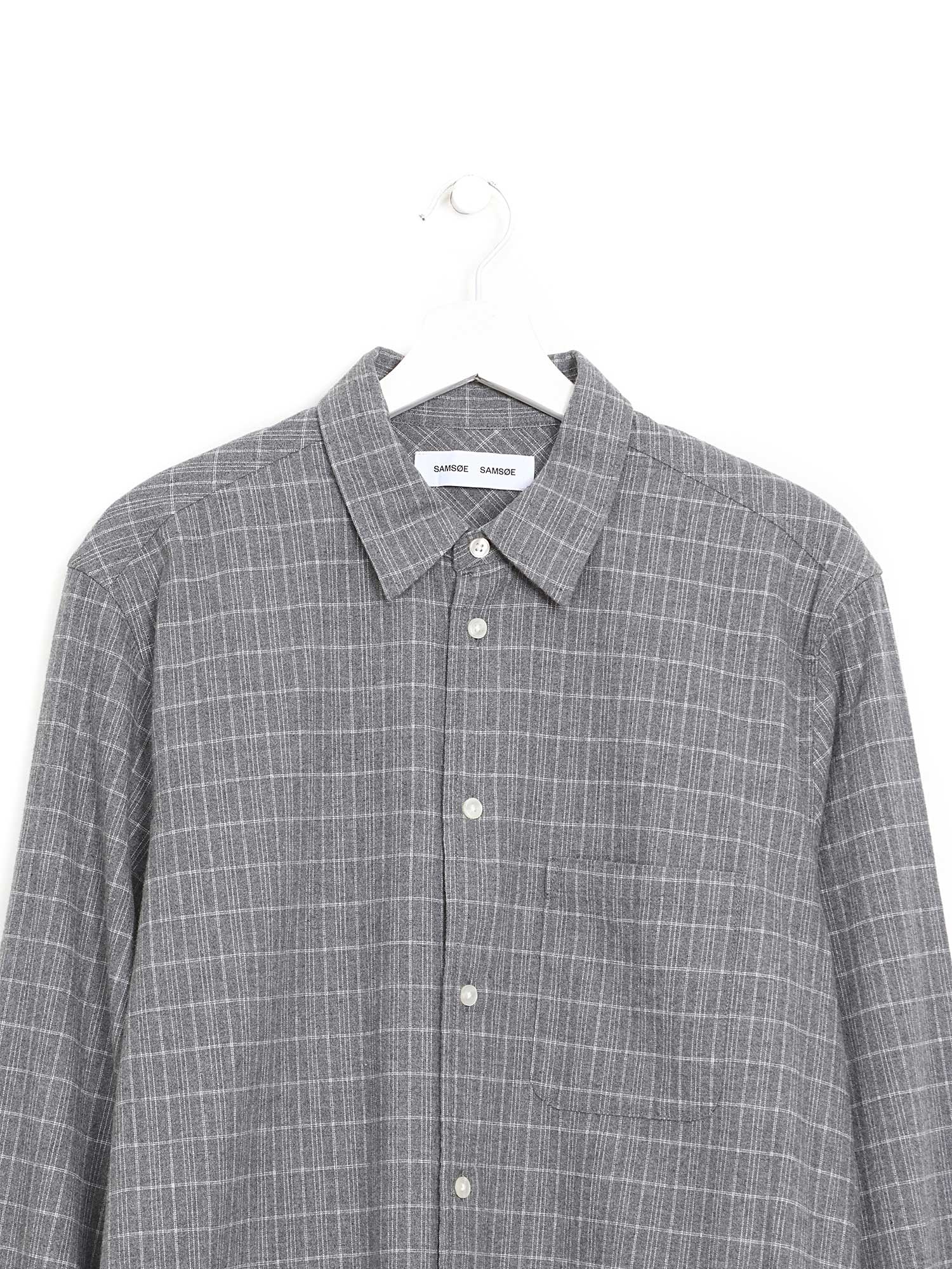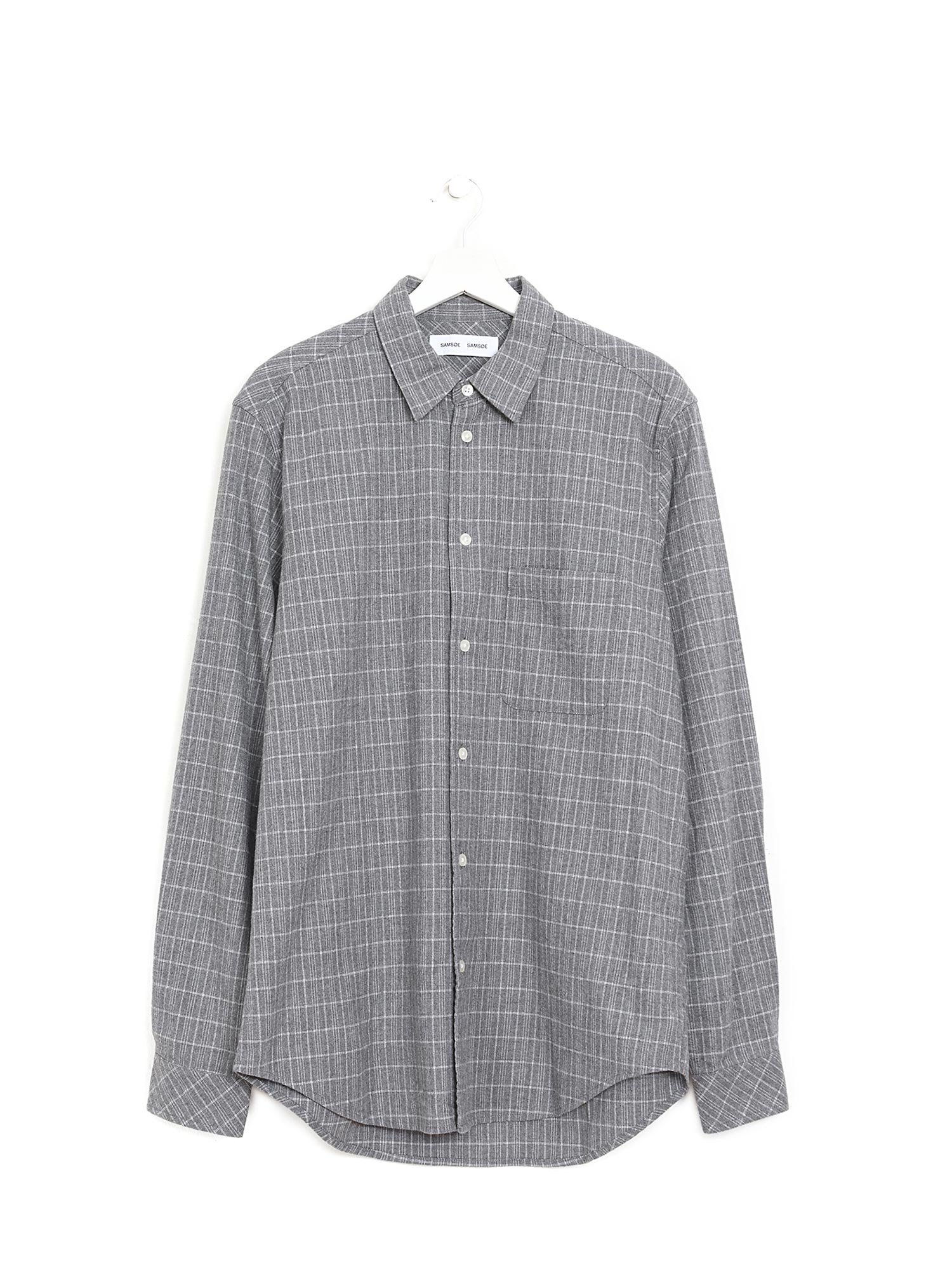 Chemise à manches longues en flanelle grise. Design classique à boutonnière. Poche plaquée sur la poitrine.