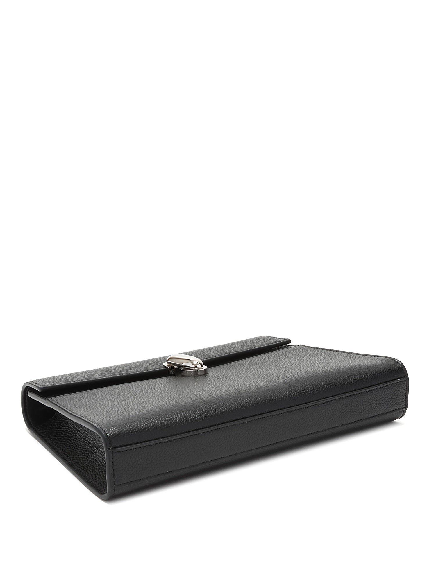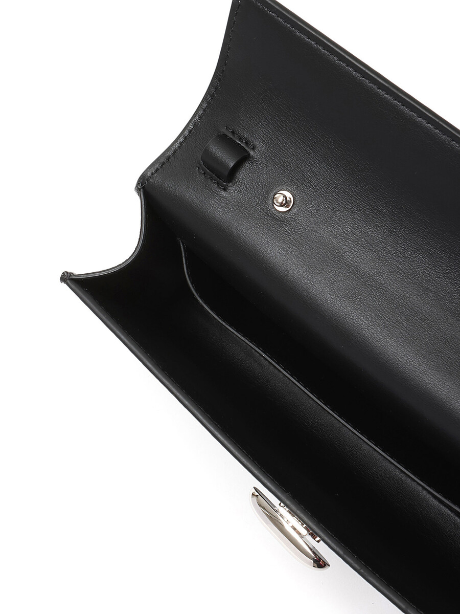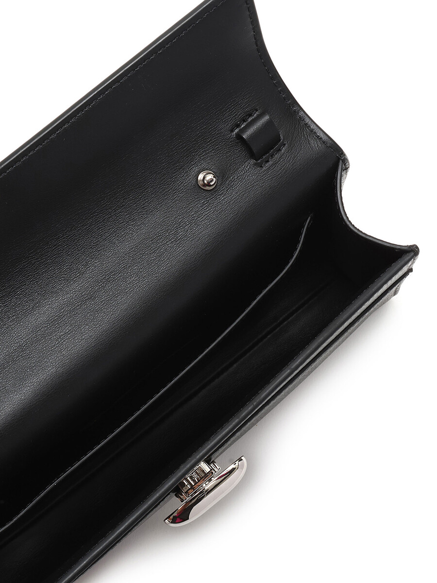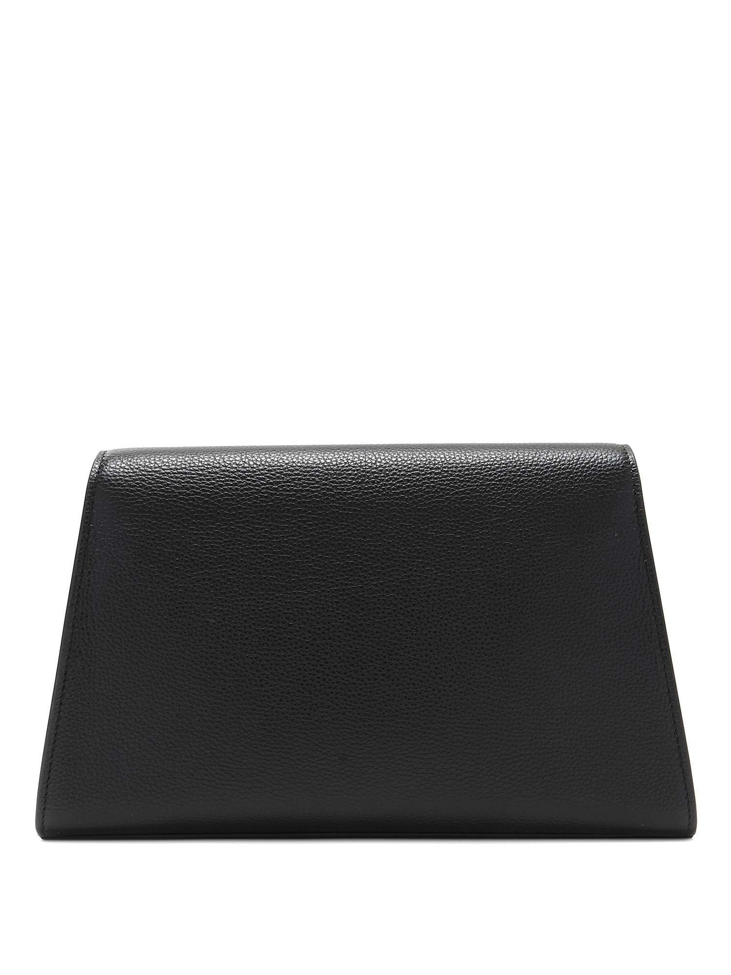Pochette en cuir noire avec surpiqûres ton sur ton. Fermoir à loquet avec ferrures argentées. Livrée avec dust bag.