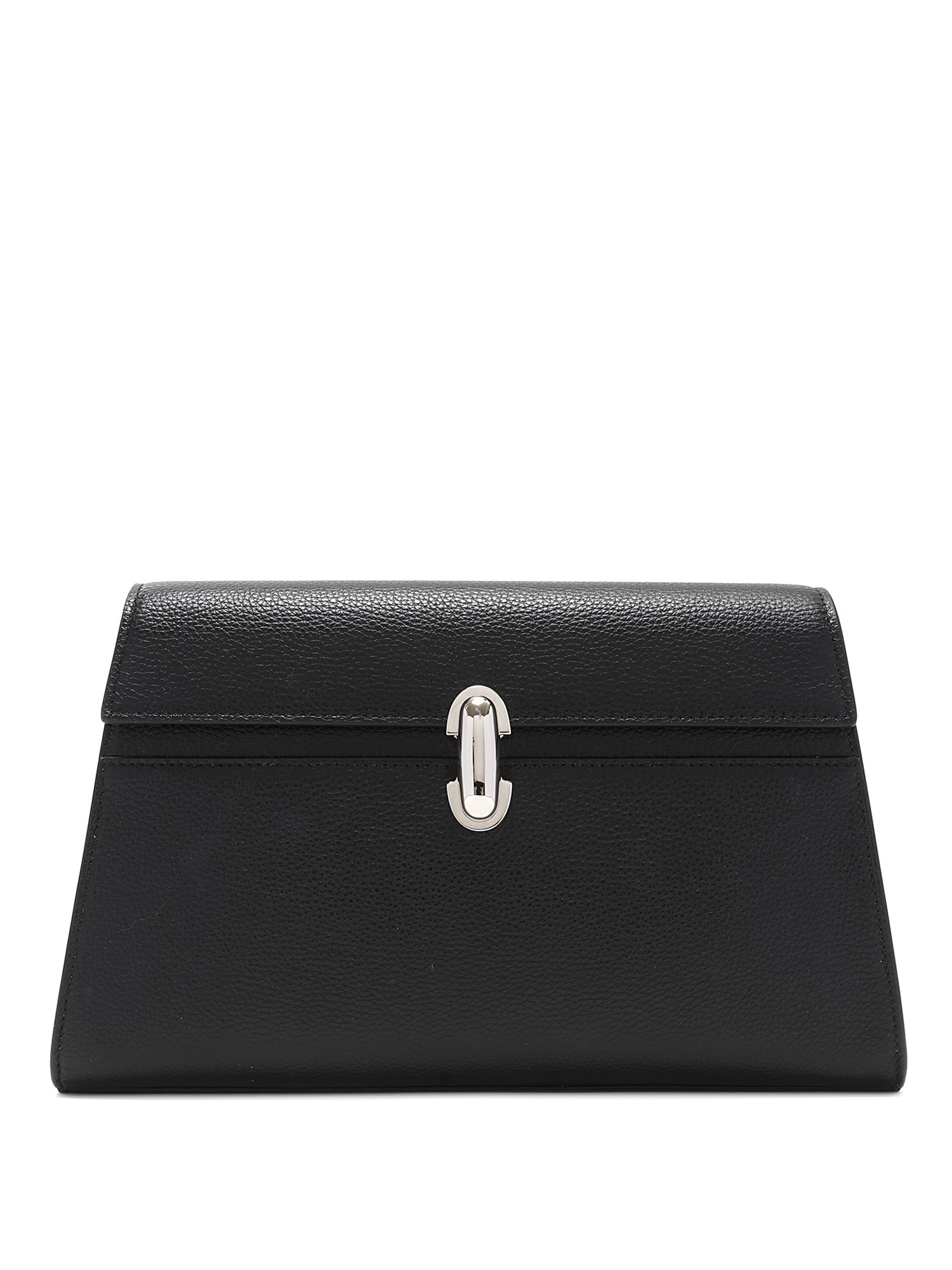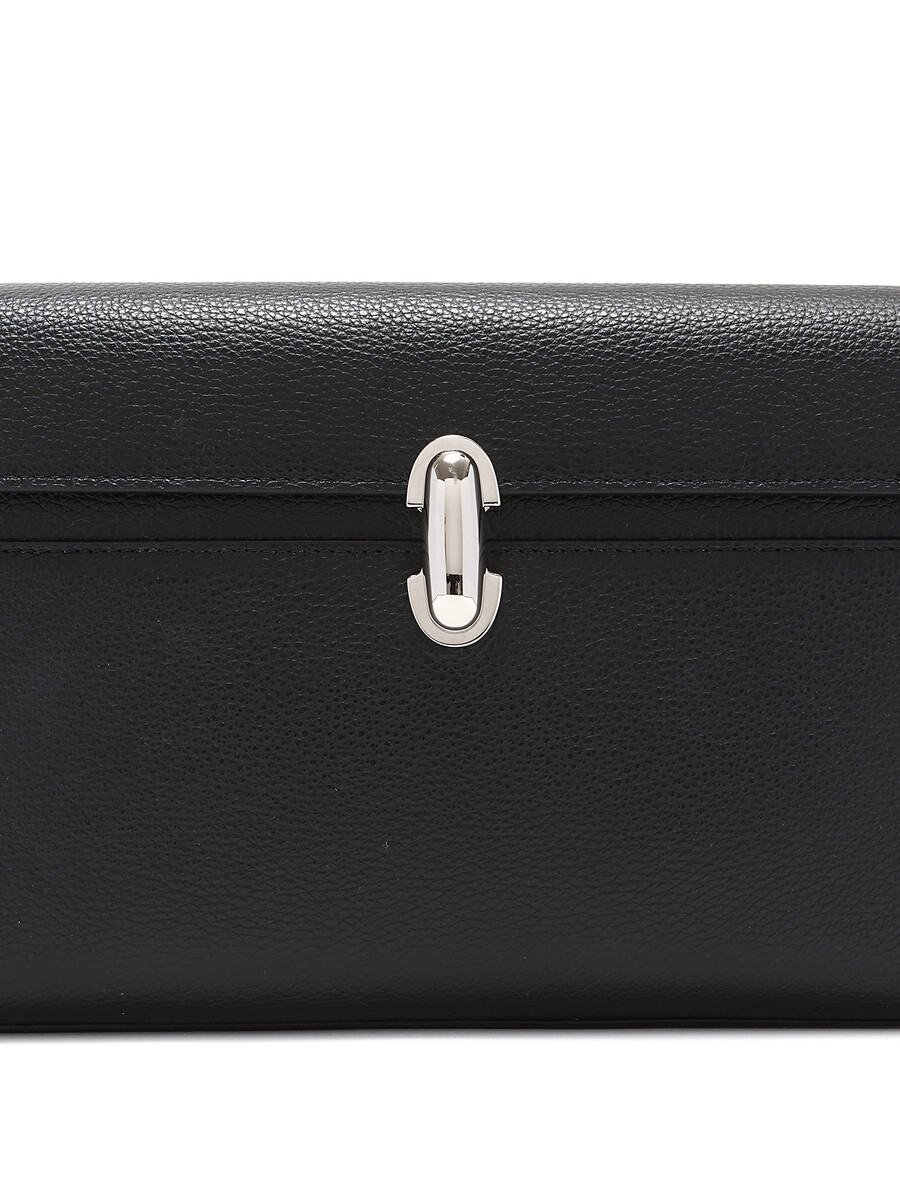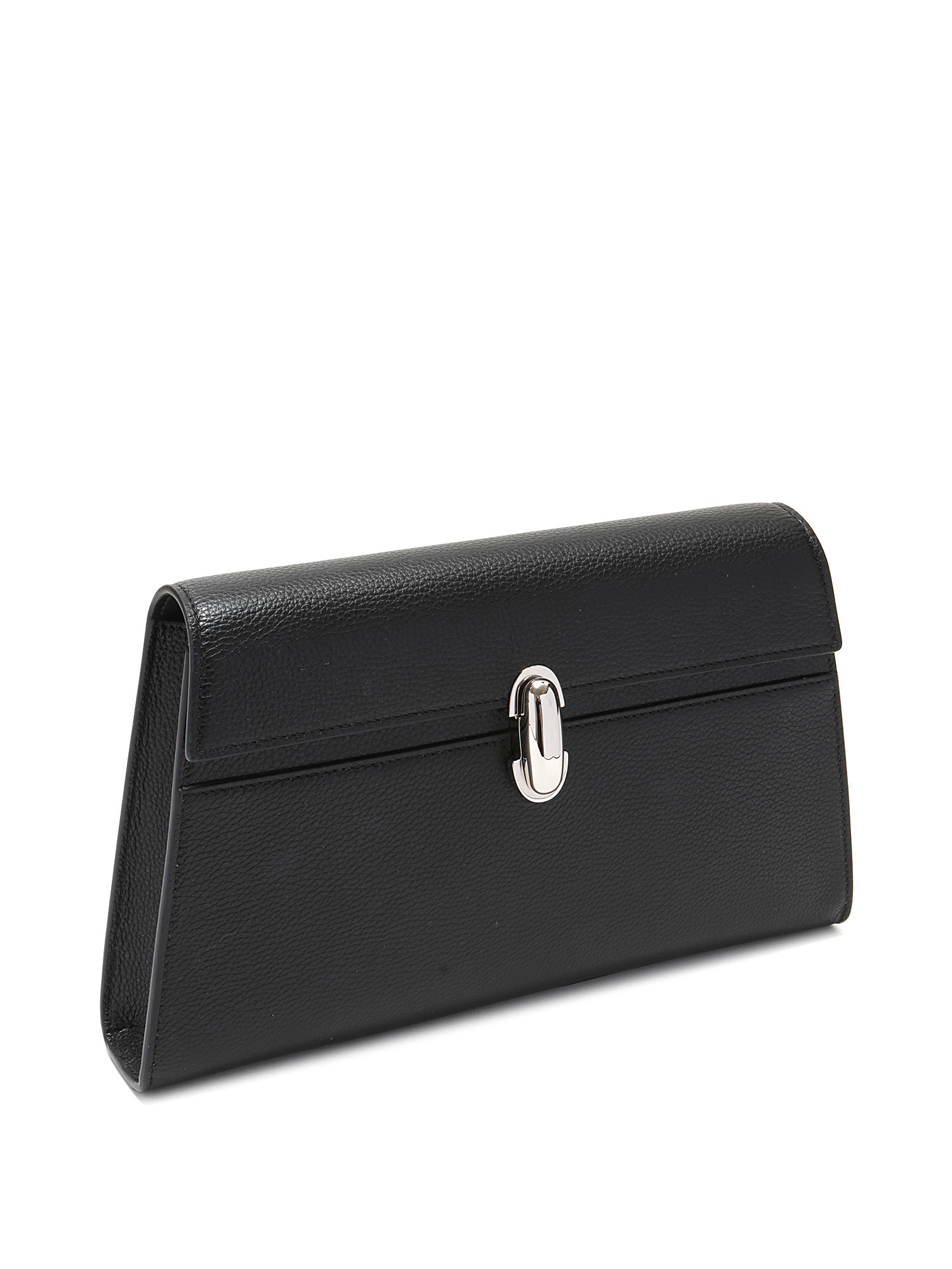 Pochette en cuir noire avec surpiqûres ton sur ton. Fermoir à loquet avec ferrures argentées. Livrée avec dust bag.