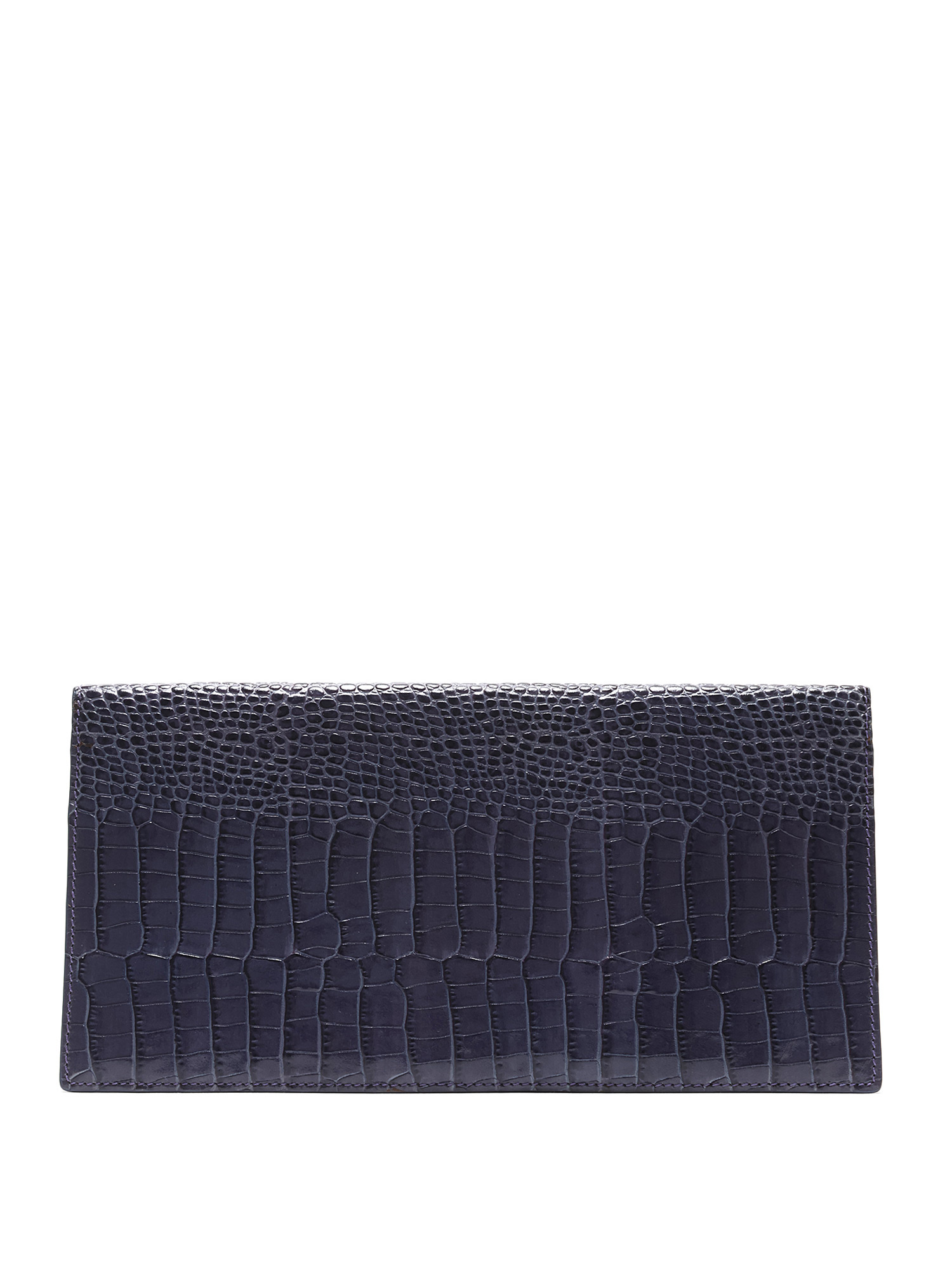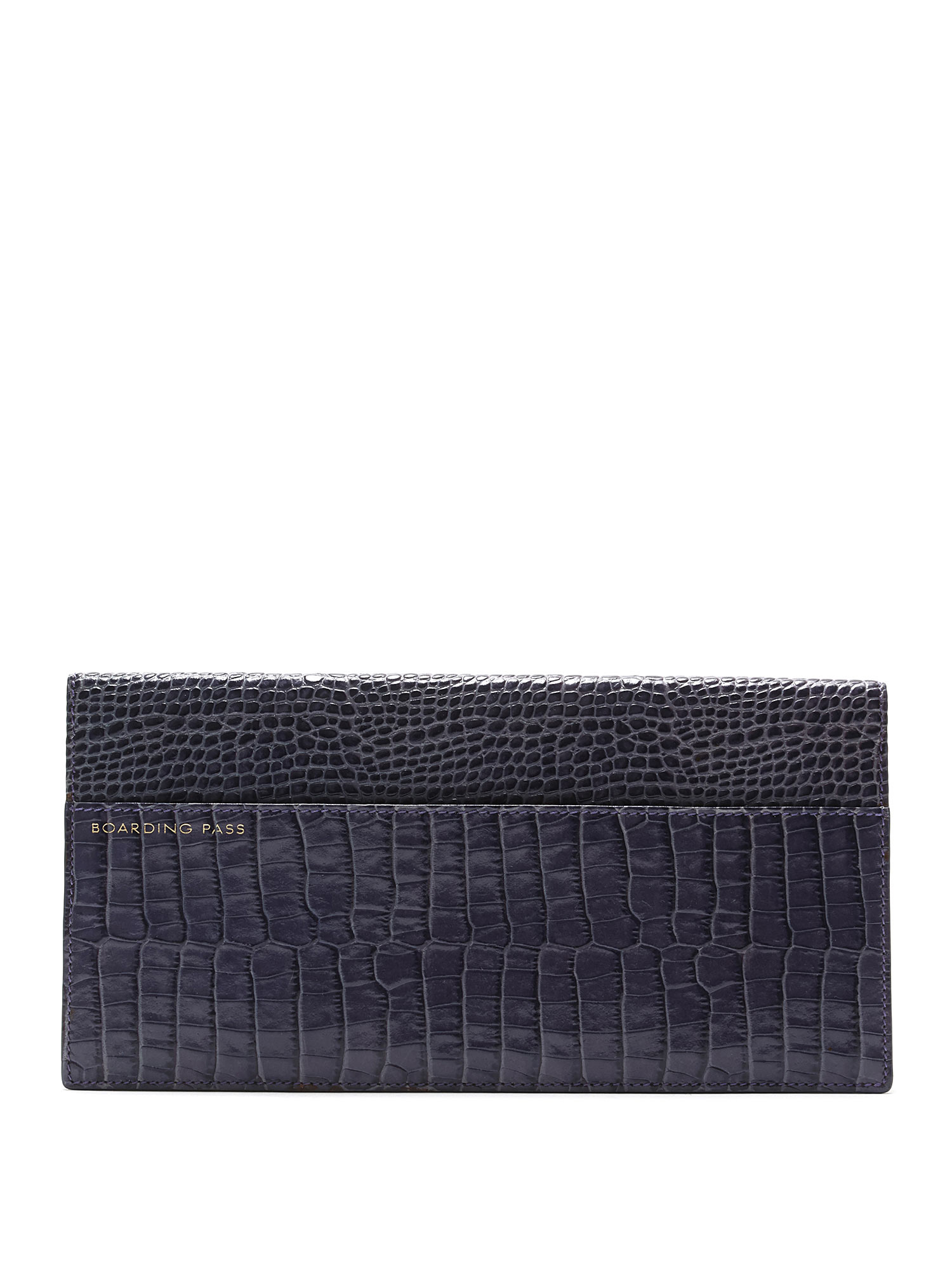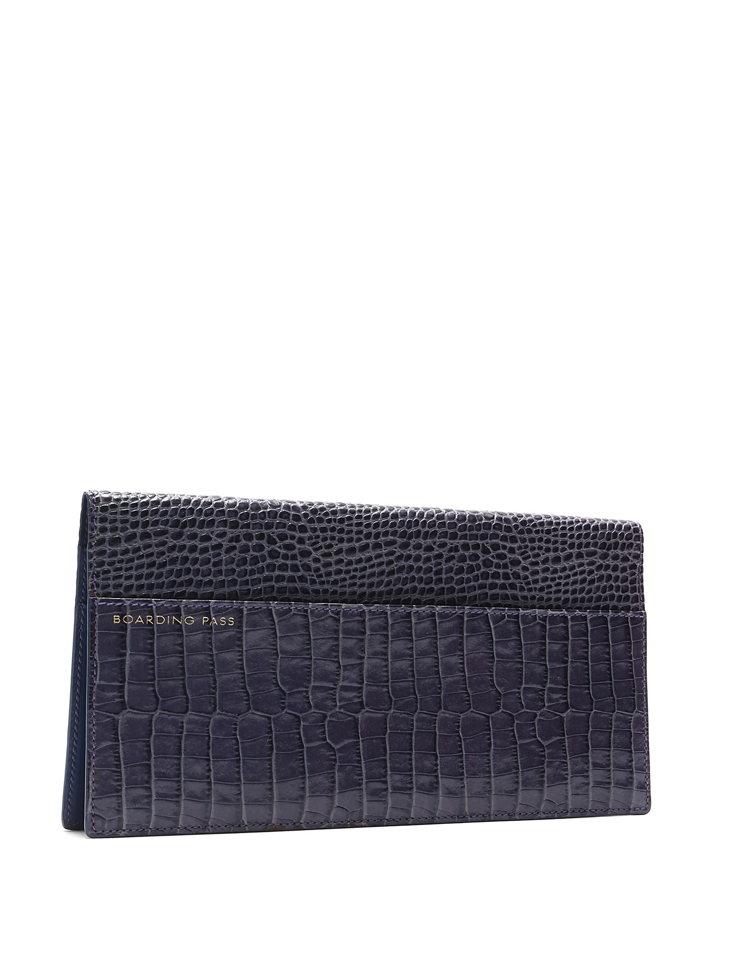 Pochette de voyage en bleu marine avec motif gaufrage crocodile. Compartiments multiples. Avec dust bag.
