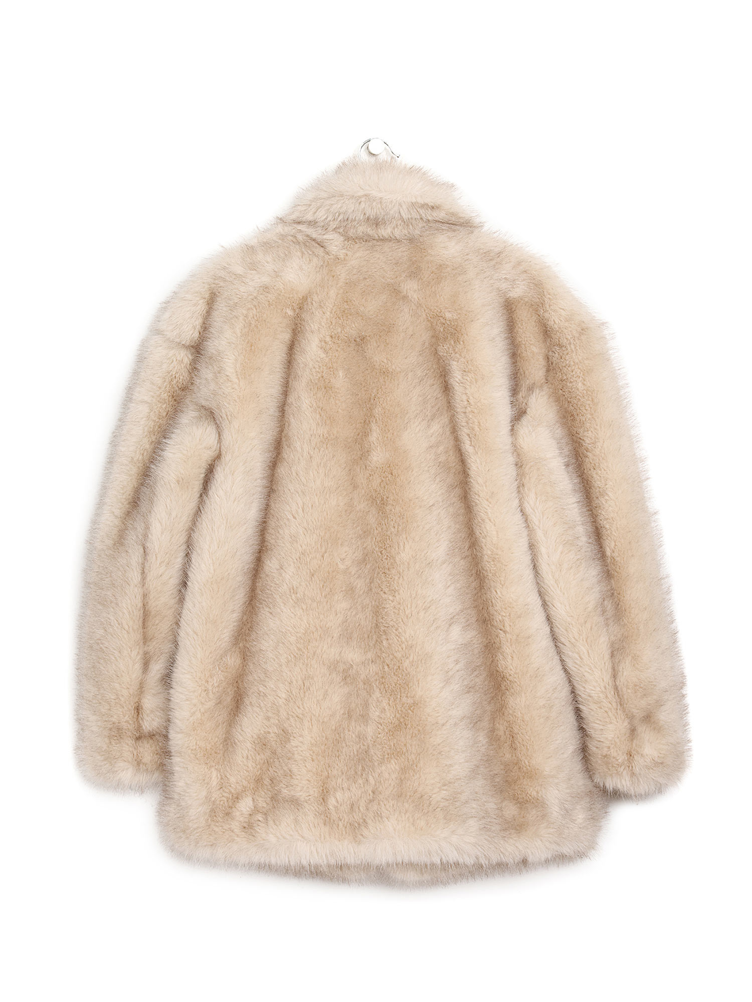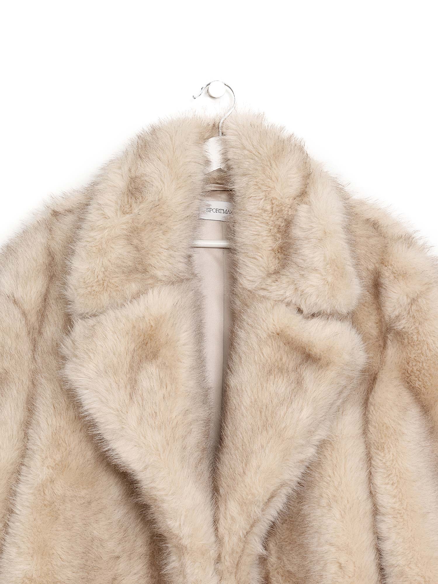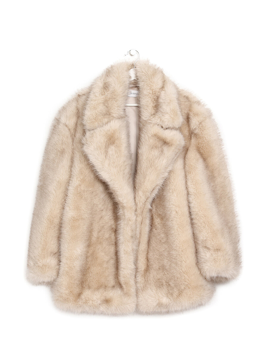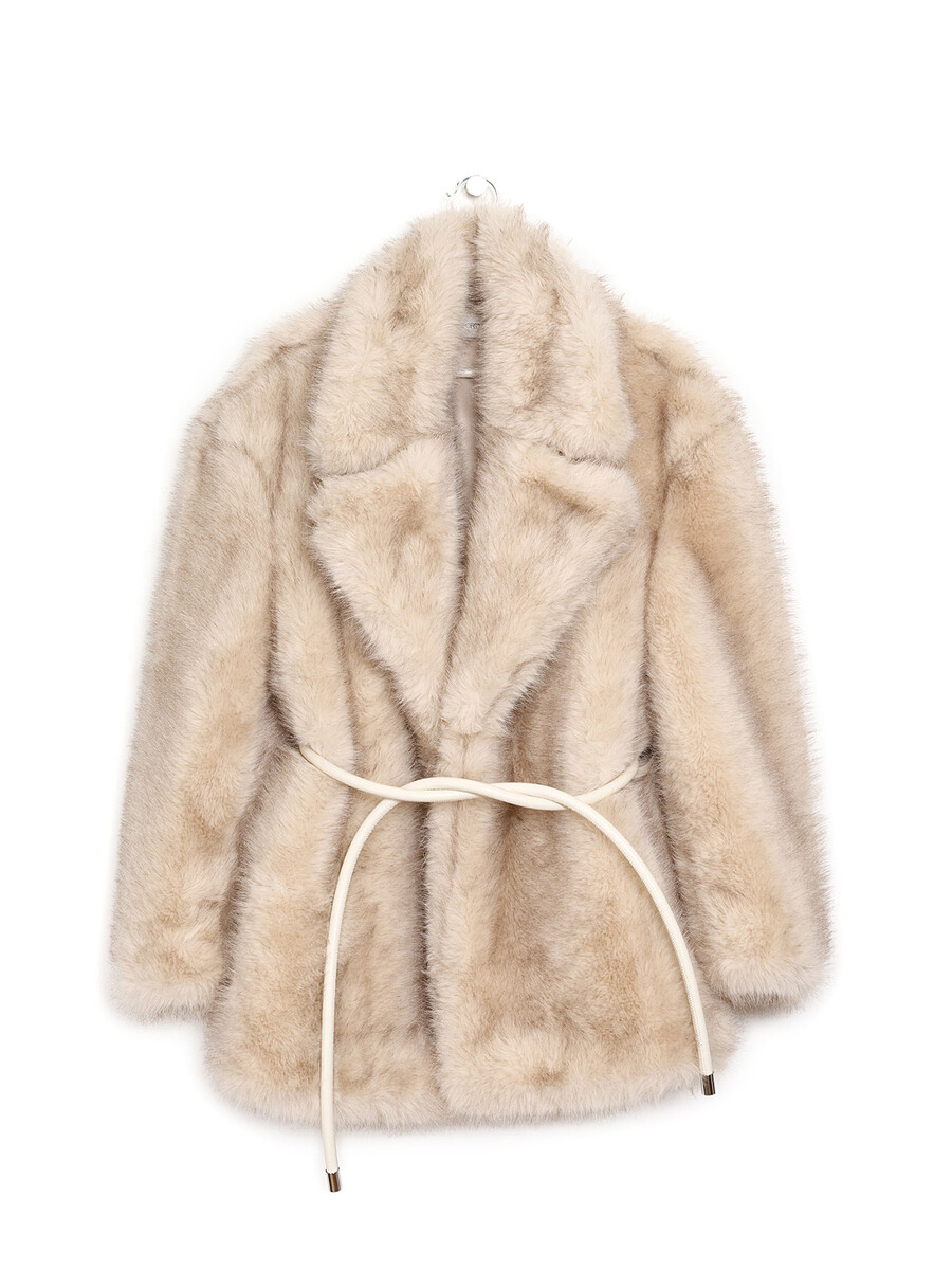Manteau en fausse fourrure avec un col surdimensionné et une ceinture à nouer à la taille. Fermeture à crochet. Offre un toucher luxueux et douillet.