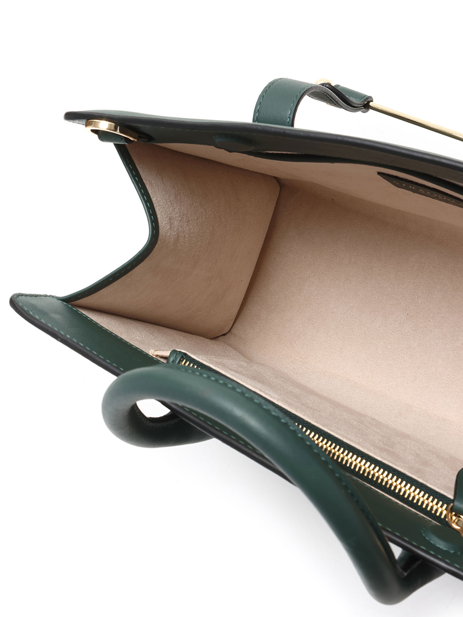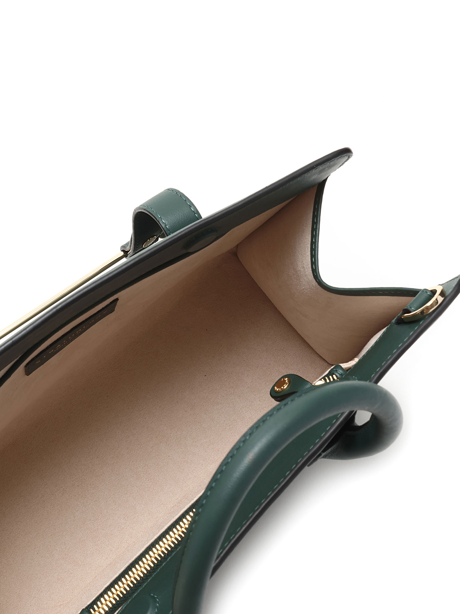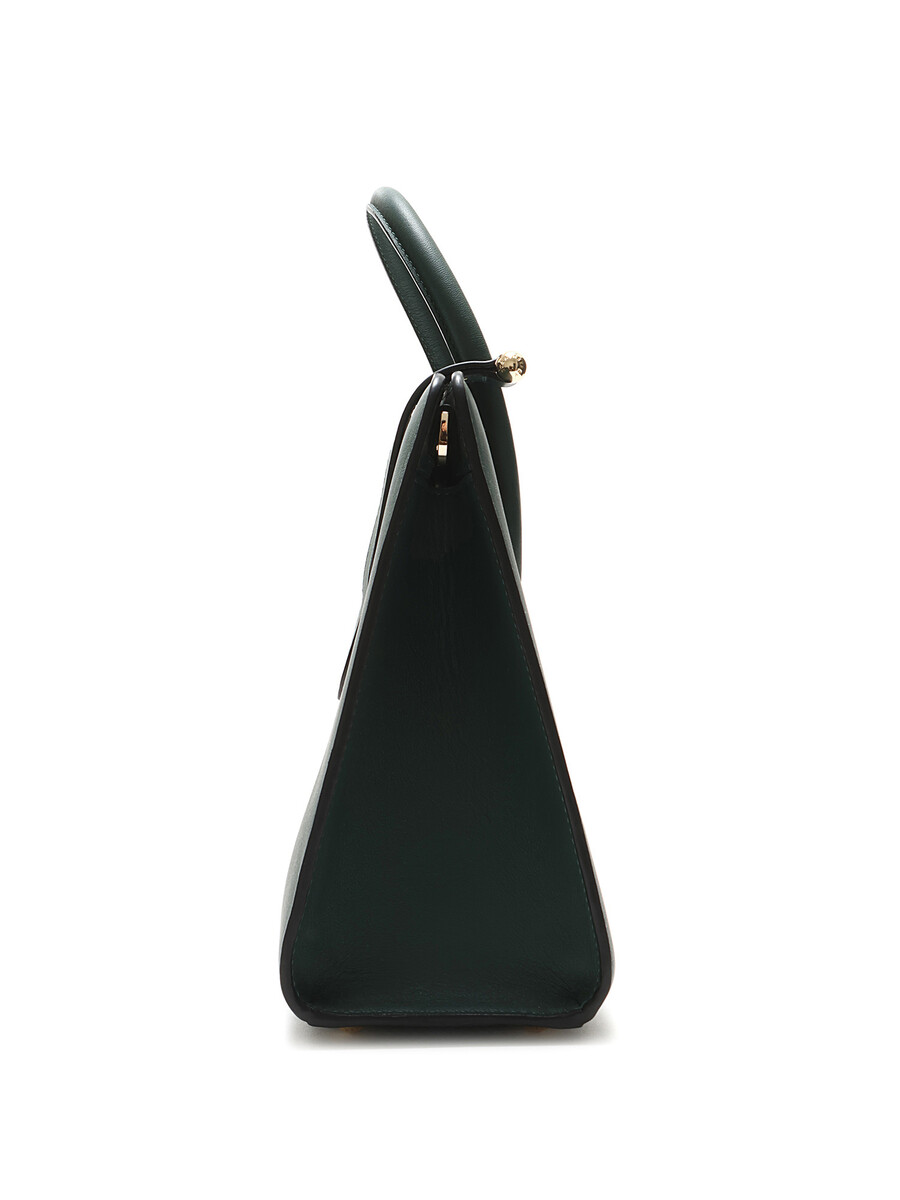 Cabas en cuir bleu sarcelle avec fermeture à barre signature. Anses supérieures en cuir. Ferrures dorées.
