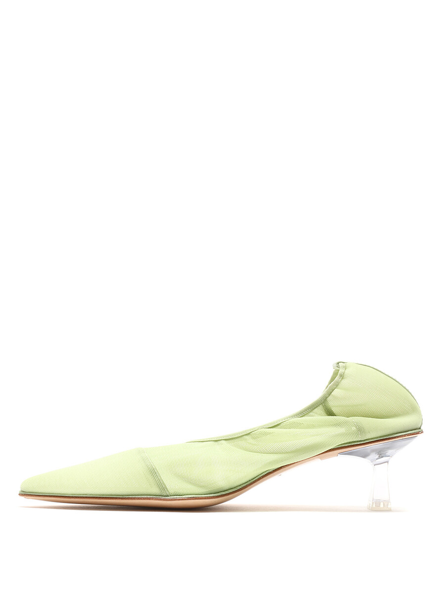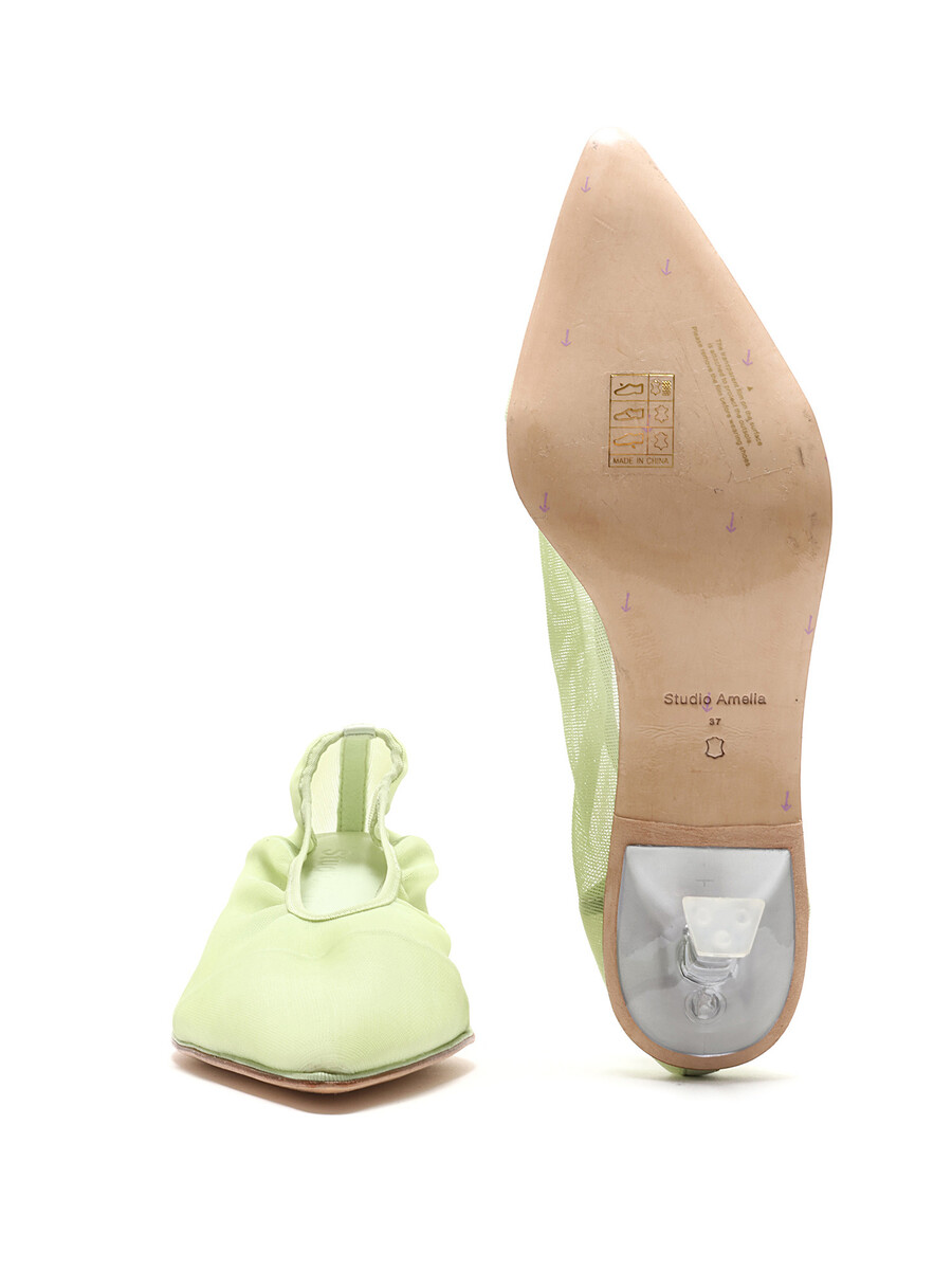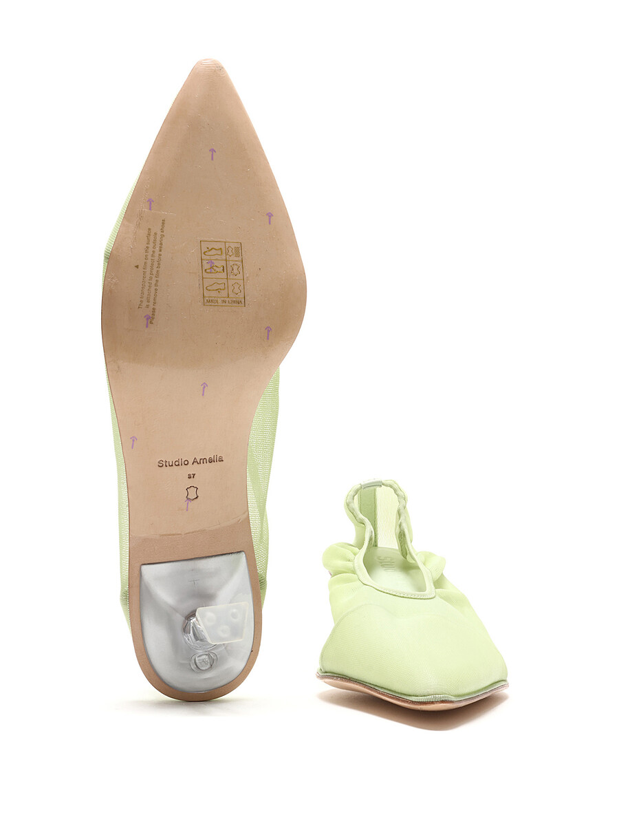 Ballerines plates en mesh vert lime avec un design en maille transparente et un bout pointu.