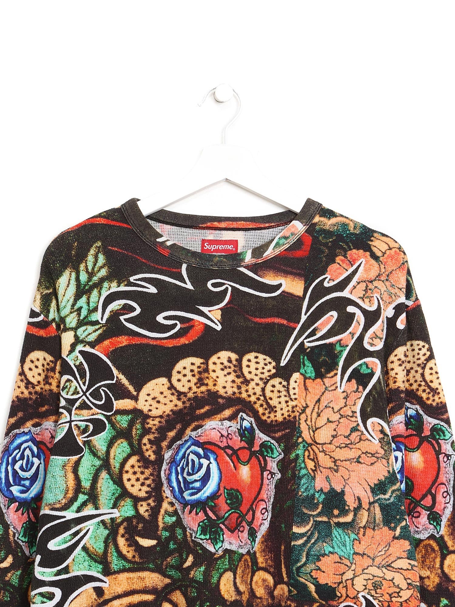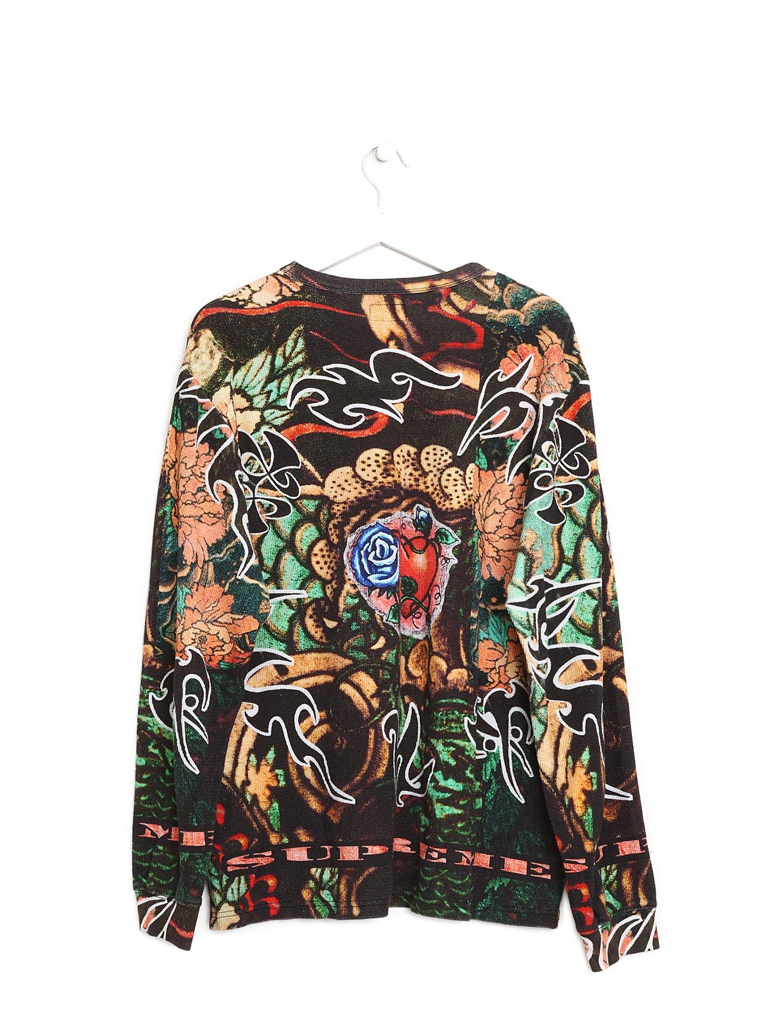 T-shirt graphique à manches longues en tricot gaufré. Design à col rond classique.
