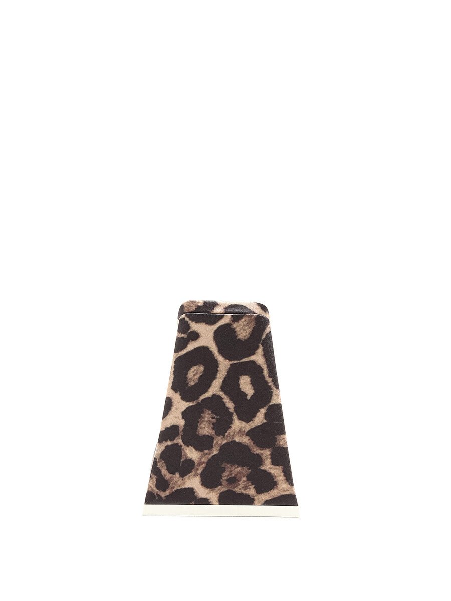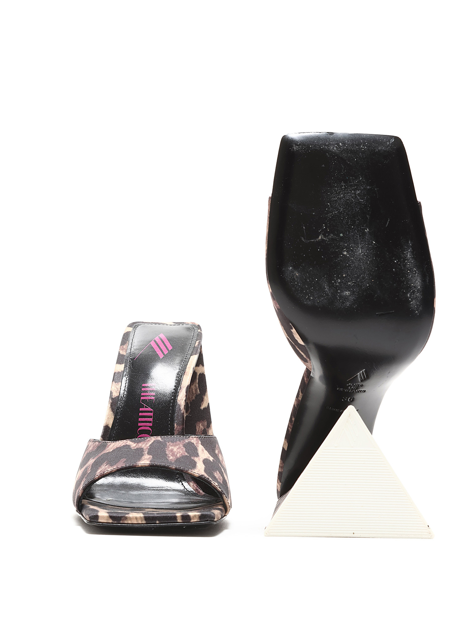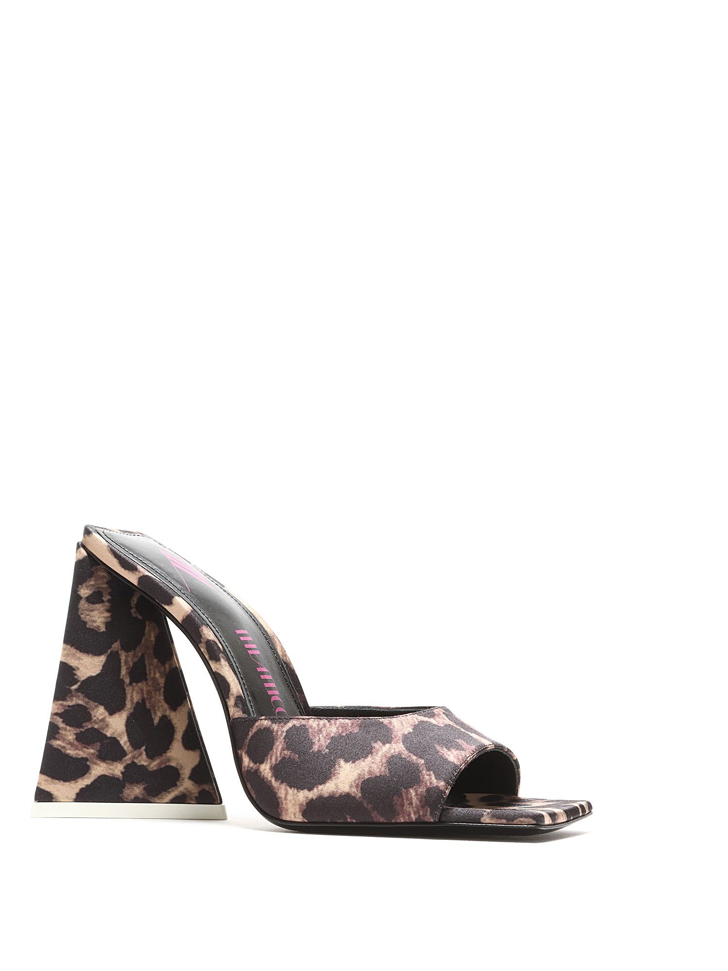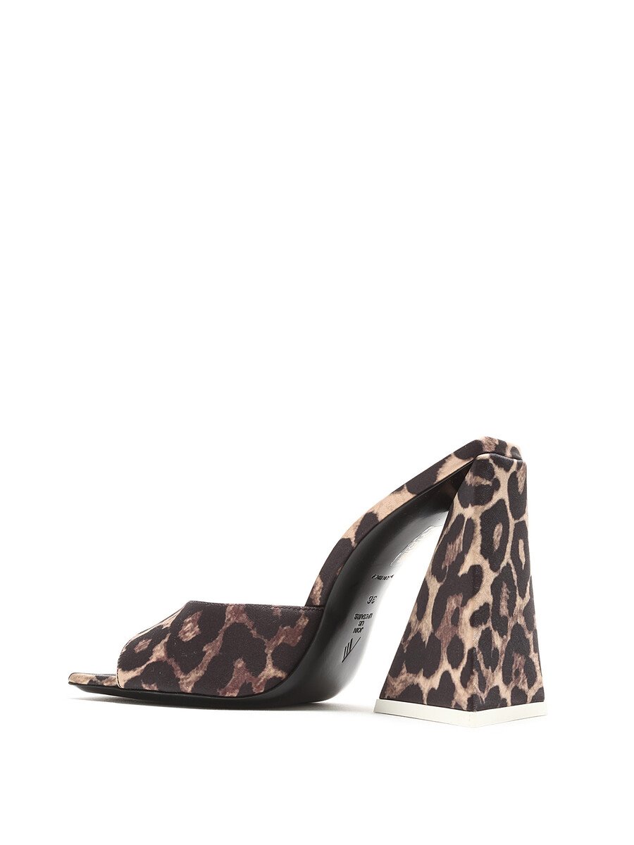 Mules à motif léopard en brun et noir. Bout carré. Semelle en cuir.