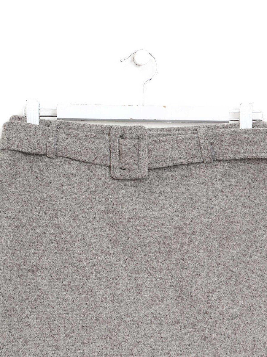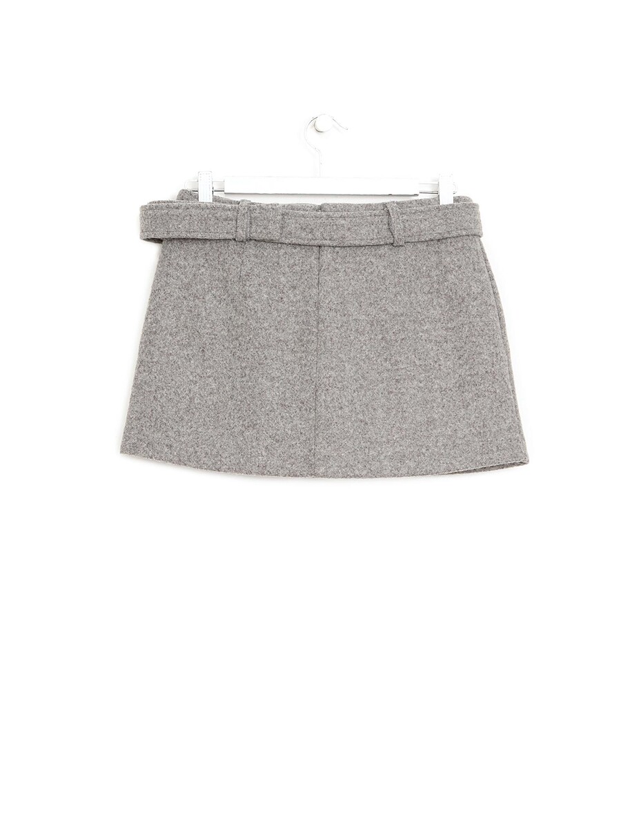 Mini-jupe grise avec fermeture à ceinture. Ourlet droit.
