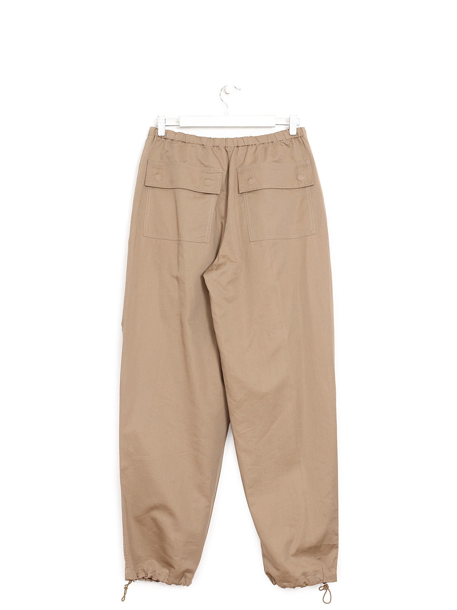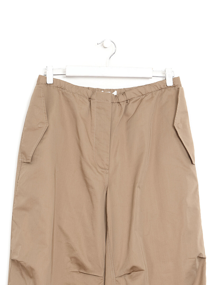 Pantalon parachute en beige avec taille élastique. Coupe taille haute. Quatre poches.