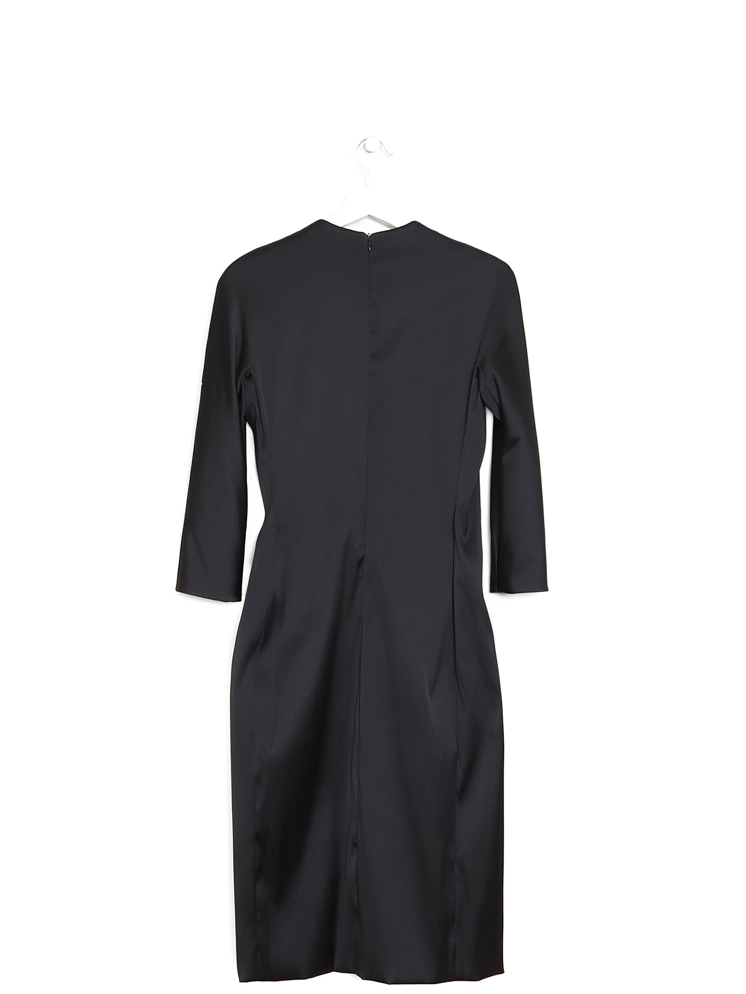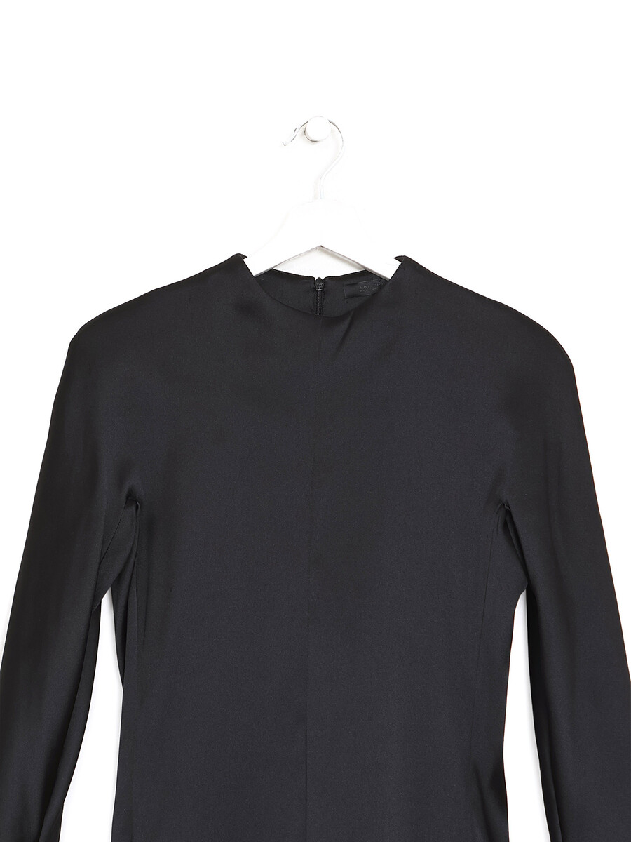 Robe midi à manches longues en noir. Encolure ronde.