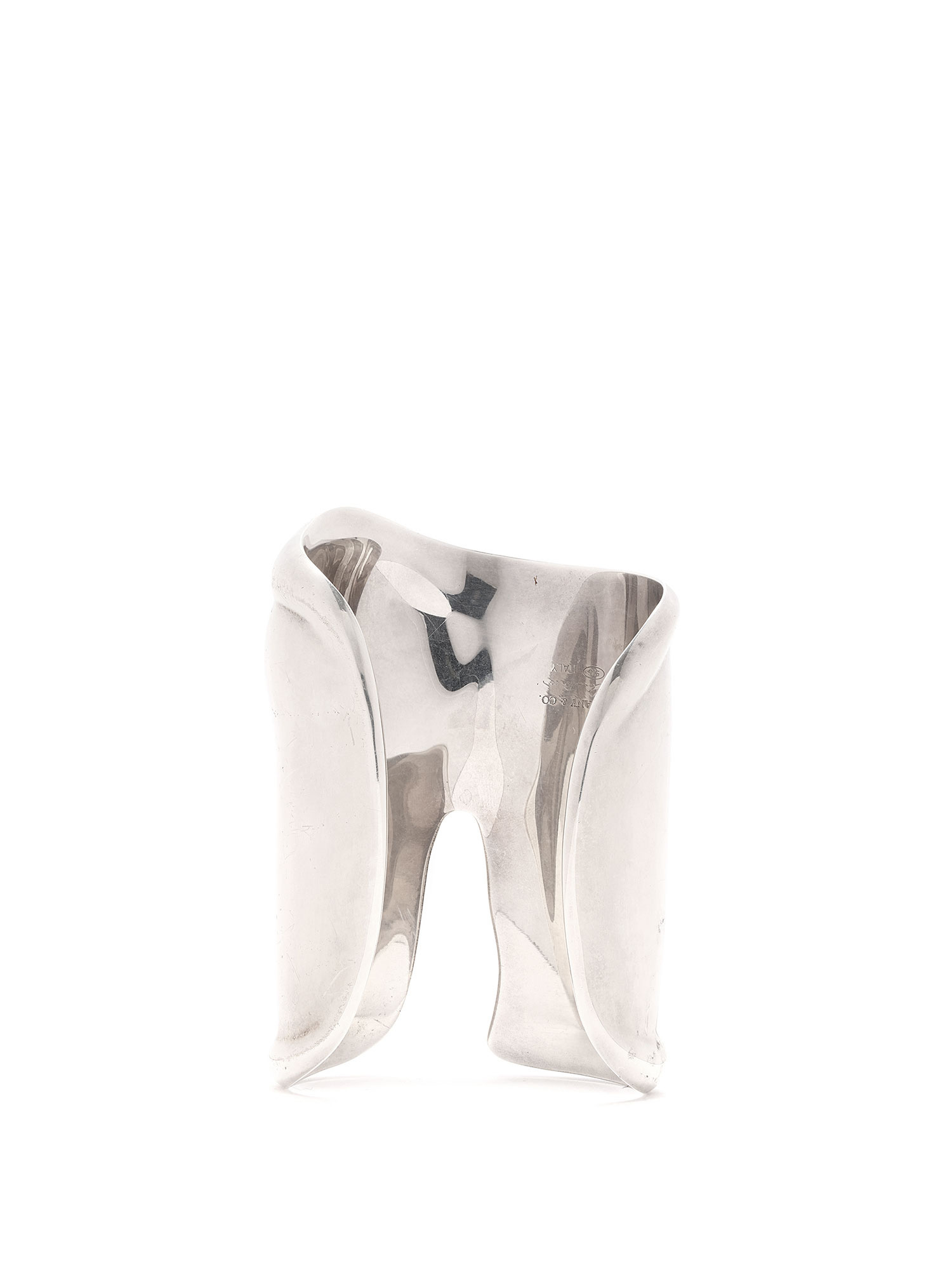 Manchette en argent sterling au design organique. Fermeture à enfiler. Fente centrale. Avec dust bag.