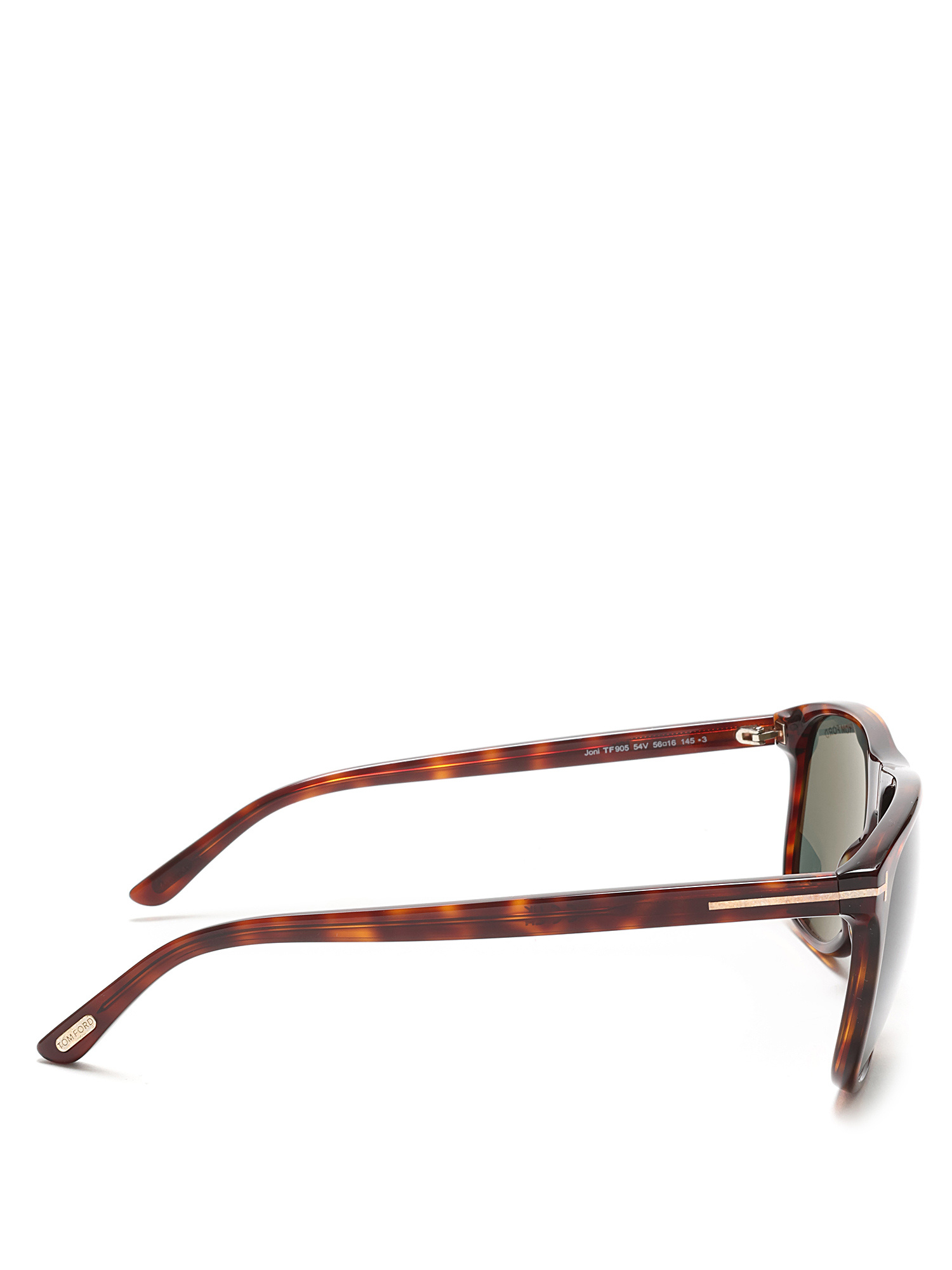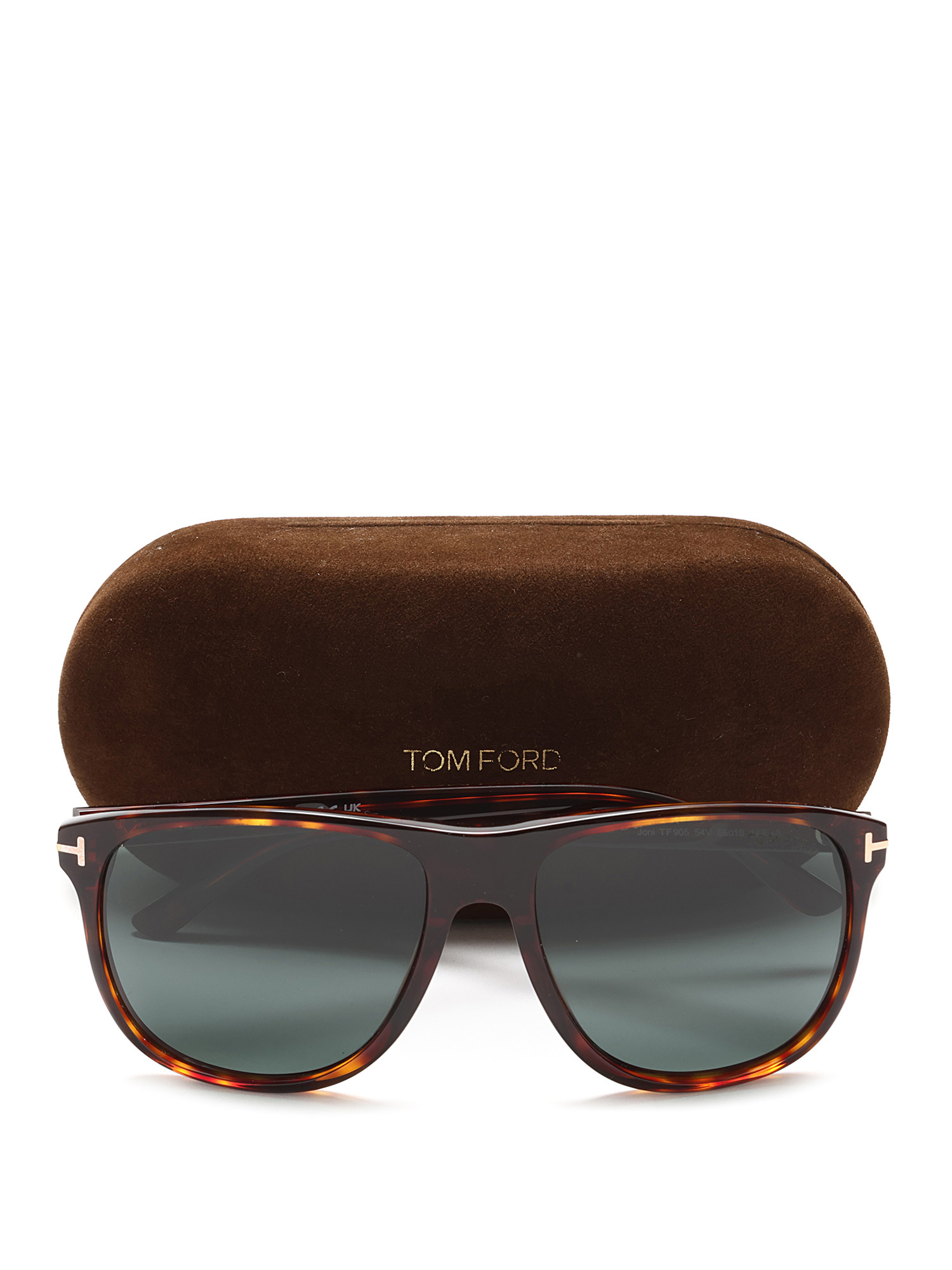 Lunettes de soleil avec monture en acétate à motif écaille de tortue dans les tons bruns. Verres carrés légèrement surdimensionnés.
