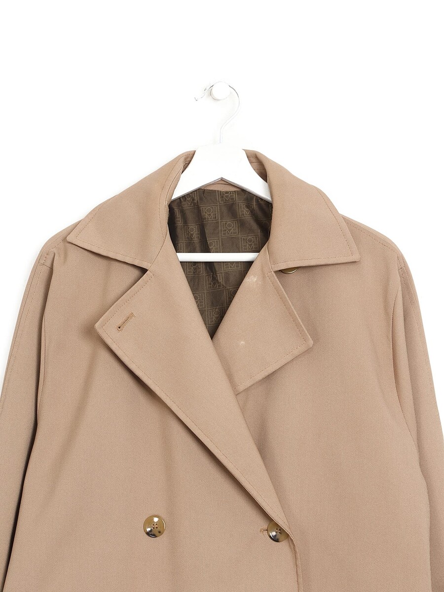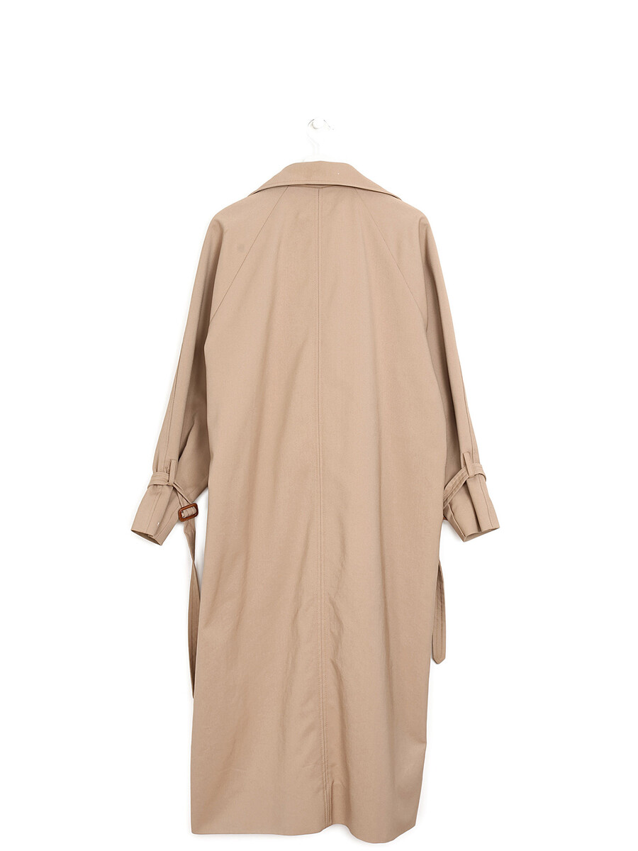 Manteau long à fermeture par boutons en tissu extensible. Col à revers à encoche dans une coupe classique.