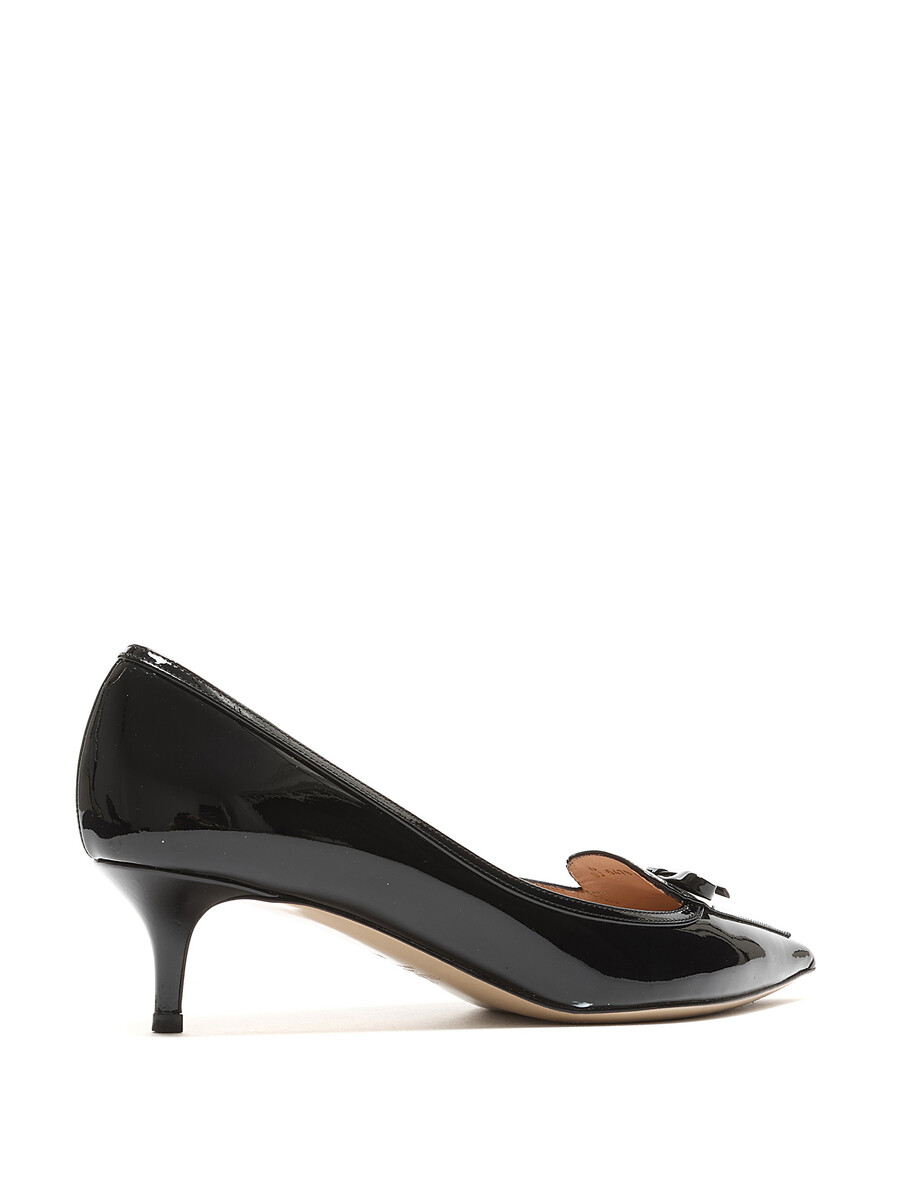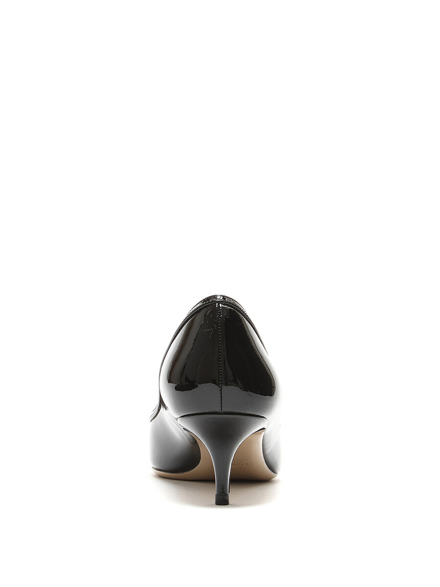Escarpins en cuir verni à bout pointu noirs. Style enfiler avec design de bout pointu élégant et talon aiguille. Semelle en cuir.