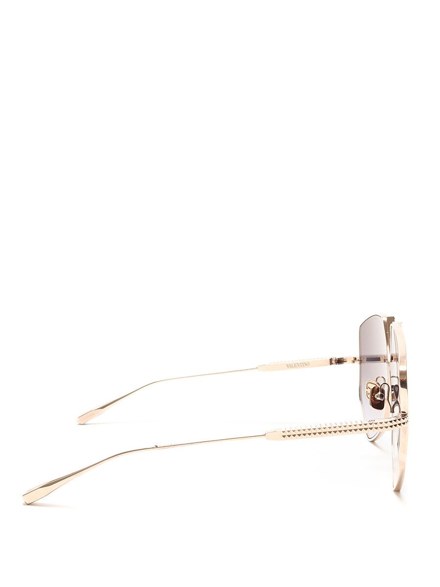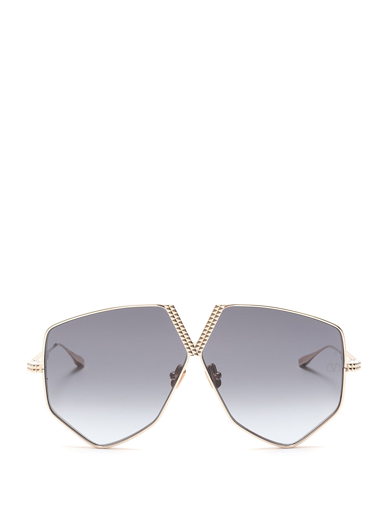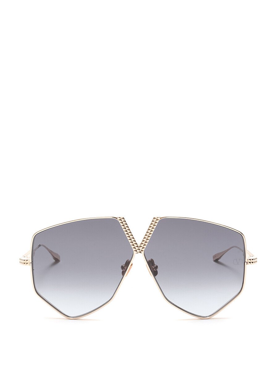Lunettes de soleil surdimensionnées en métal doré avec détail de logo au devant. Verres gris. Quincaillerie dorée. Avec boîte.