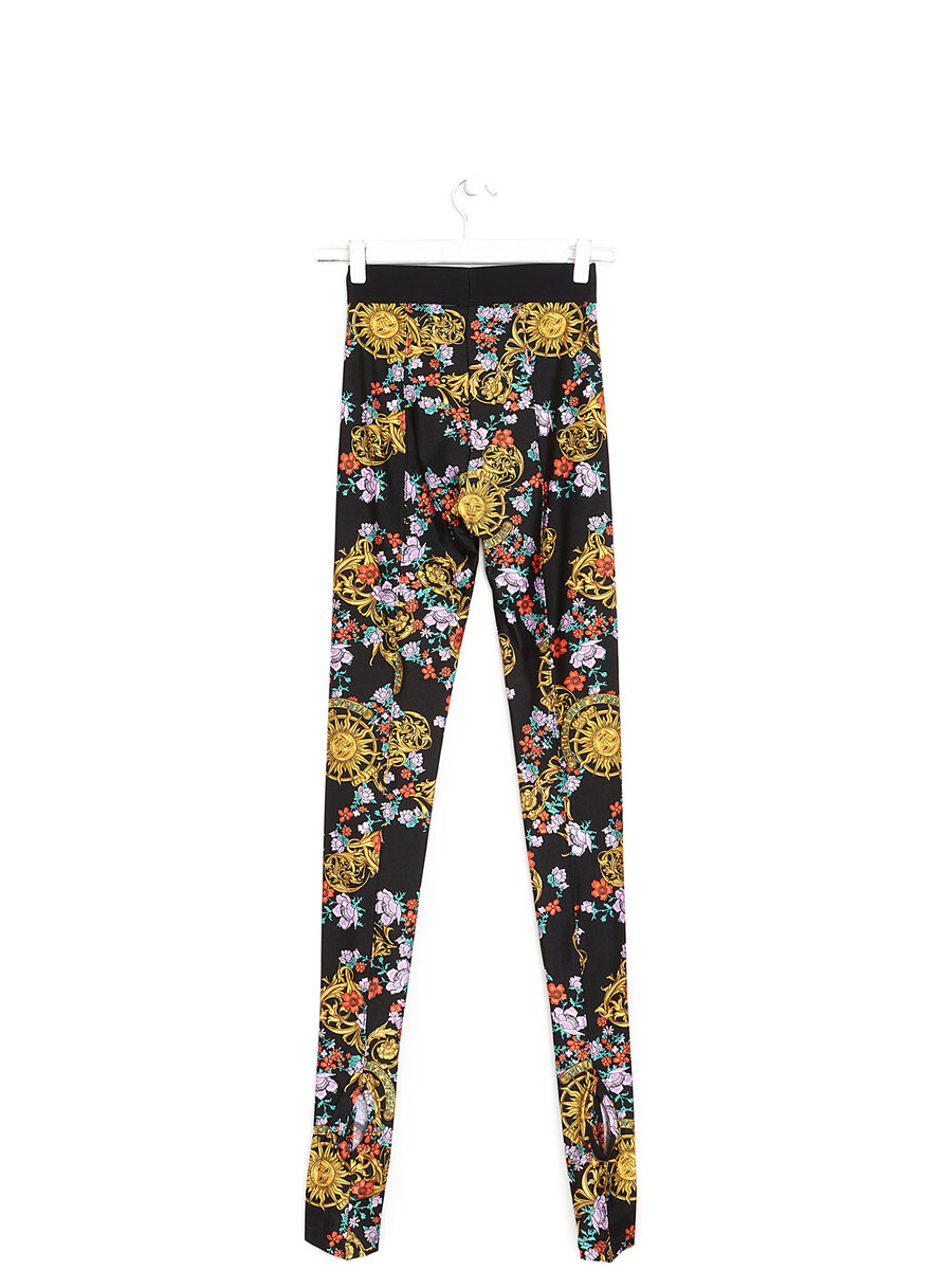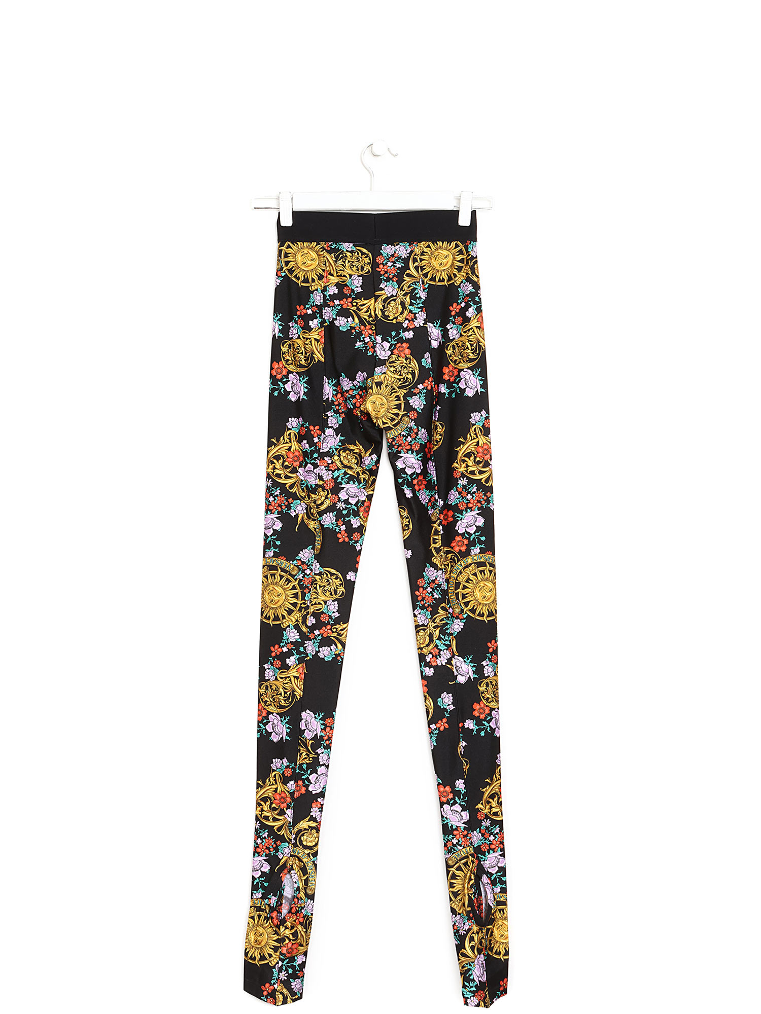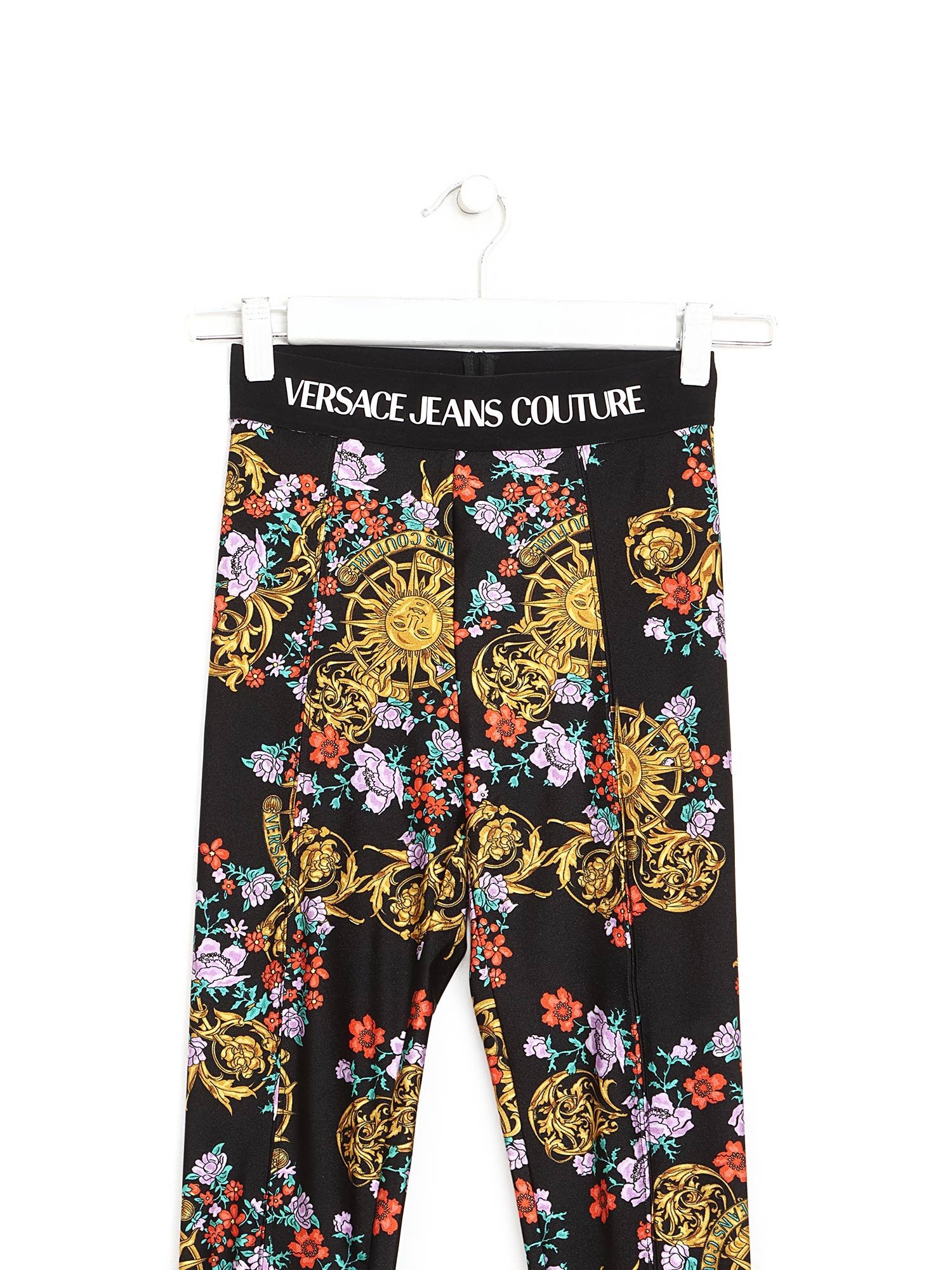 Legging noir à motif floral multicolore. Motif à logo à la taille élastique.