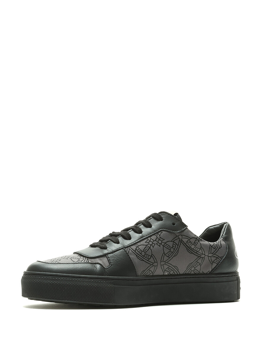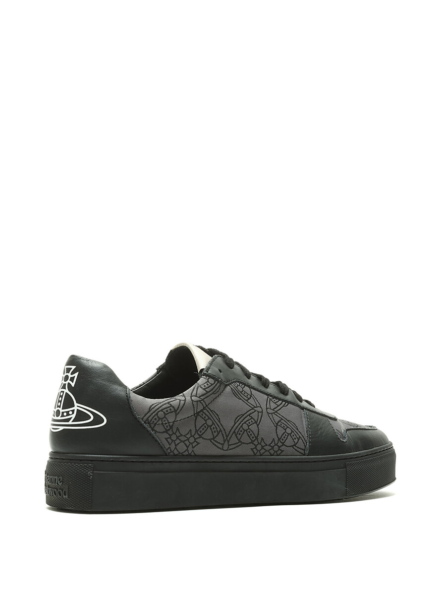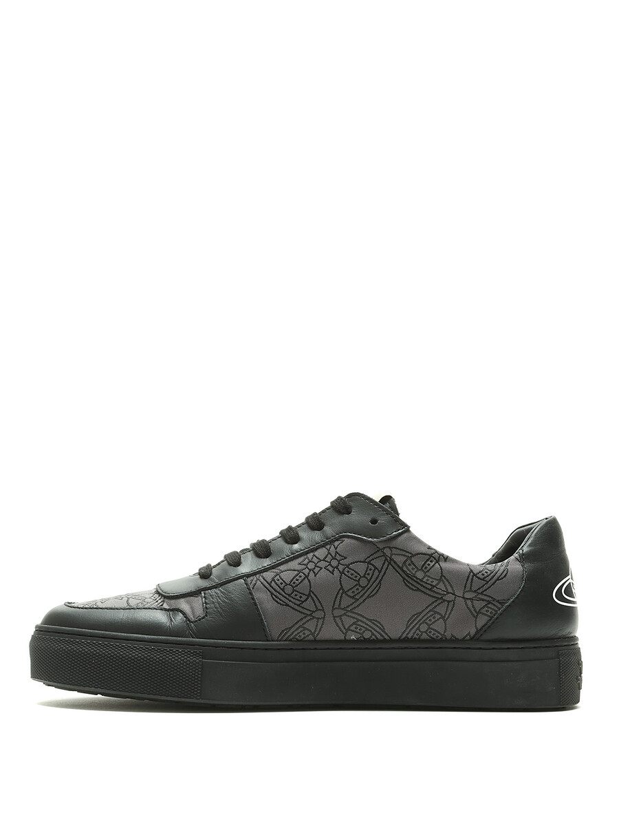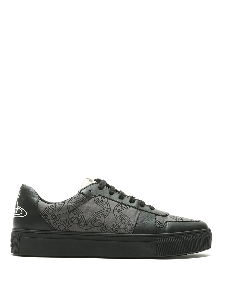 Espadrilles basses en noir et gris à motif monogramme. Bout rond. Fermeture à lacets. Semelle en caoutchouc. Avec boîte.