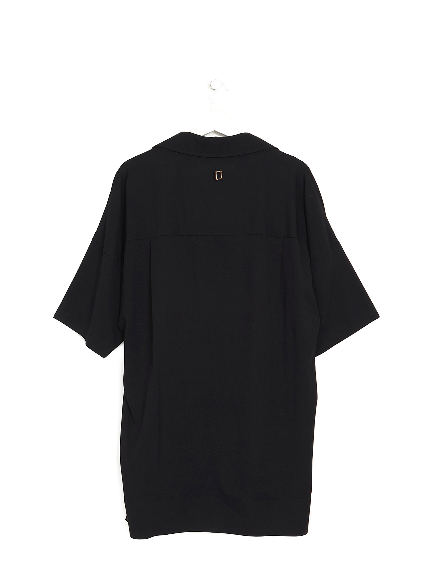 Chemisier à manches longues en noir. Col de chemise classique. Coupe décontractée avec tombé délicat.