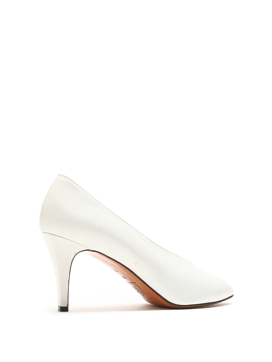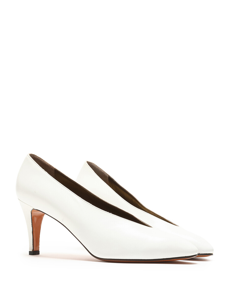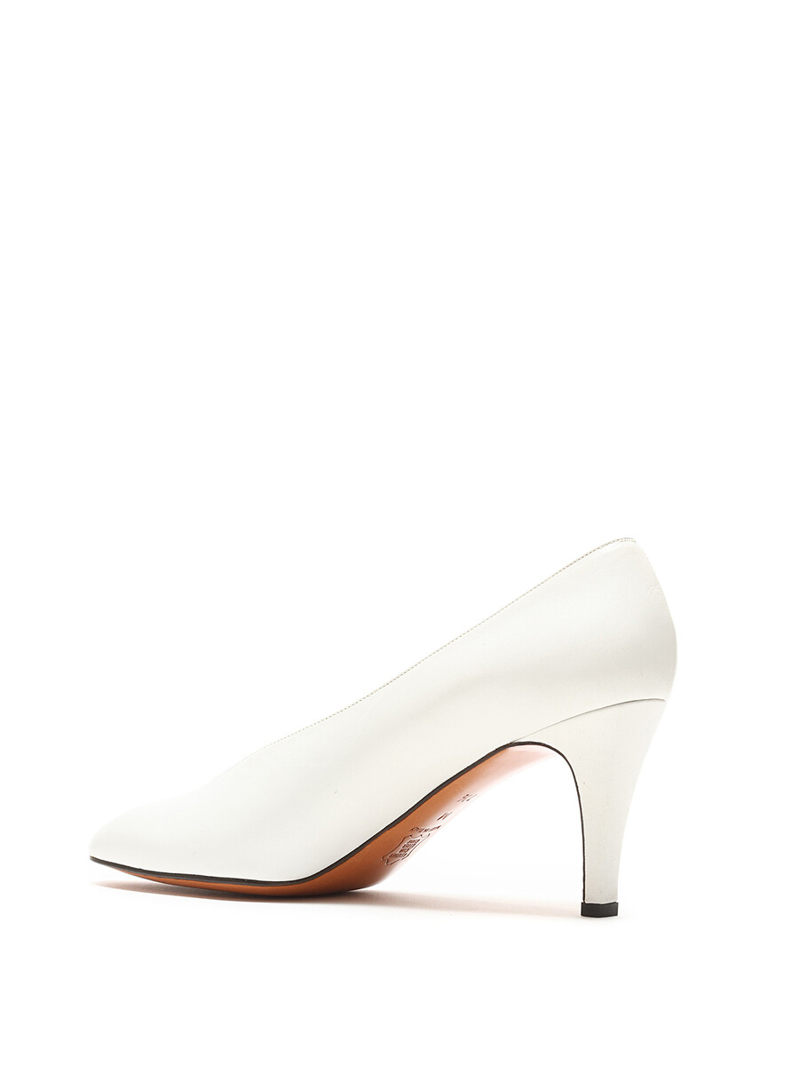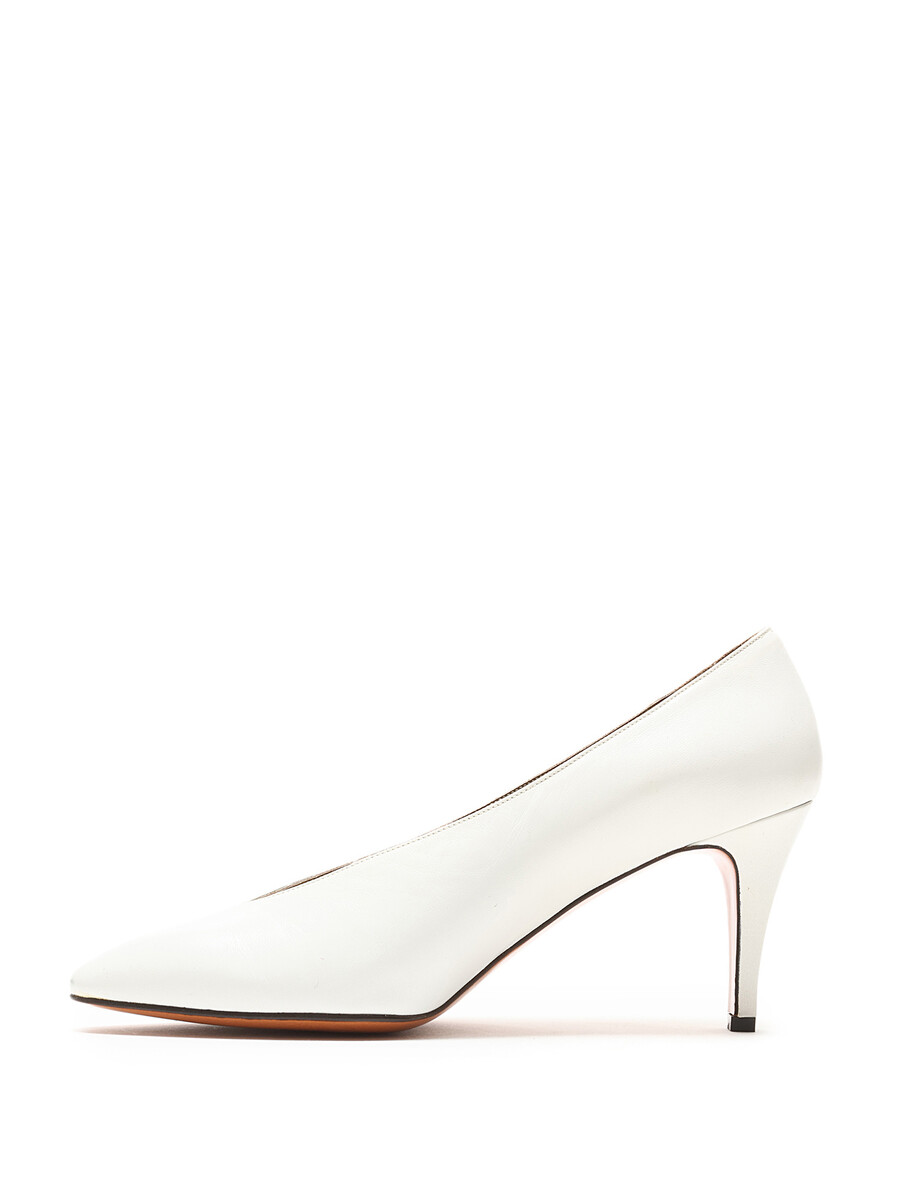 Escarpins en cuir grainé blanc à bout pointu. Semelle en cuir.