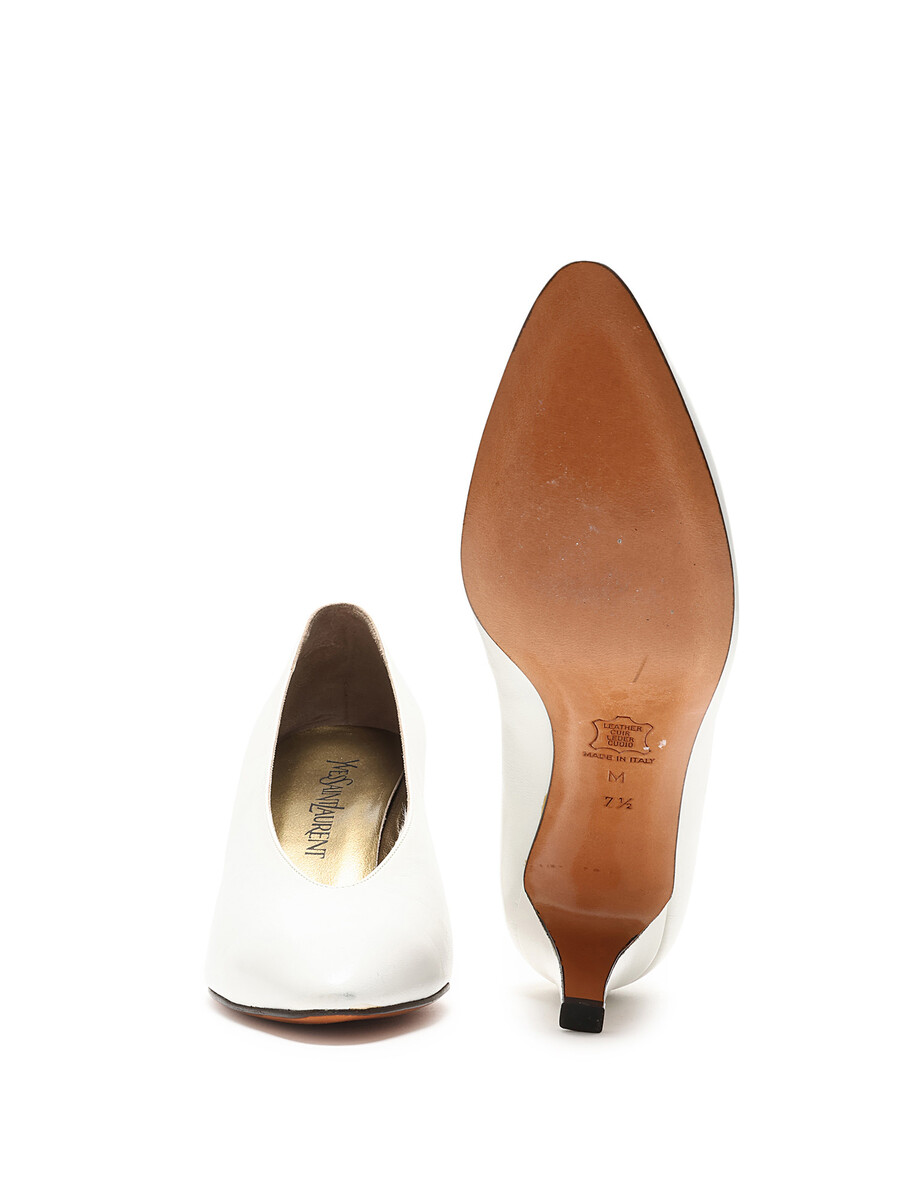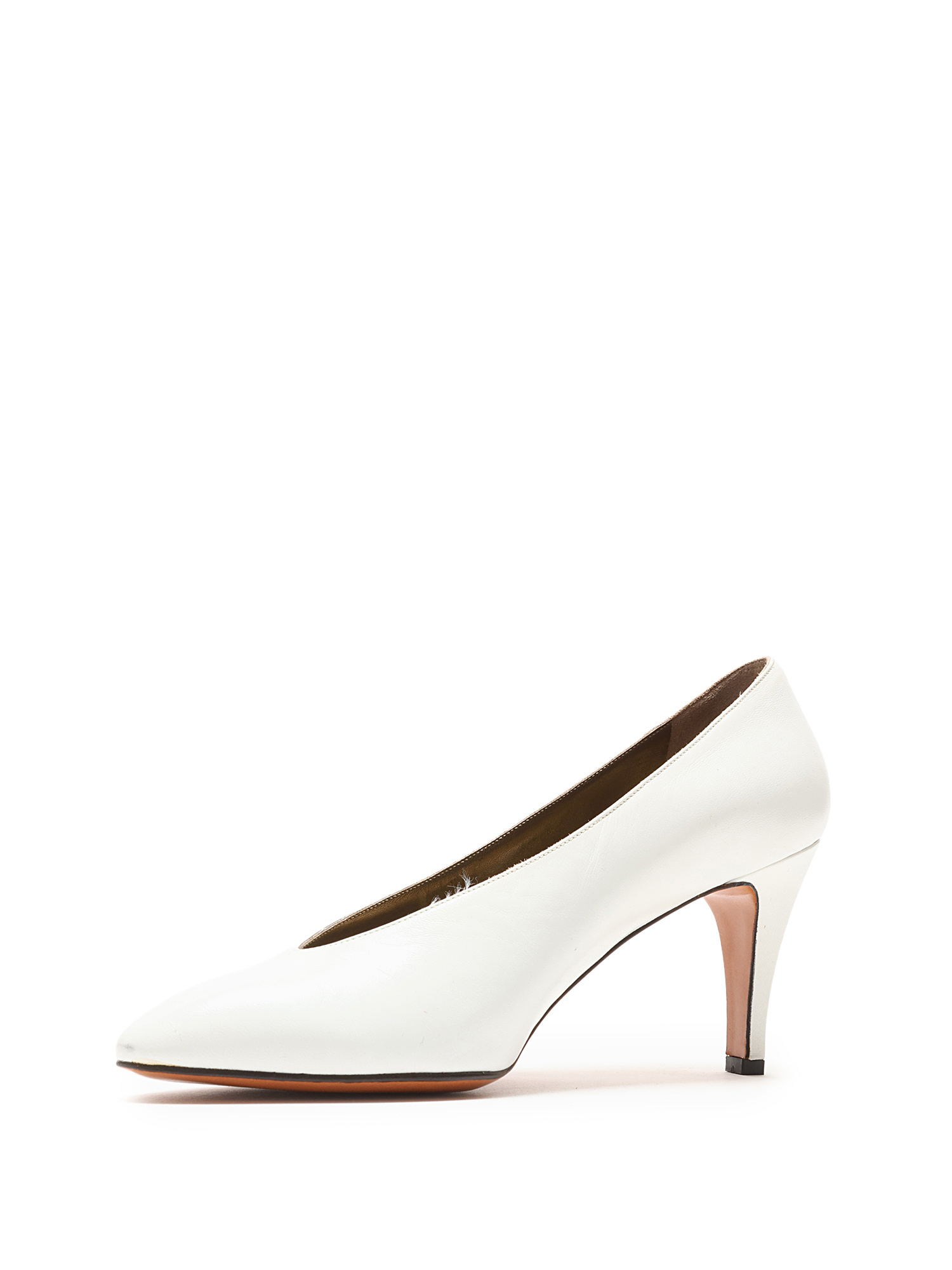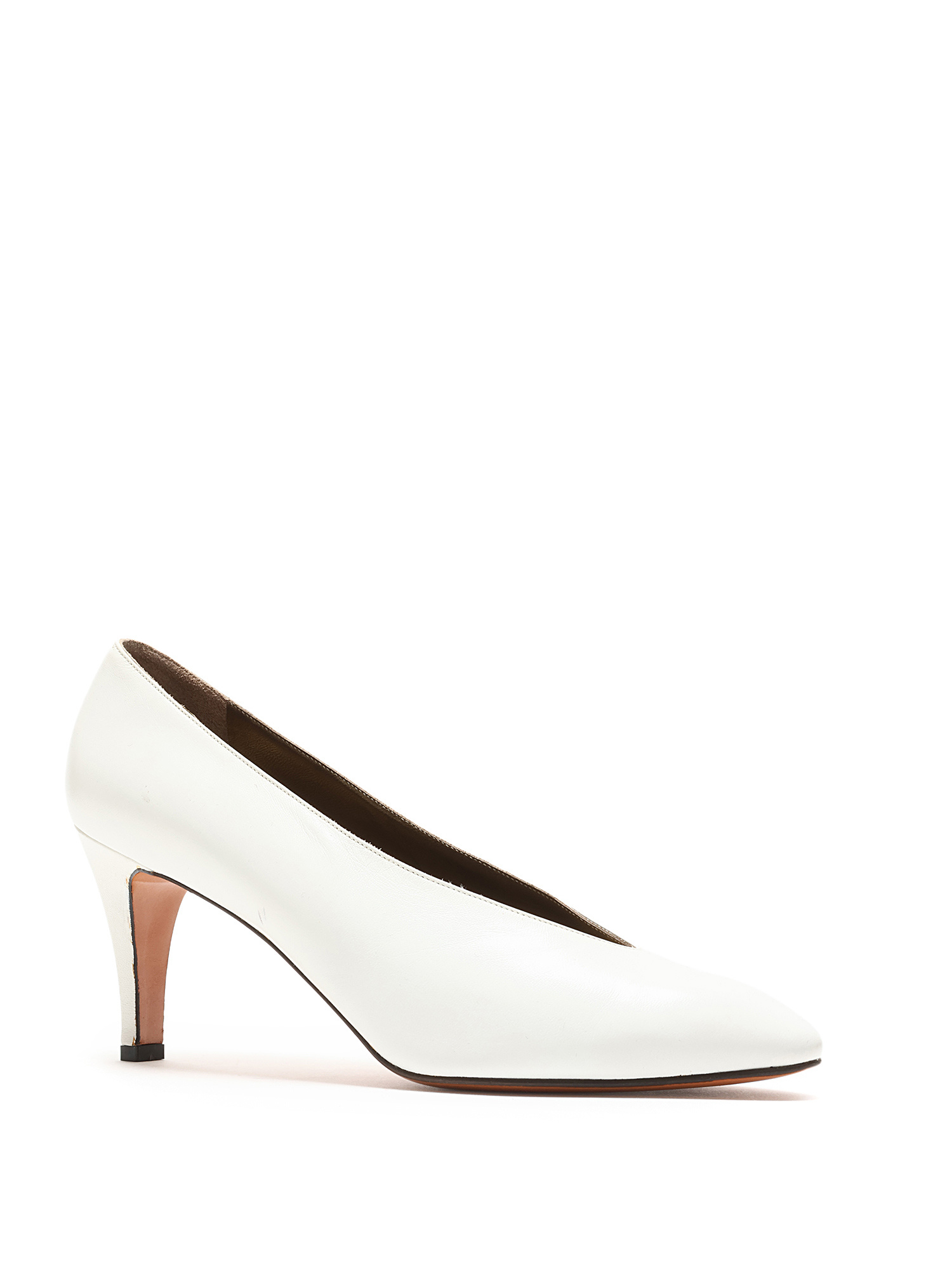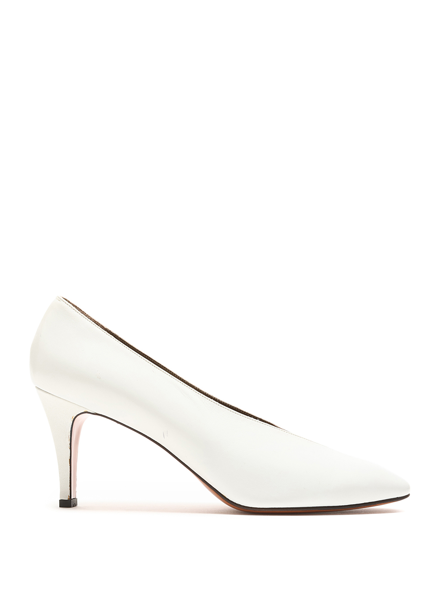Escarpins en cuir grainé blanc à bout pointu. Semelle en cuir.