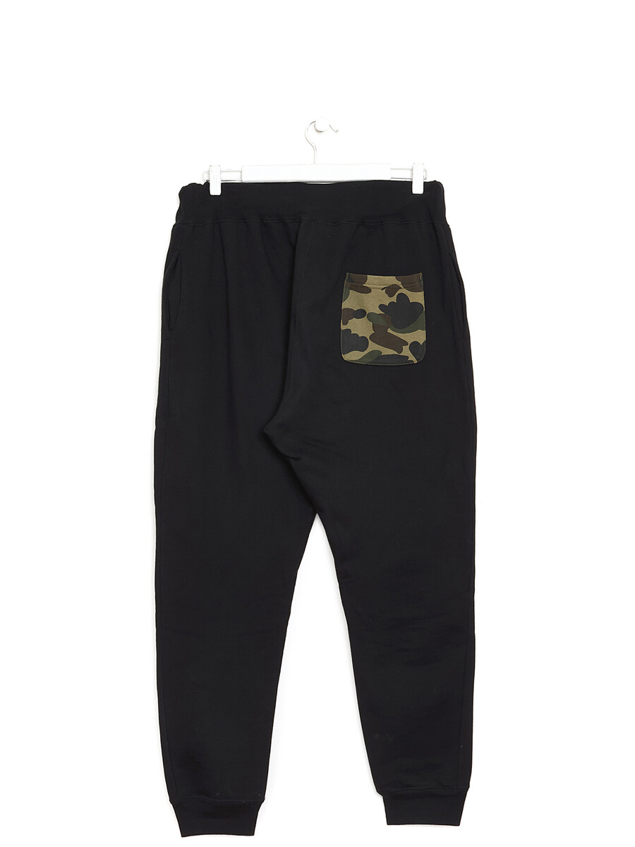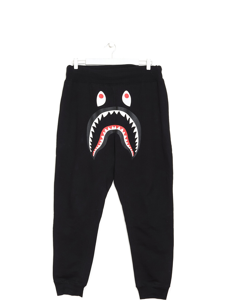 Black shark-print track pants. Elastic waistband. Features signature shark design.