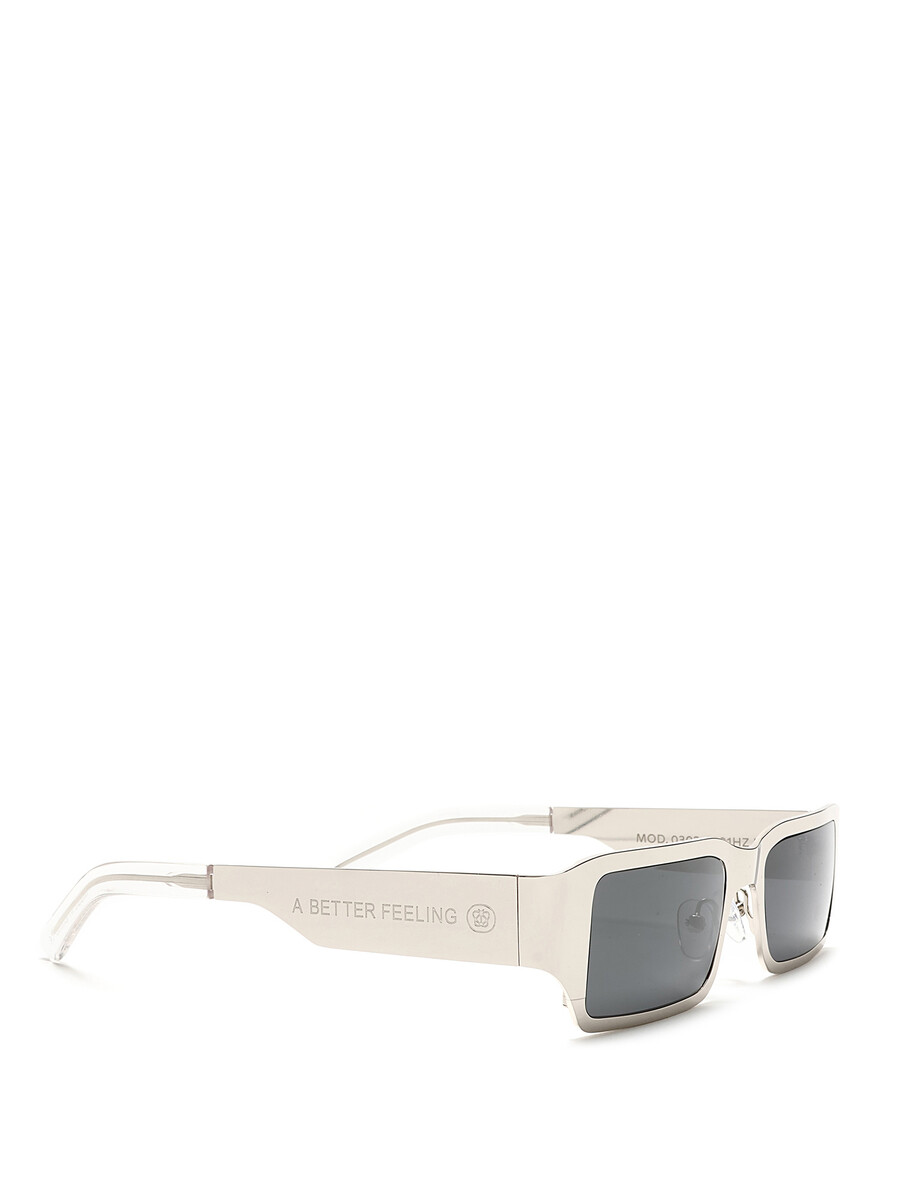 Rectangular metal sunglasses featuring a logo motif in silver. Silver-tone hardware.