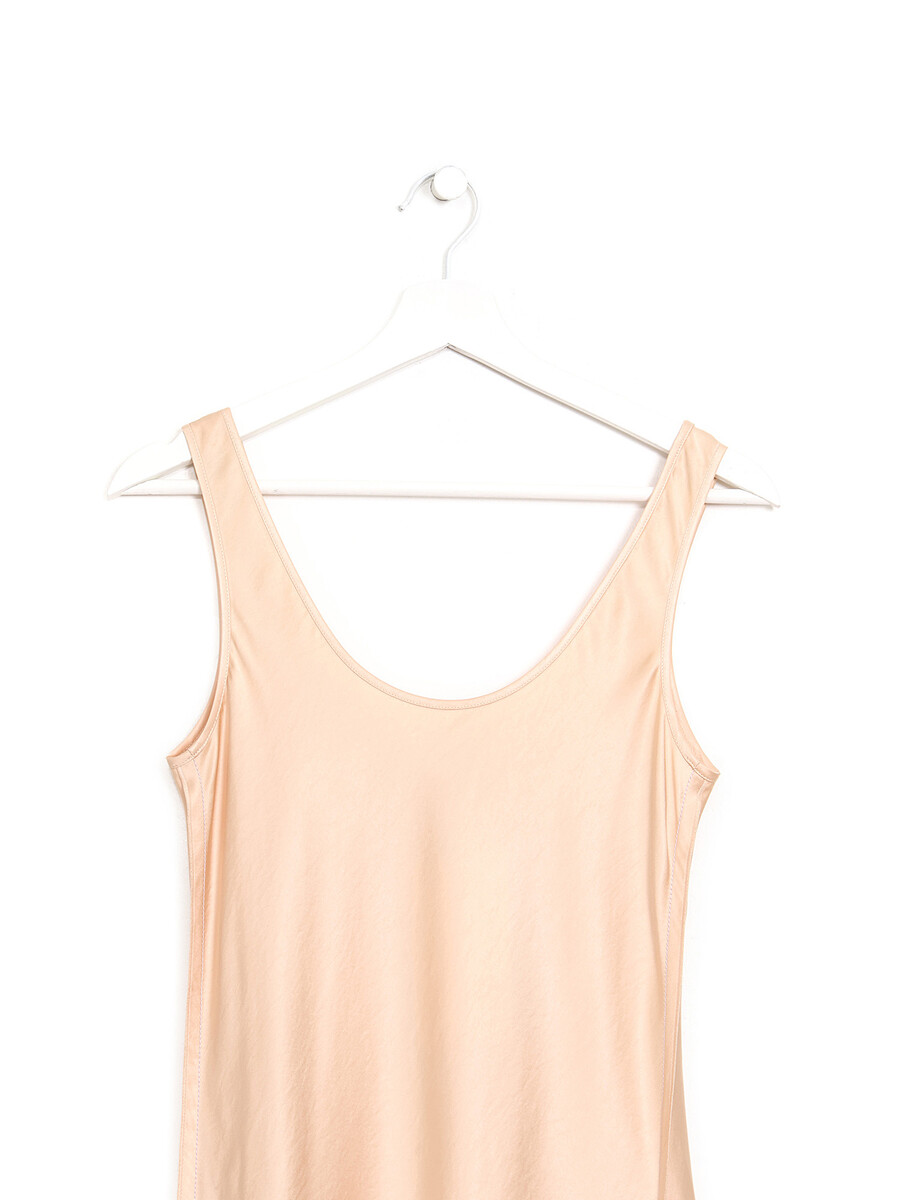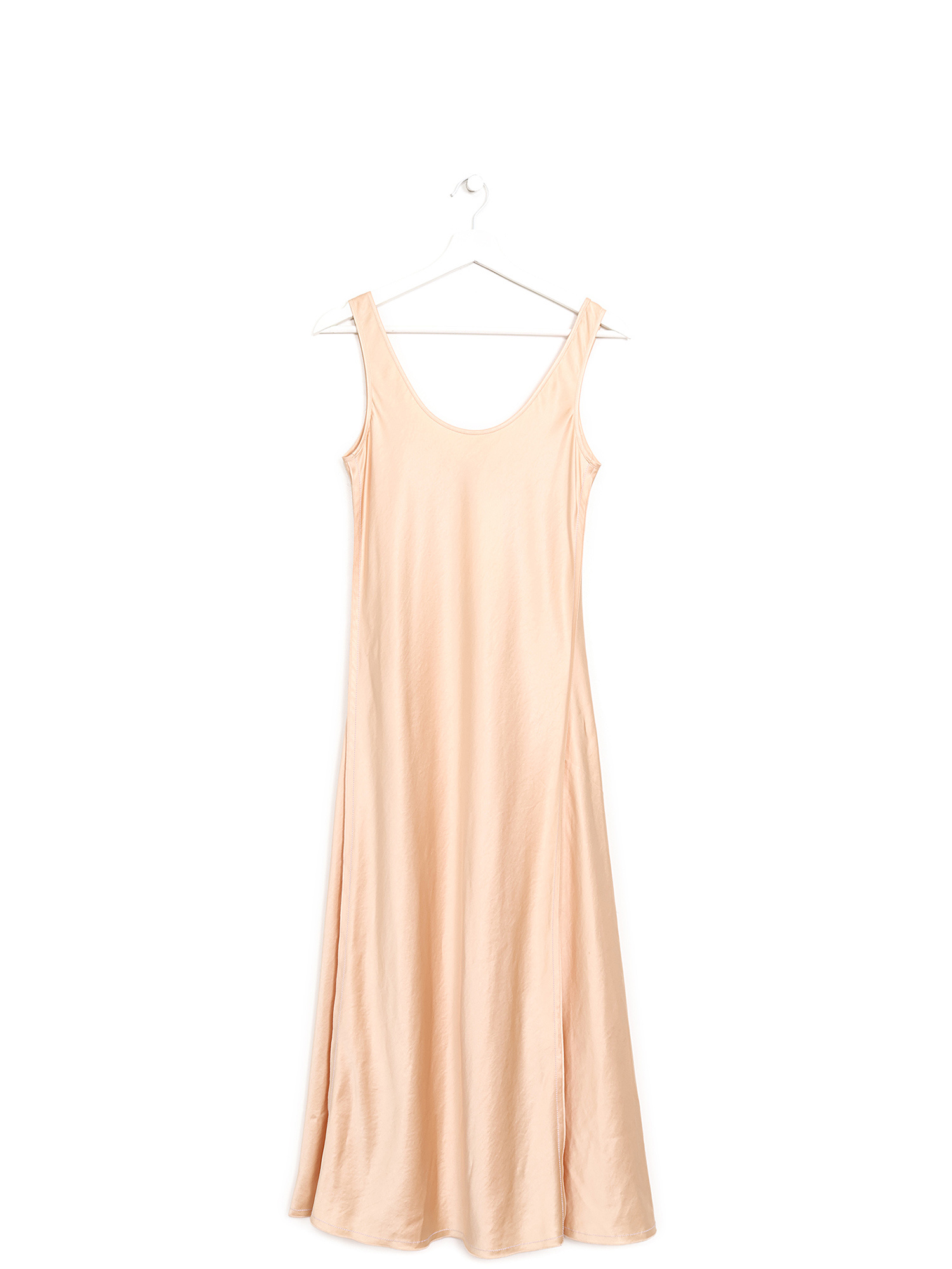 Sleeveless pull-on maxi dress in vibrant orange. Round neckline.
