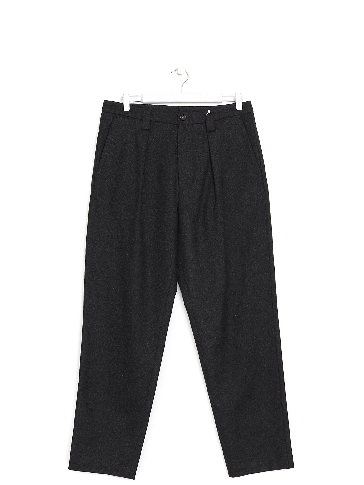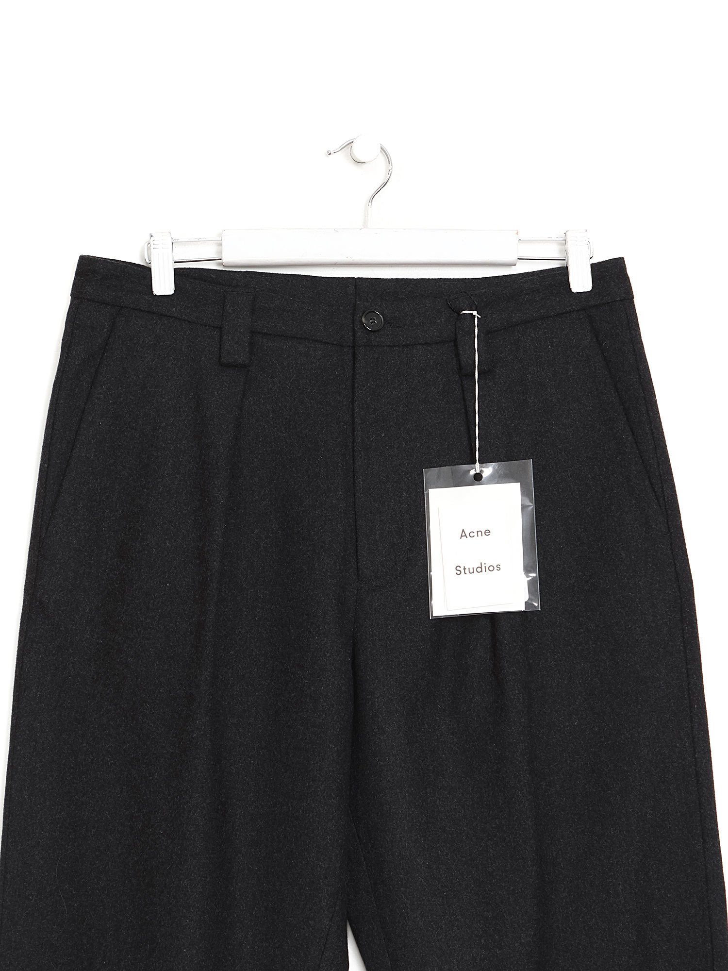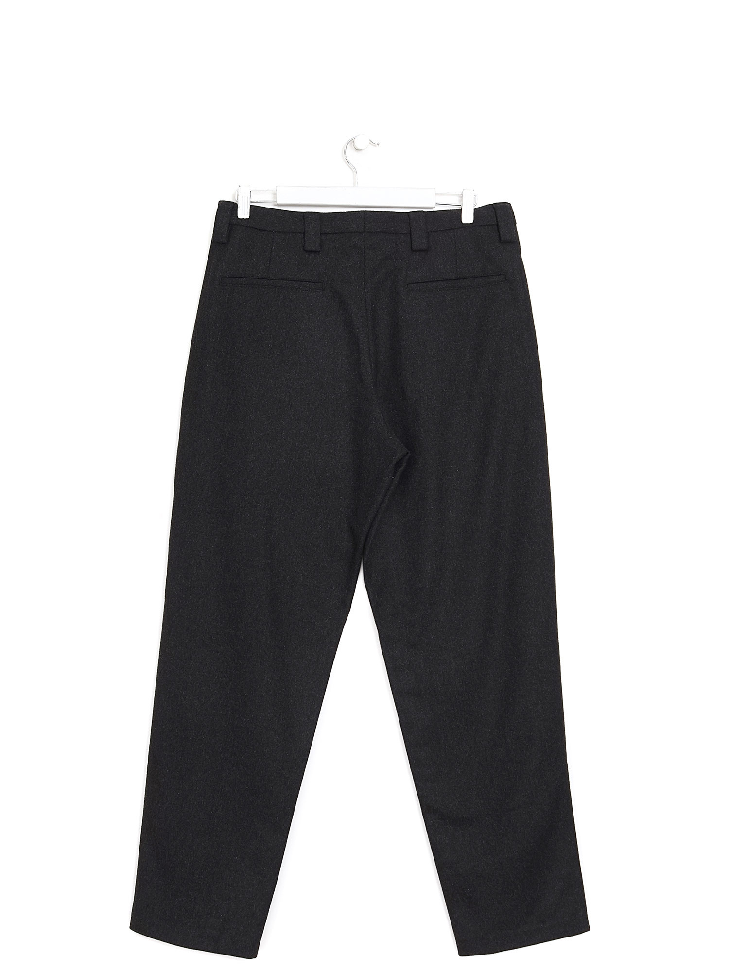 Slim-fit wool-blend trousers in black. Button closure. Lateral pockets and back buttoned pockets.