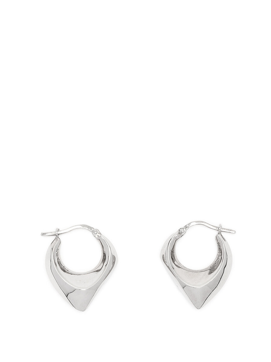 Silver-tone metal earrings with a hinged hoop design. With original box and dust bag.