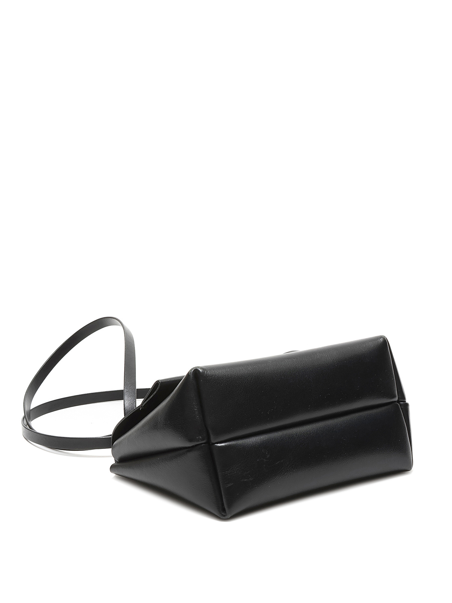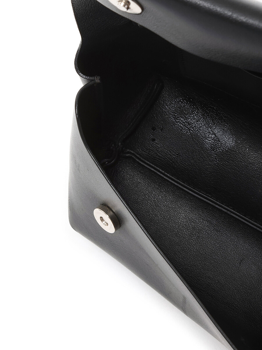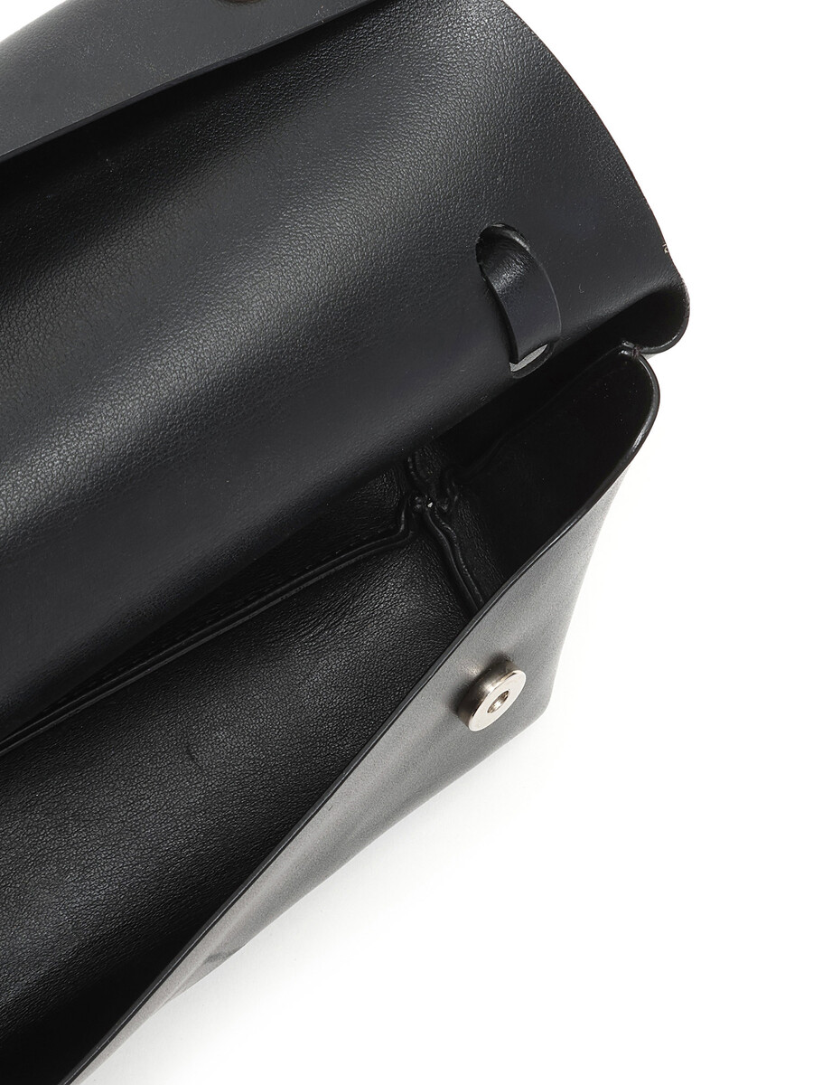 Grained leather shoulder bag in black. Adjustable leather strap. Magnetic closure. Tonal stitching.