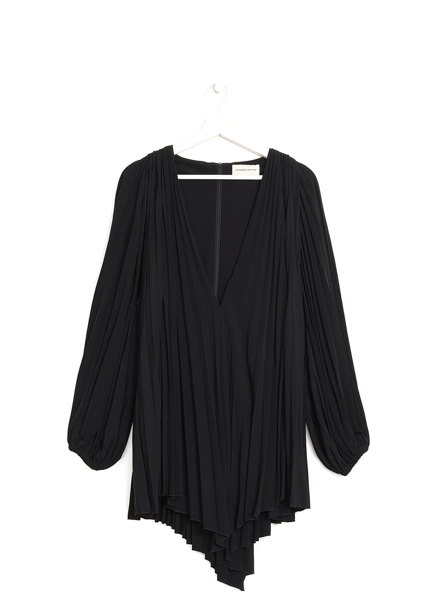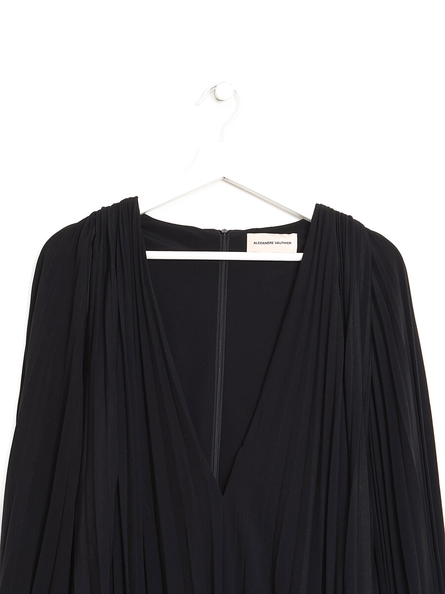 Sleeveless dress with all-over pleating in black.