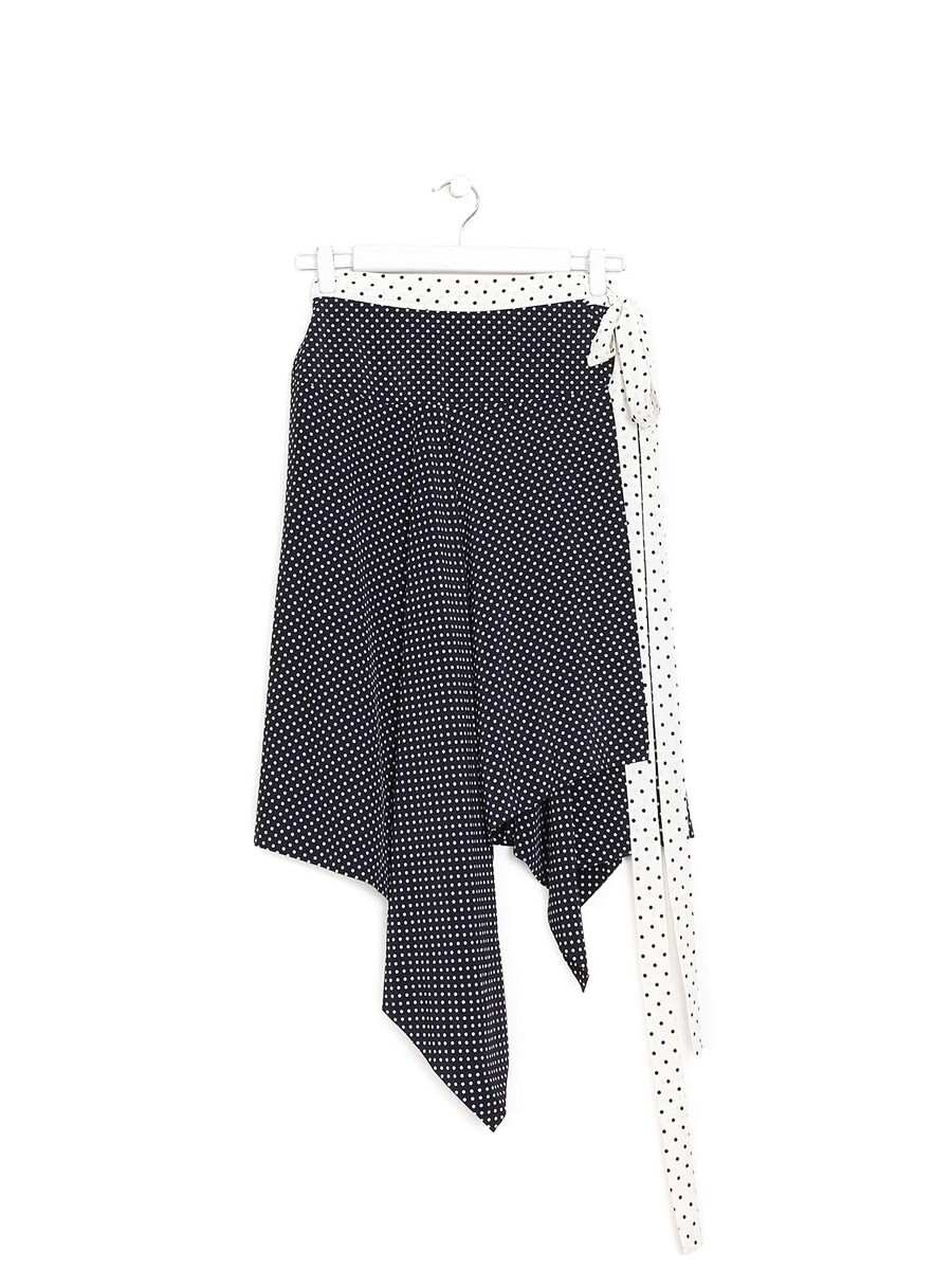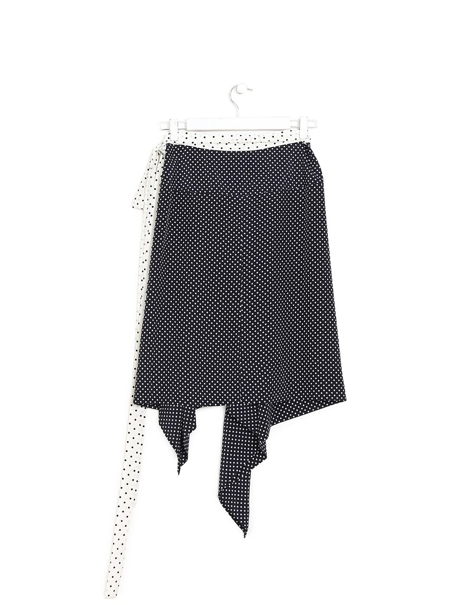 Polka dot wrap skirt in black and white. Tie waist detail.