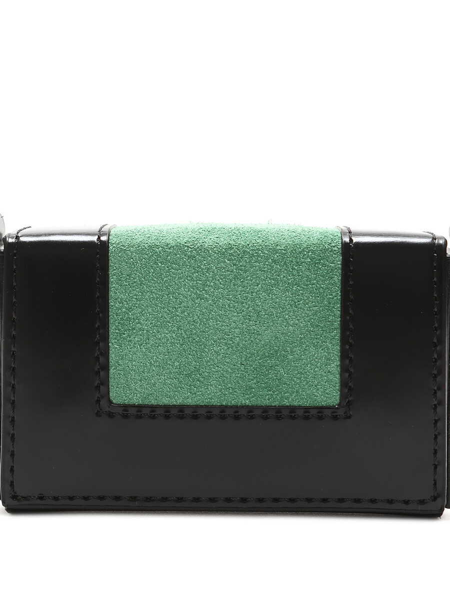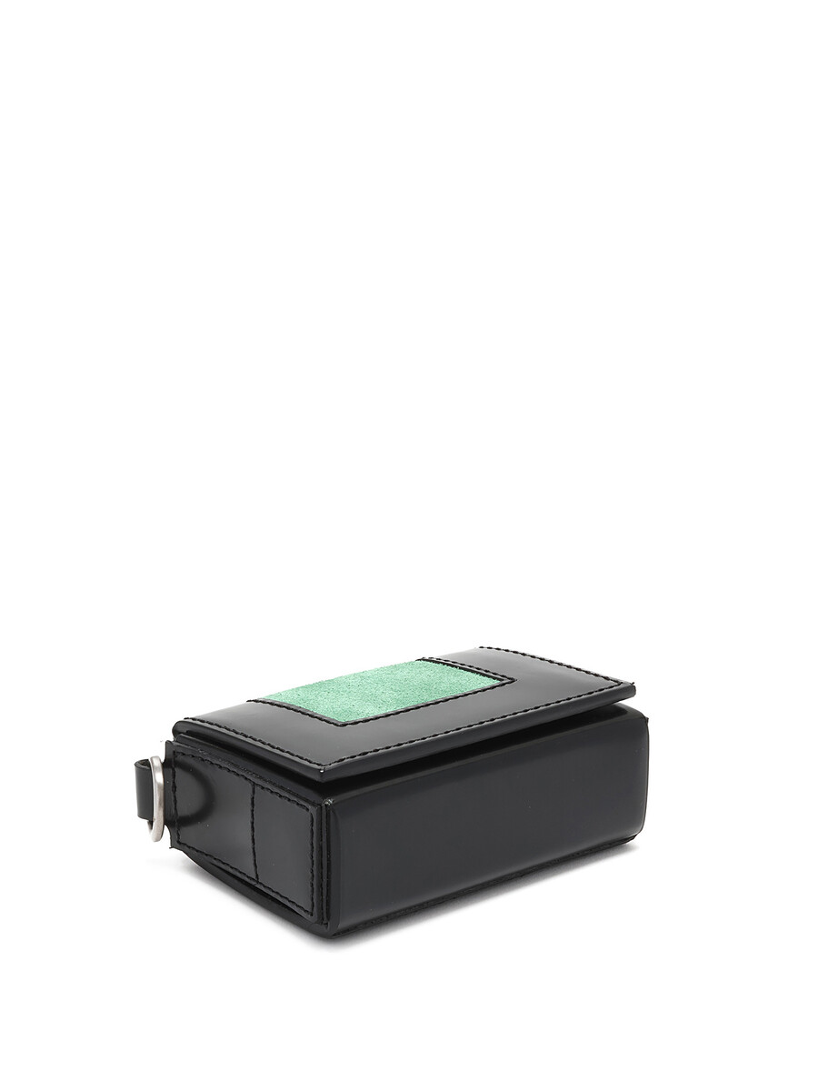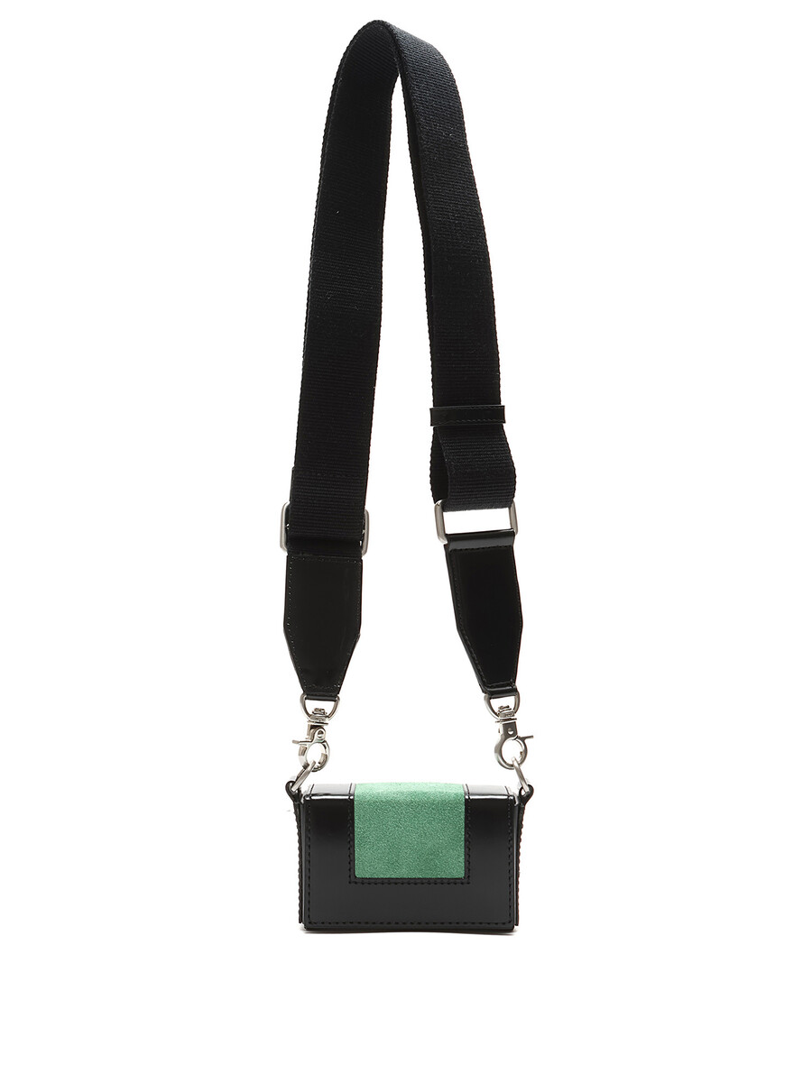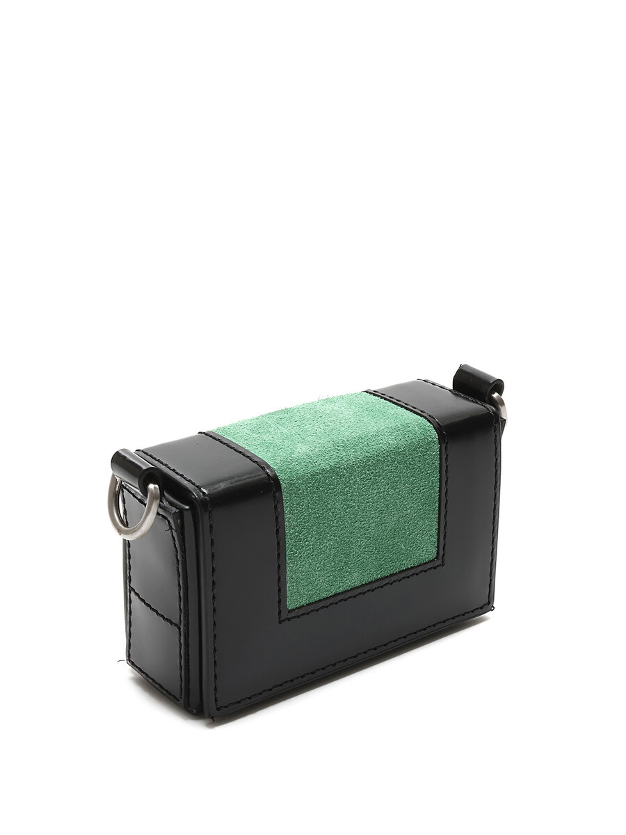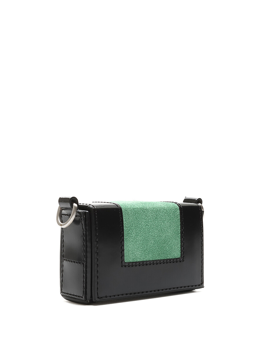 Mini crossbody bag in leather with suede accents in black featuring green details. Magnetic closure. Adjustable fabric strap. Silver-tone hardware.