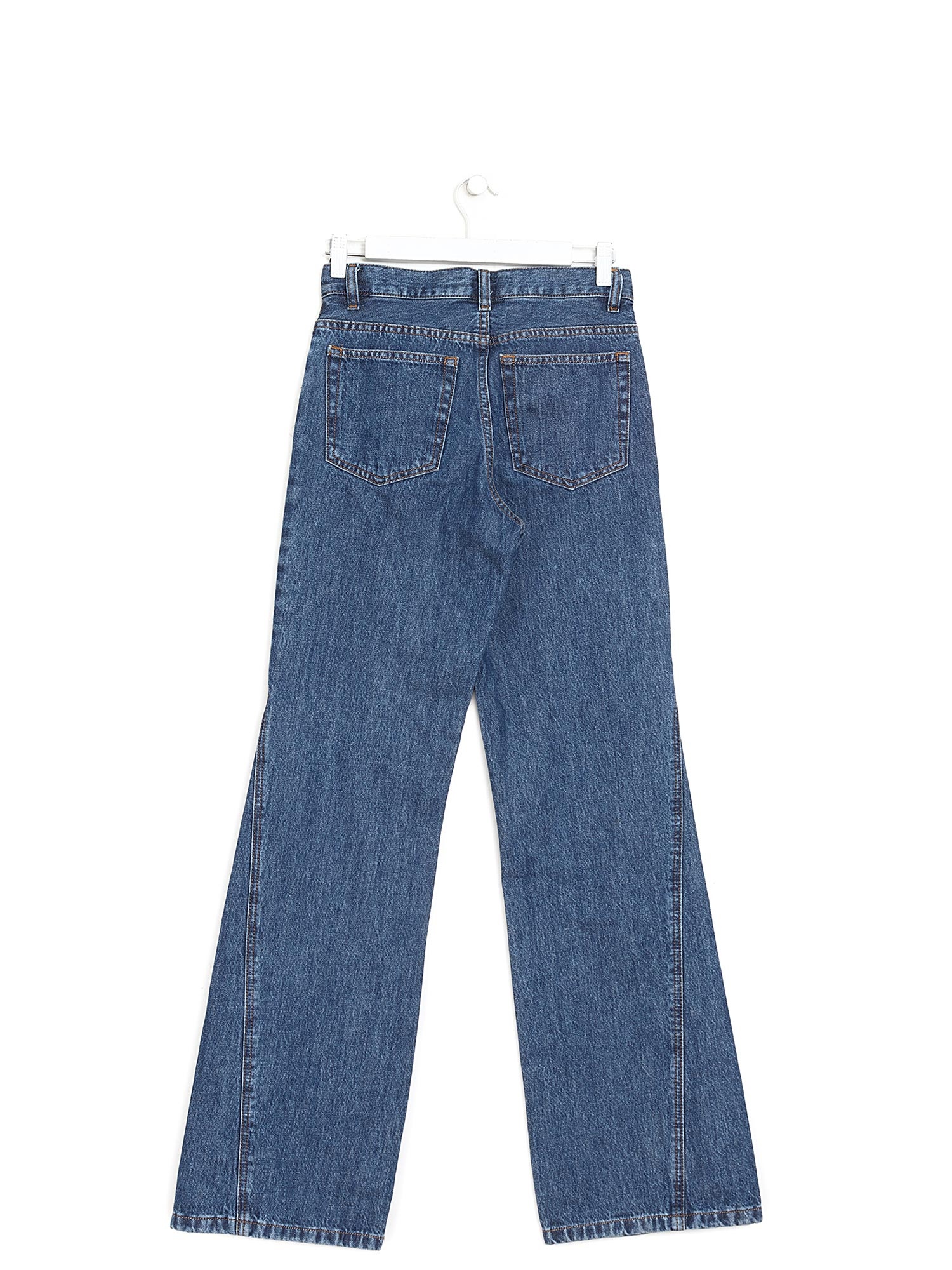 Cropped straight-leg jeans in blue. Mid-rise waist. Zip fly with top button closure. Five-pocket styling with patch back pockets and slant front pockets.