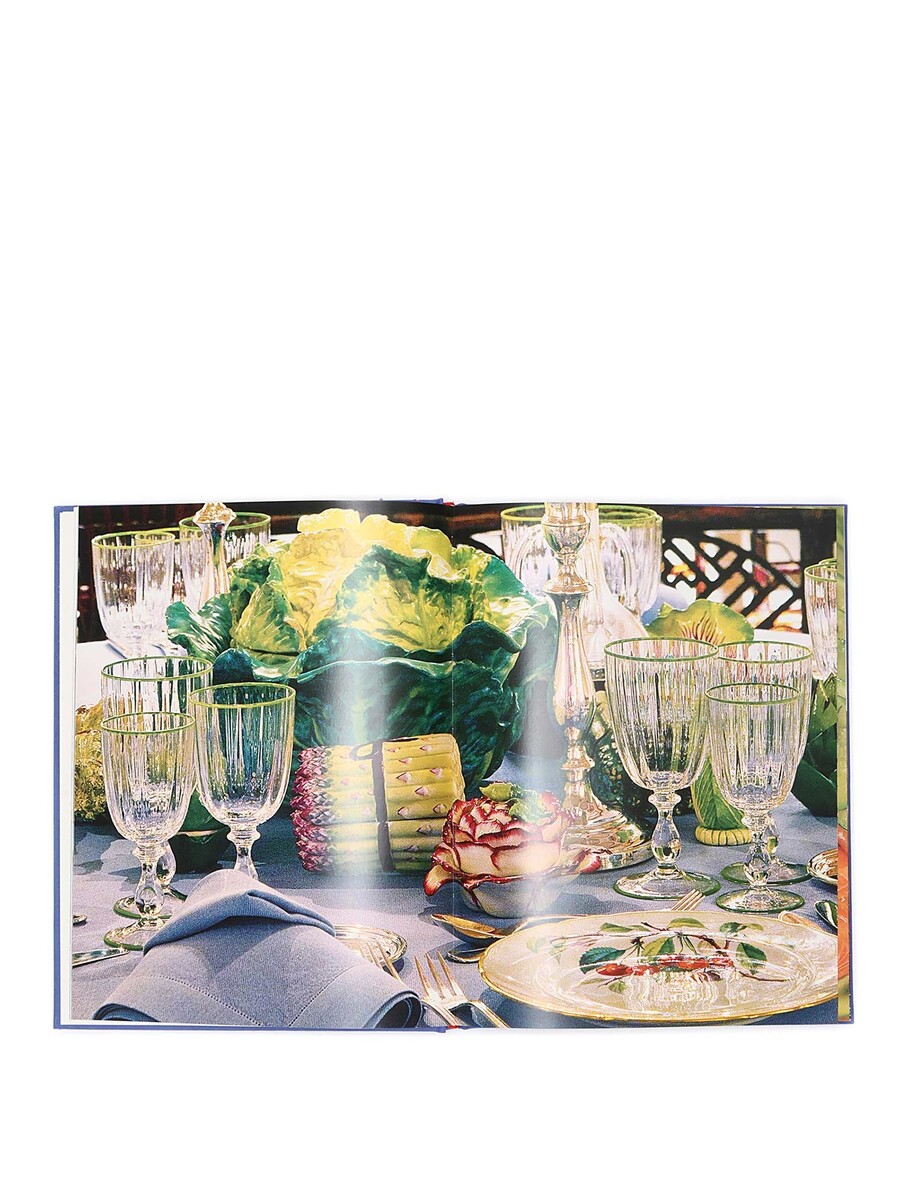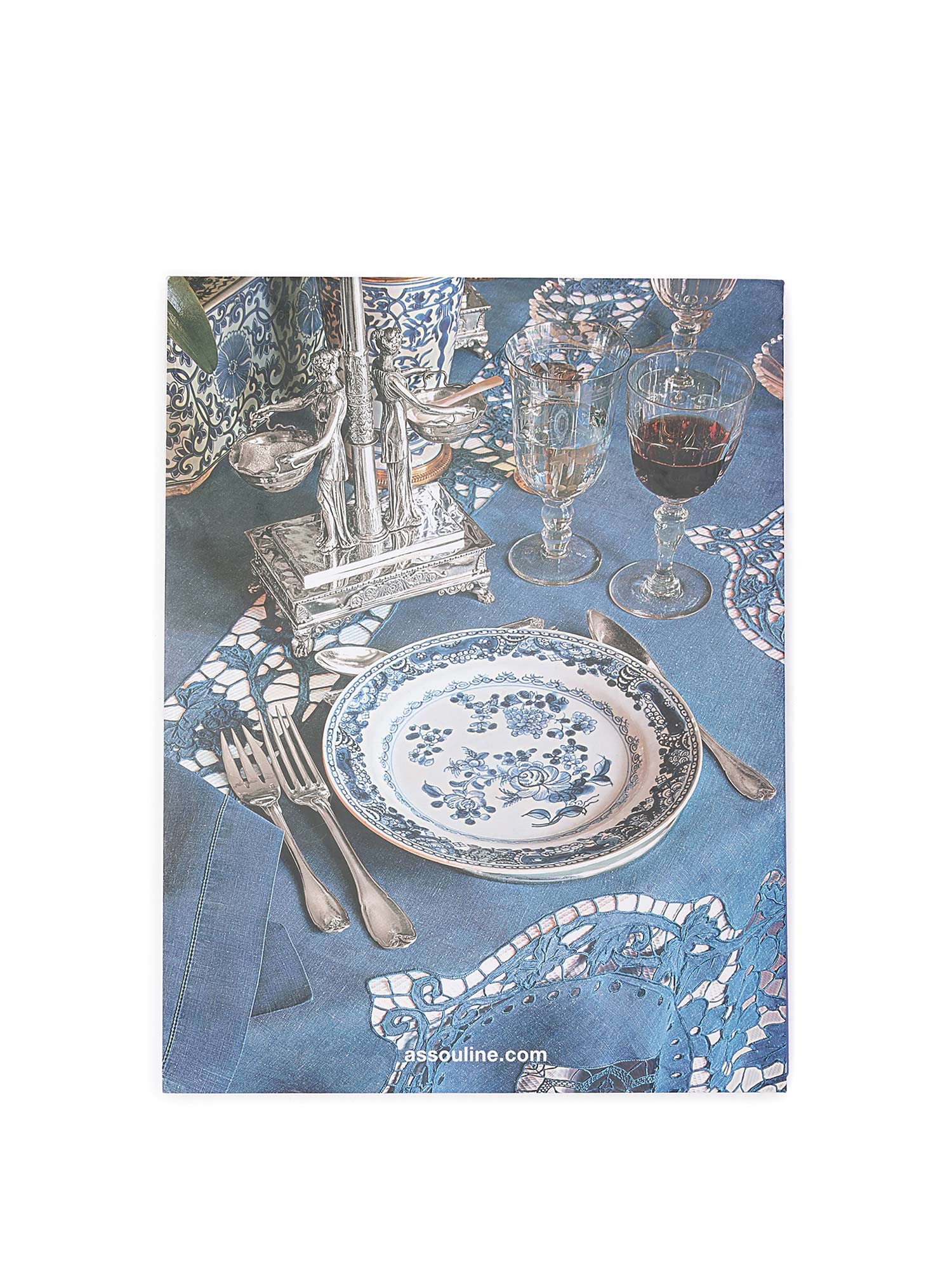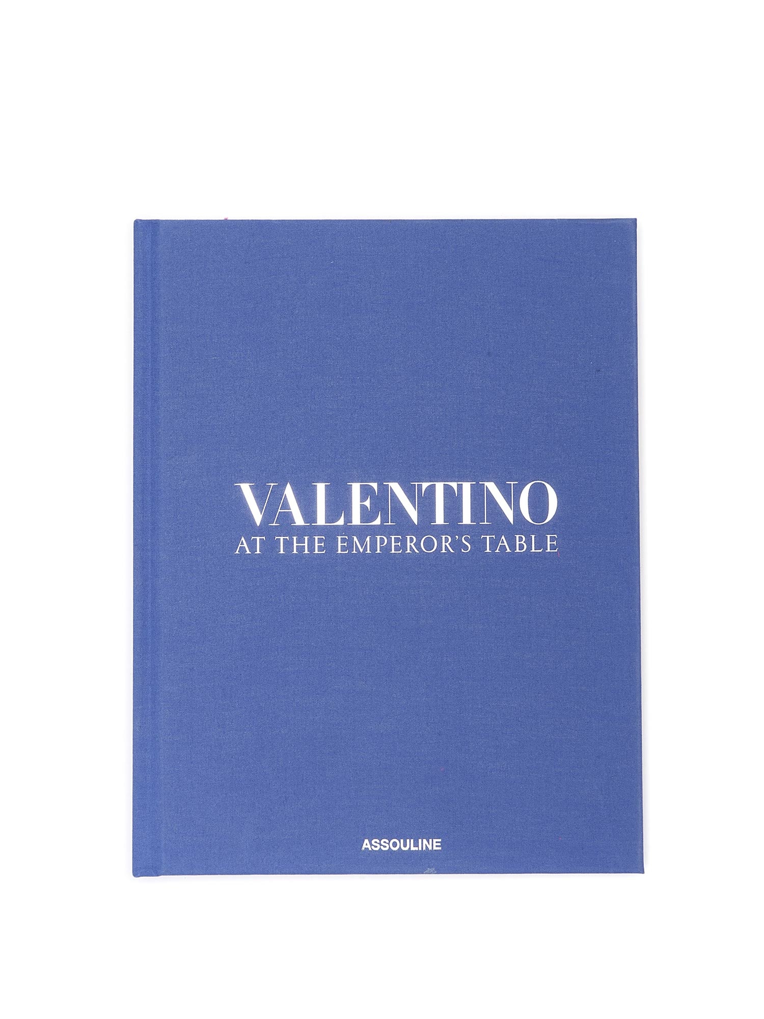 Valentino at the Emperor's Table book by Assouline with a blue cloth cover. Comes with a protective sleeve.