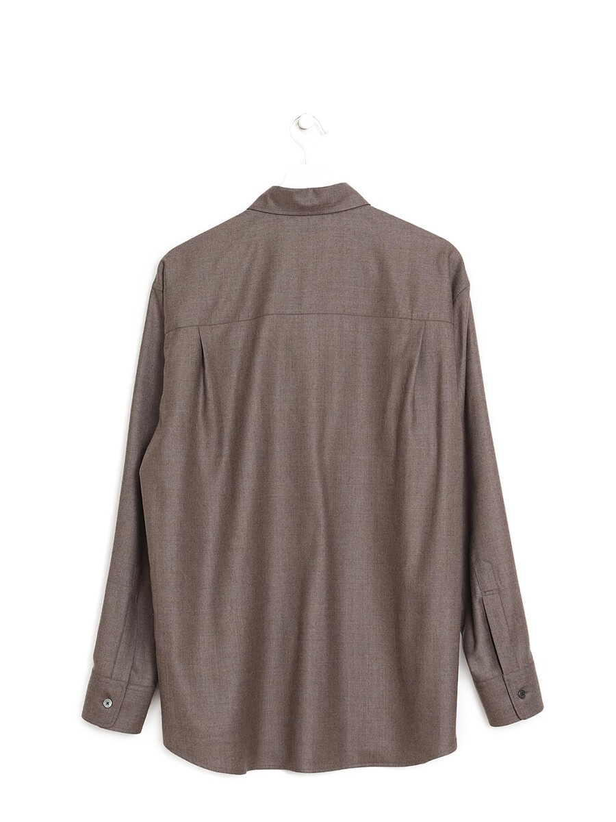 Super light wool long sleeve shirt in brown. Button-front closure. Classic shirt collar.
