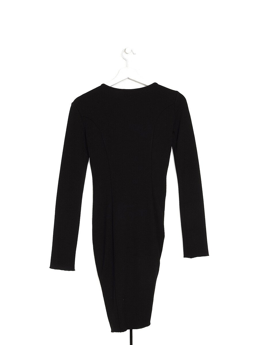 Mini long sleeve dress with cut-outs featuring a drawstring detail at the front. V-neckline.