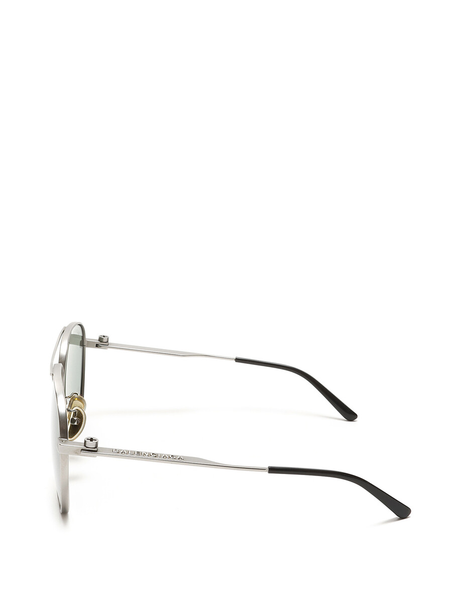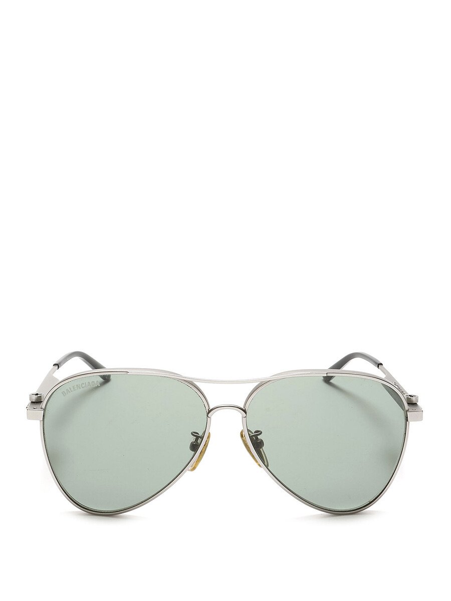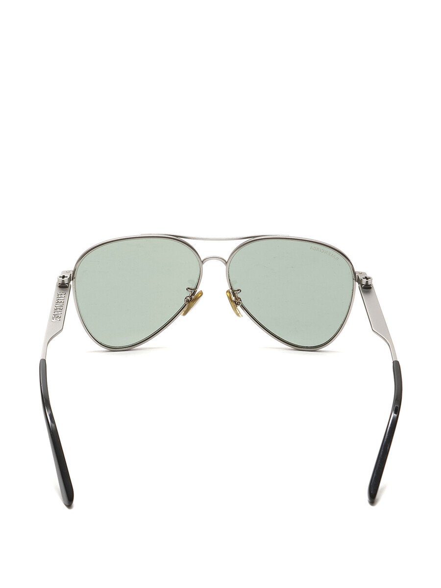 Aviator sunglasses featuring a sleek metal frame in silver. Green tinted lenses.