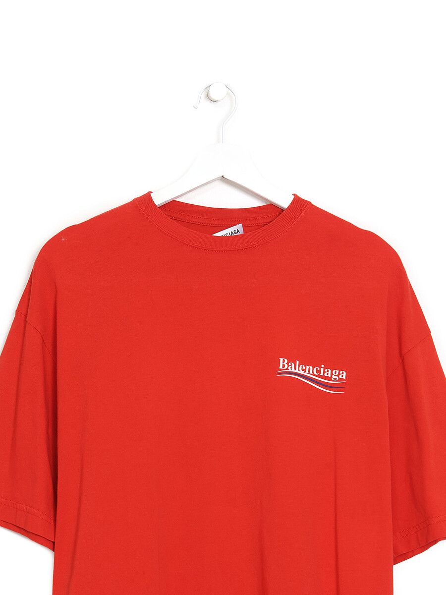 Short sleeve T-shirt featuring graphic logo in red. Crew neck collar.