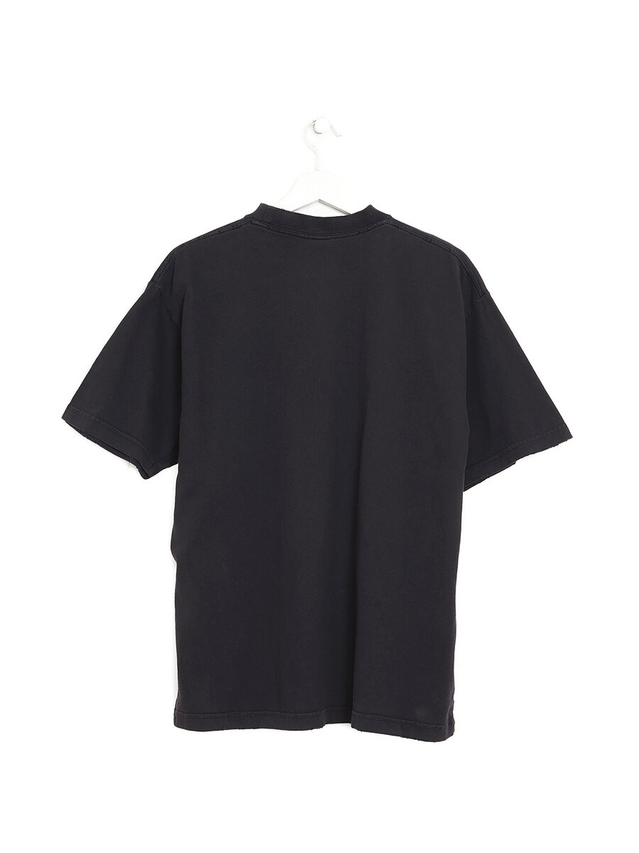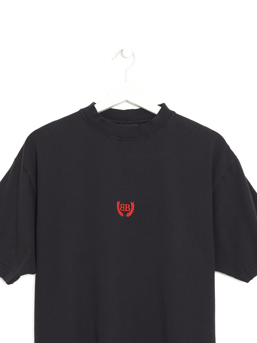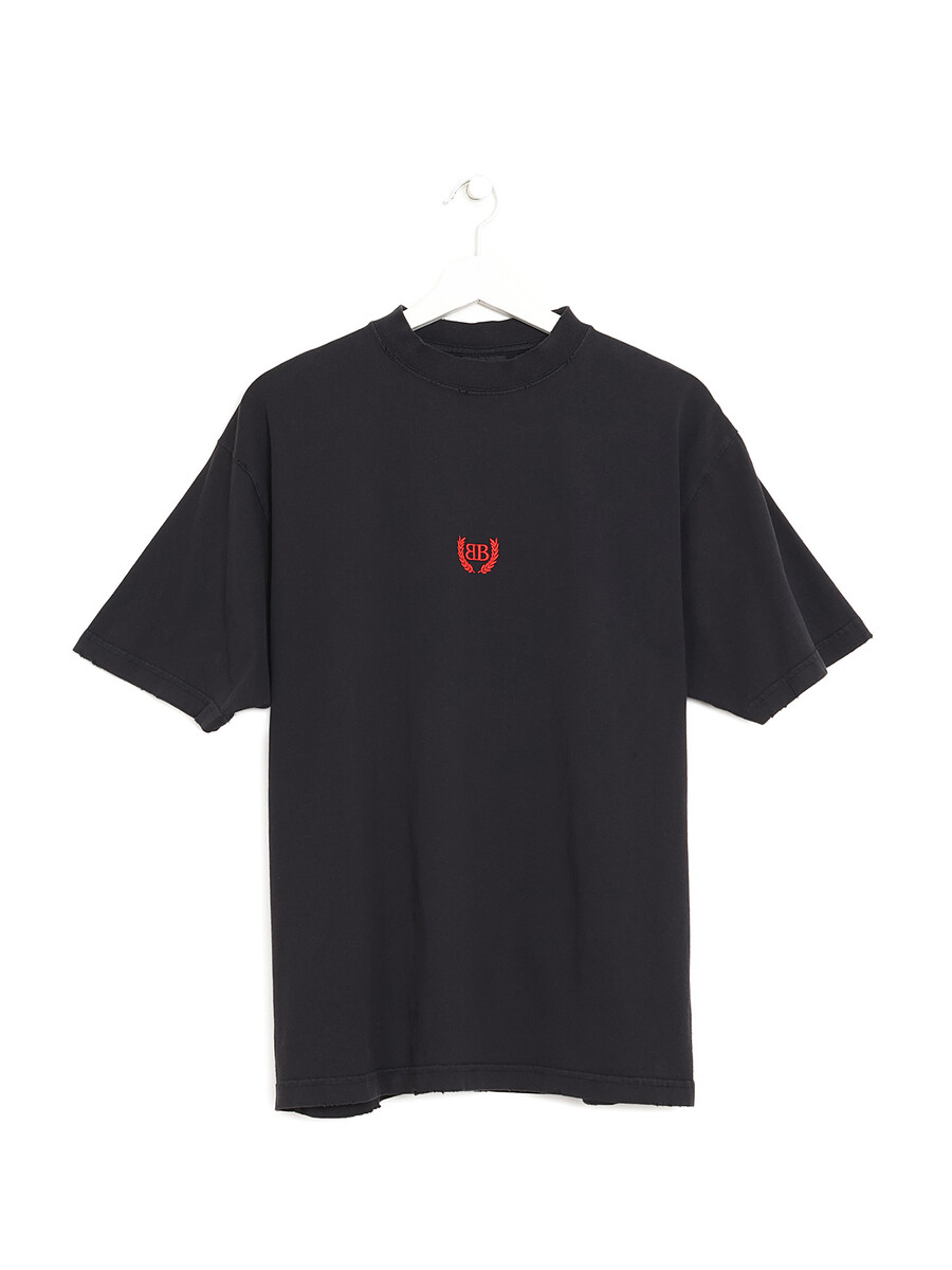Short sleeve t-shirt in black with red embroidered detail at chest. Crew neck.