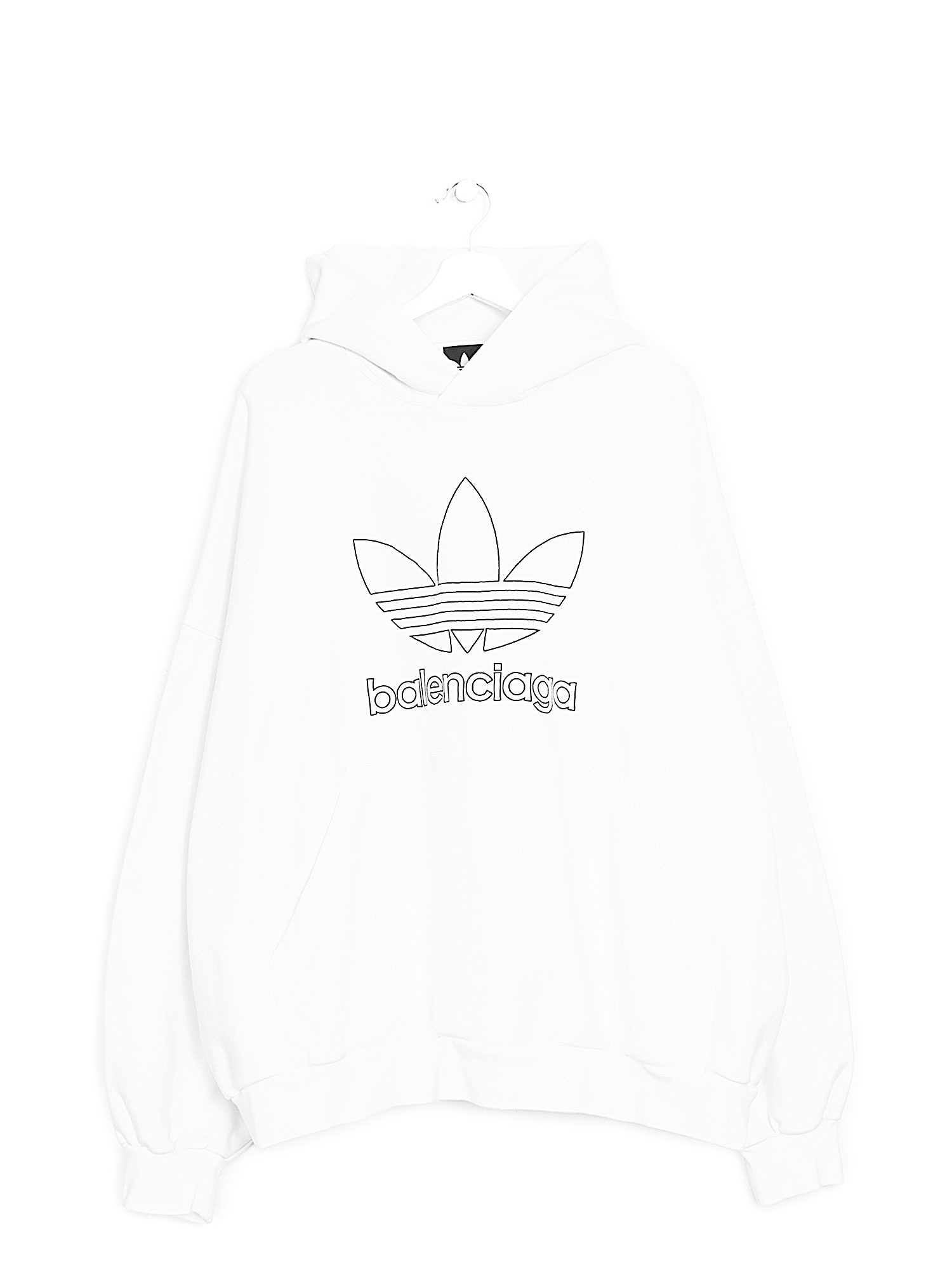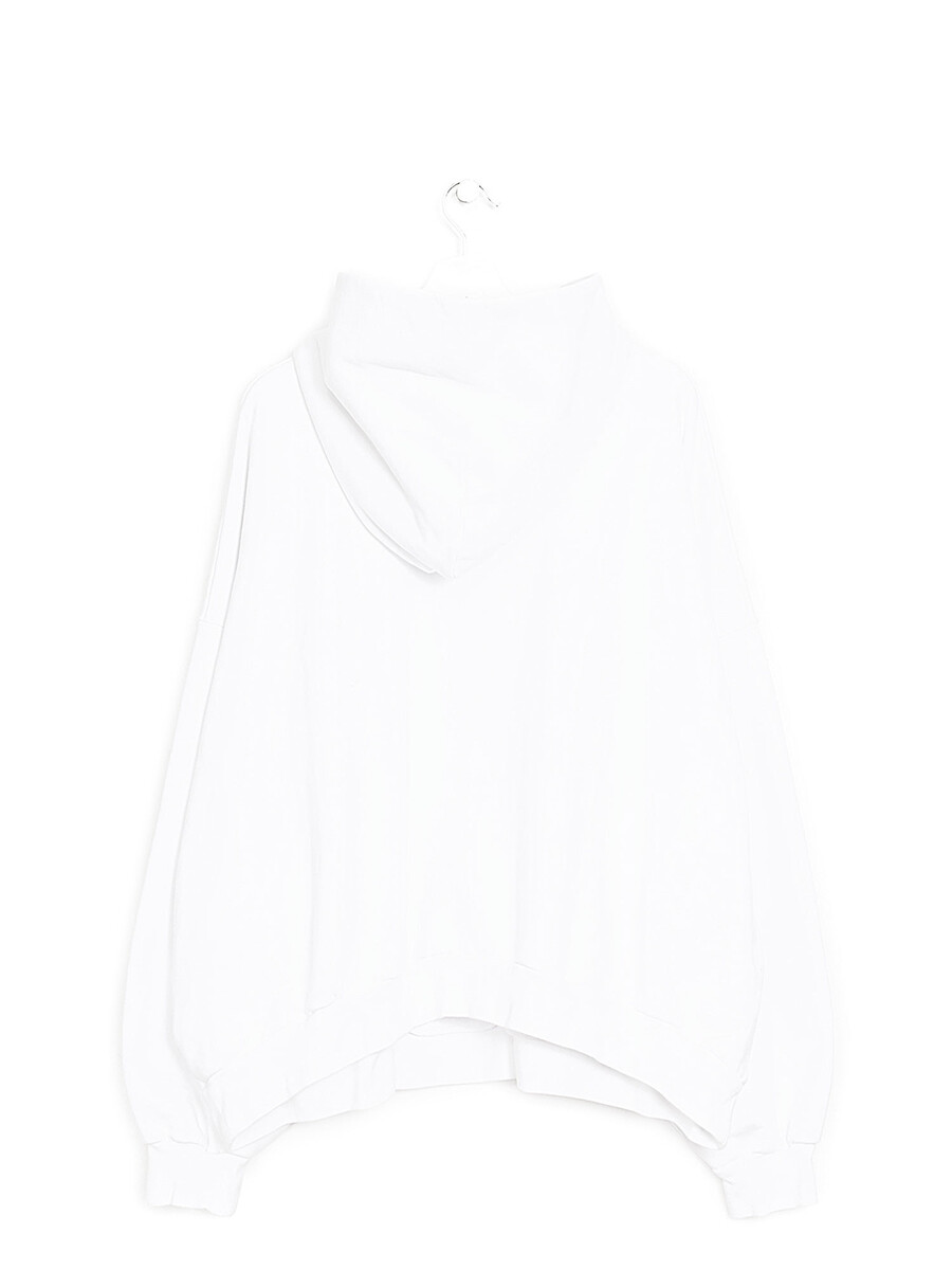 Long sleeve hoodie with an all-over logo pattern in black and white. Features a front patch pocket.
