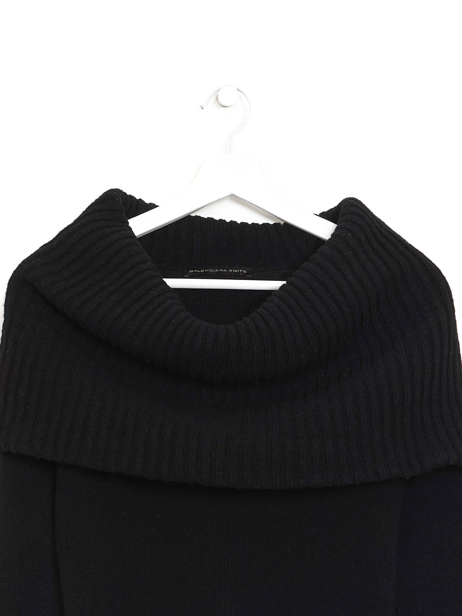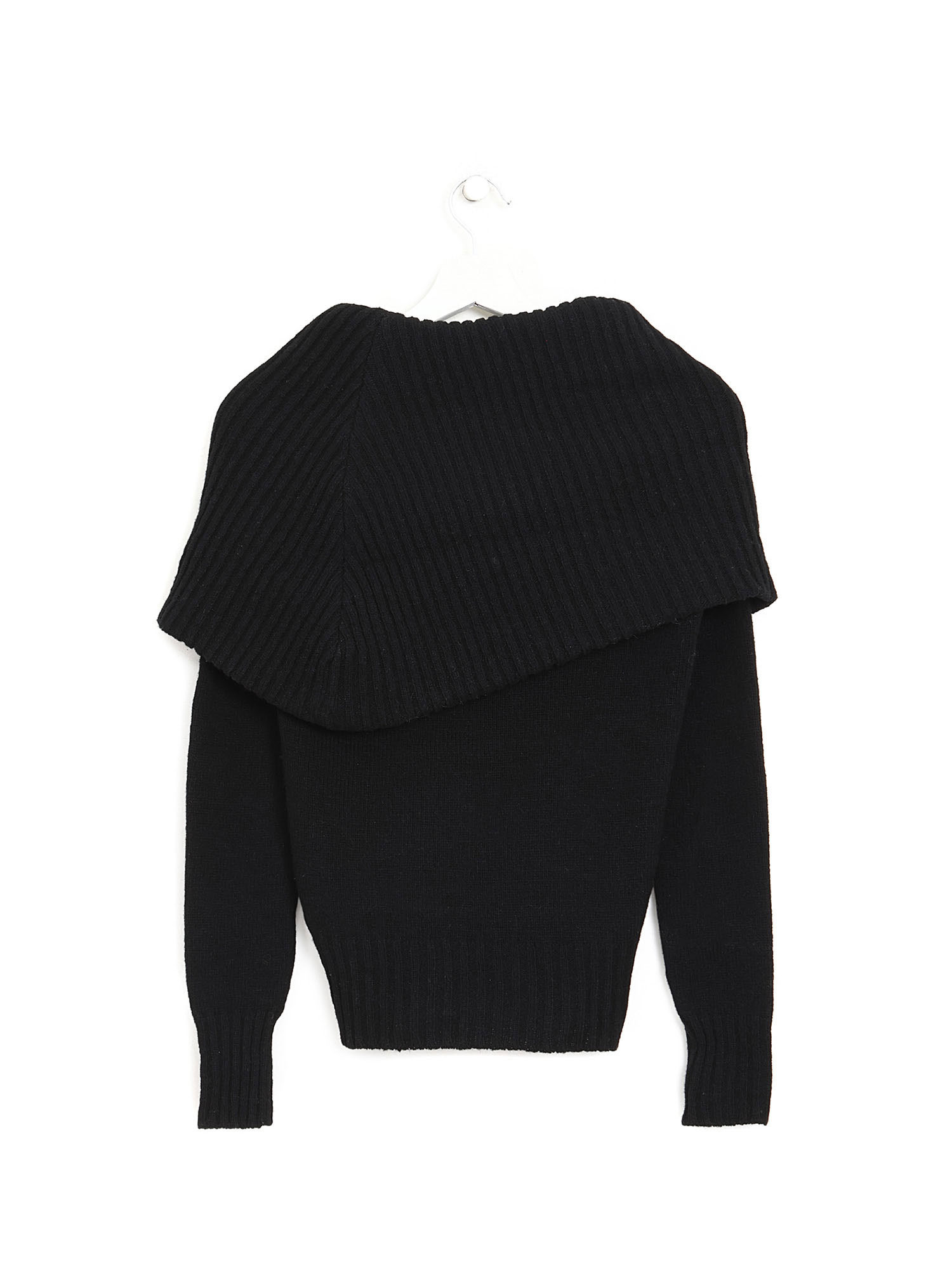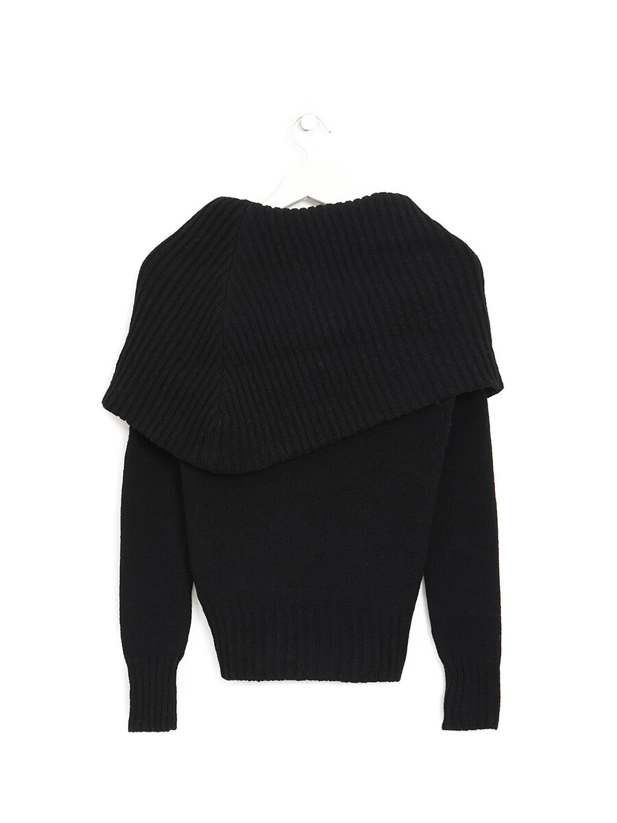 Ribbed texture long sleeve sweater in black. Pullover style with an oversized turtleneck collar.