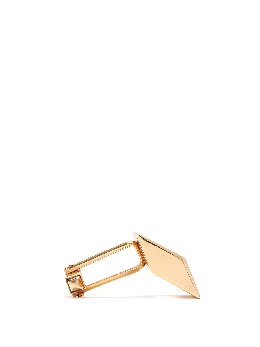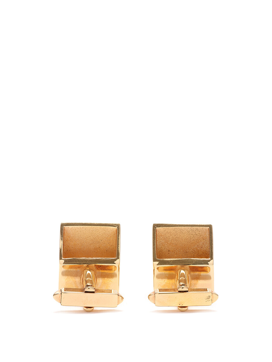 Gold-tone geometric cufflinks with swivel bar closure. Features a polished finish.