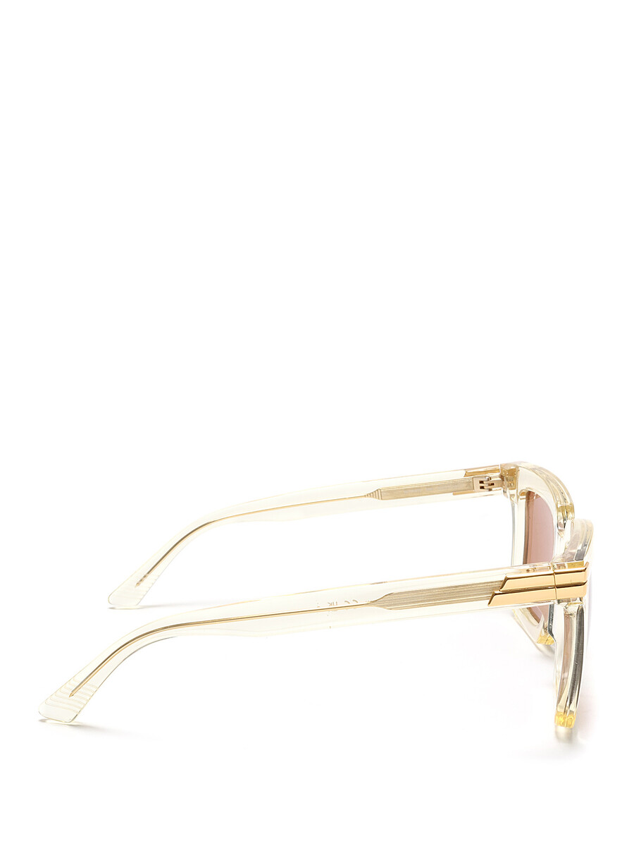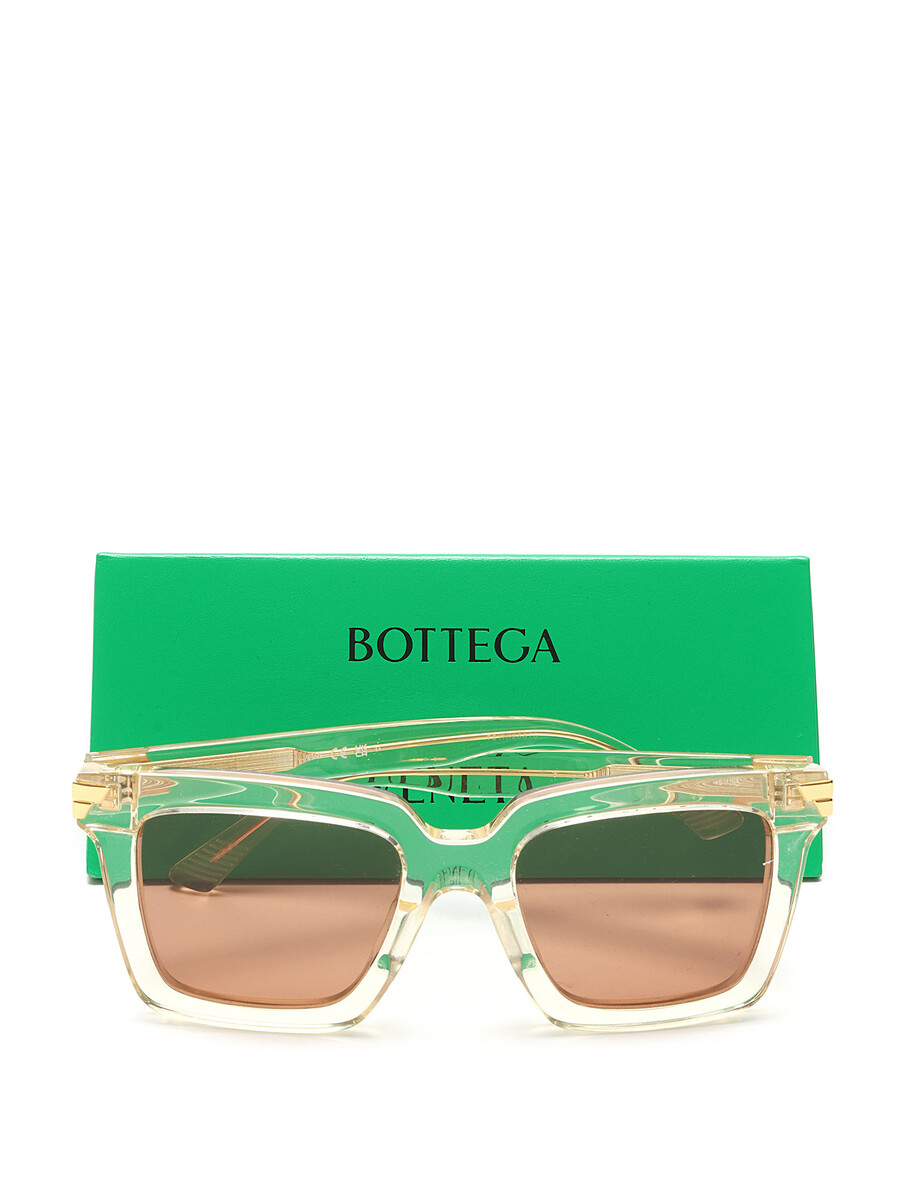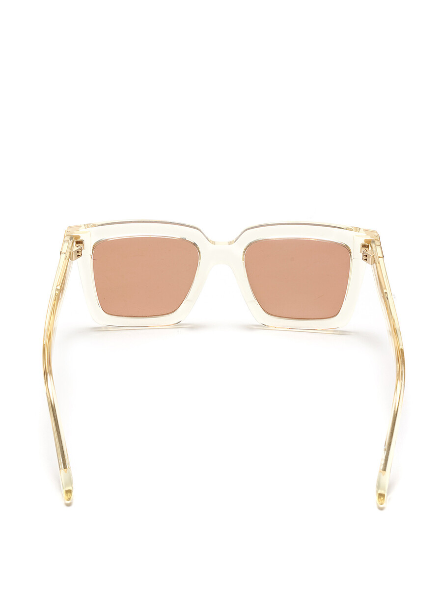 Oversized square frame sunglasses in transparent yellow with brown lenses. Minimalist silhouette providing full UV protection.