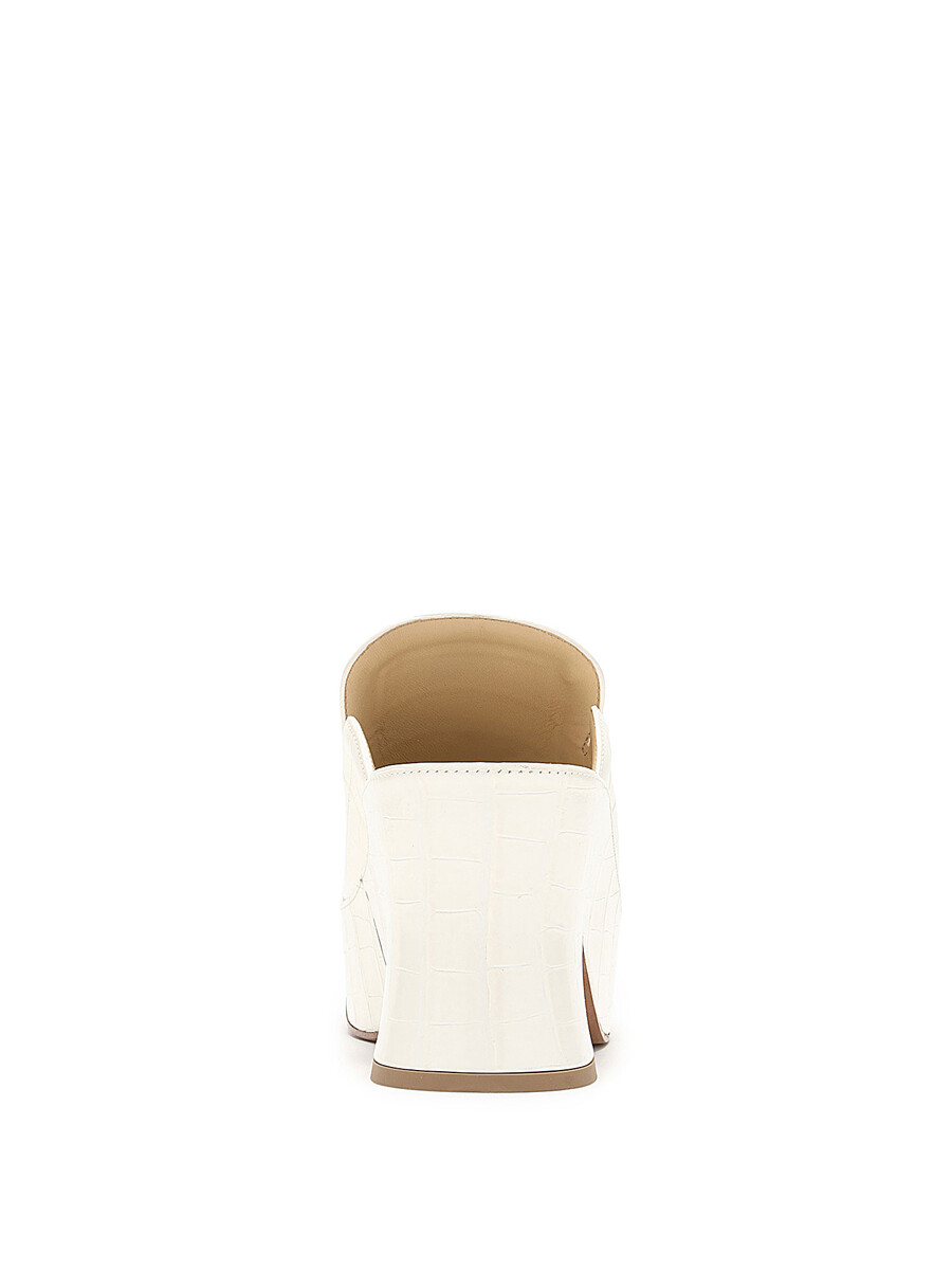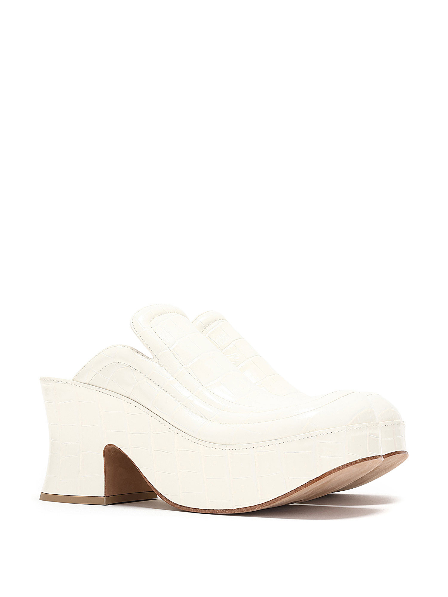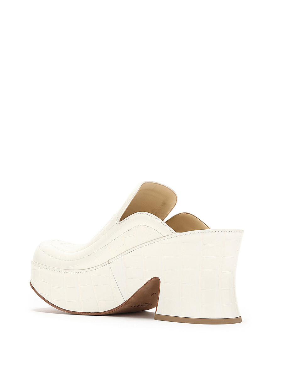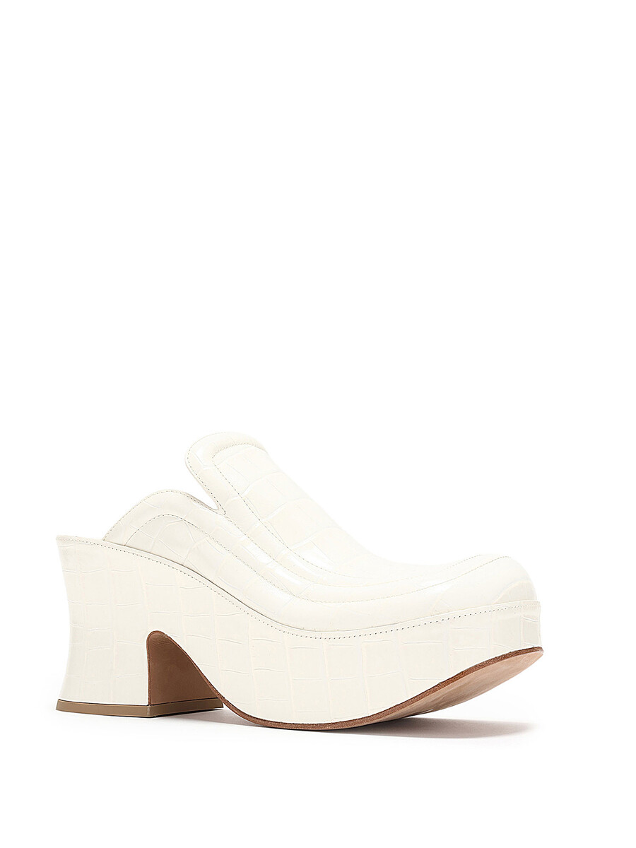 Platform slip-on shoes with a crocodile effect. Round toe and tonal white stitching. Leather platform sole.