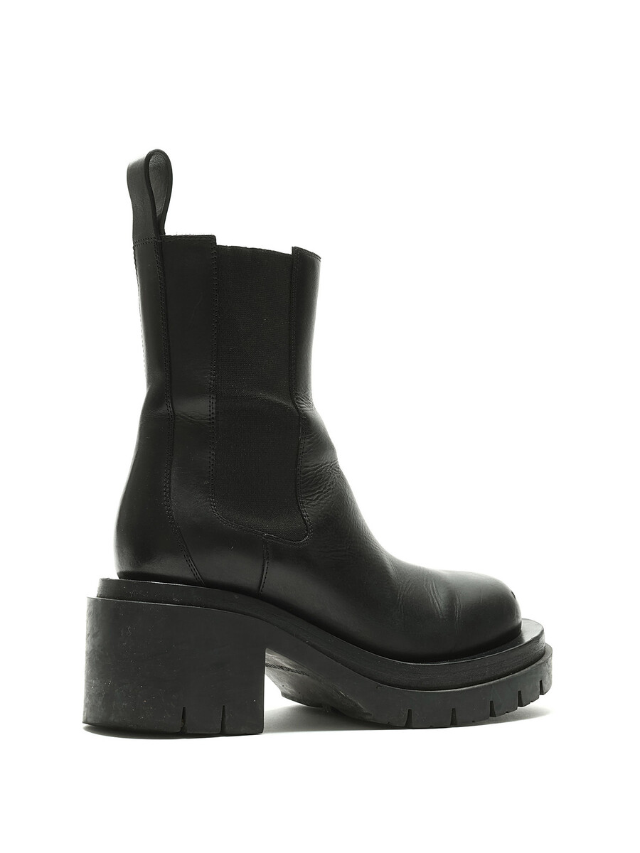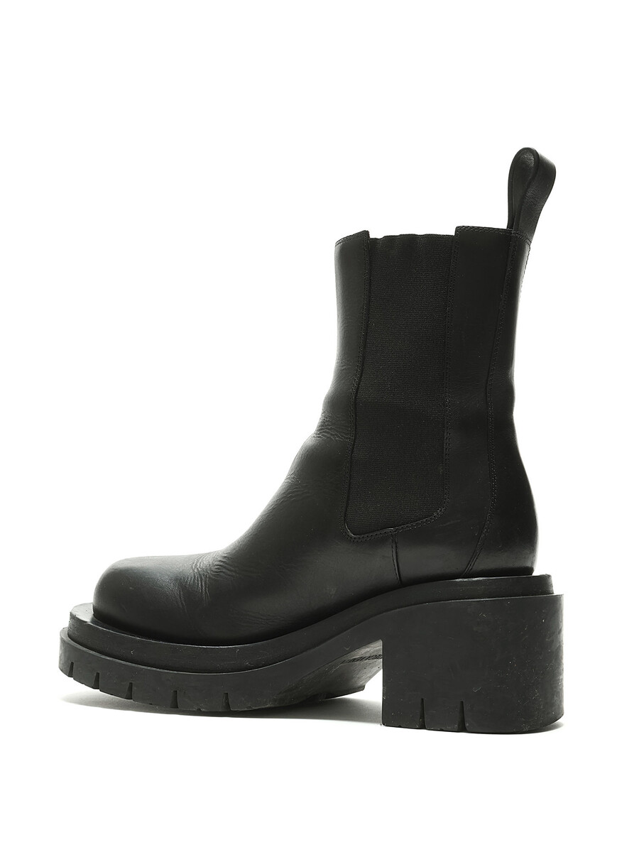Smooth leather ankle boots in black. Round toe. Elasticized gussets. Rubber lug sole.