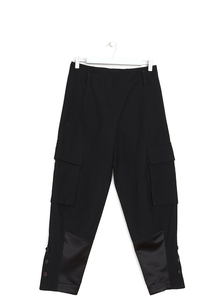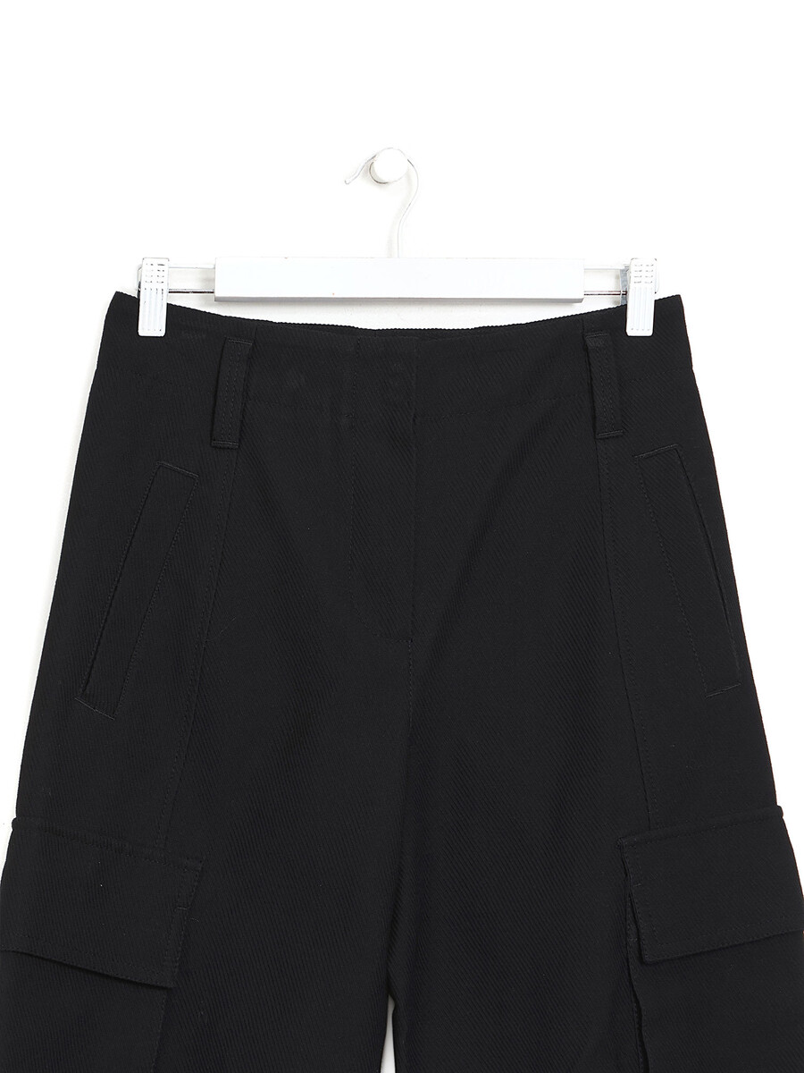 Black cargo pants in cotton blend. Features side cargo pockets and a relaxed fit.